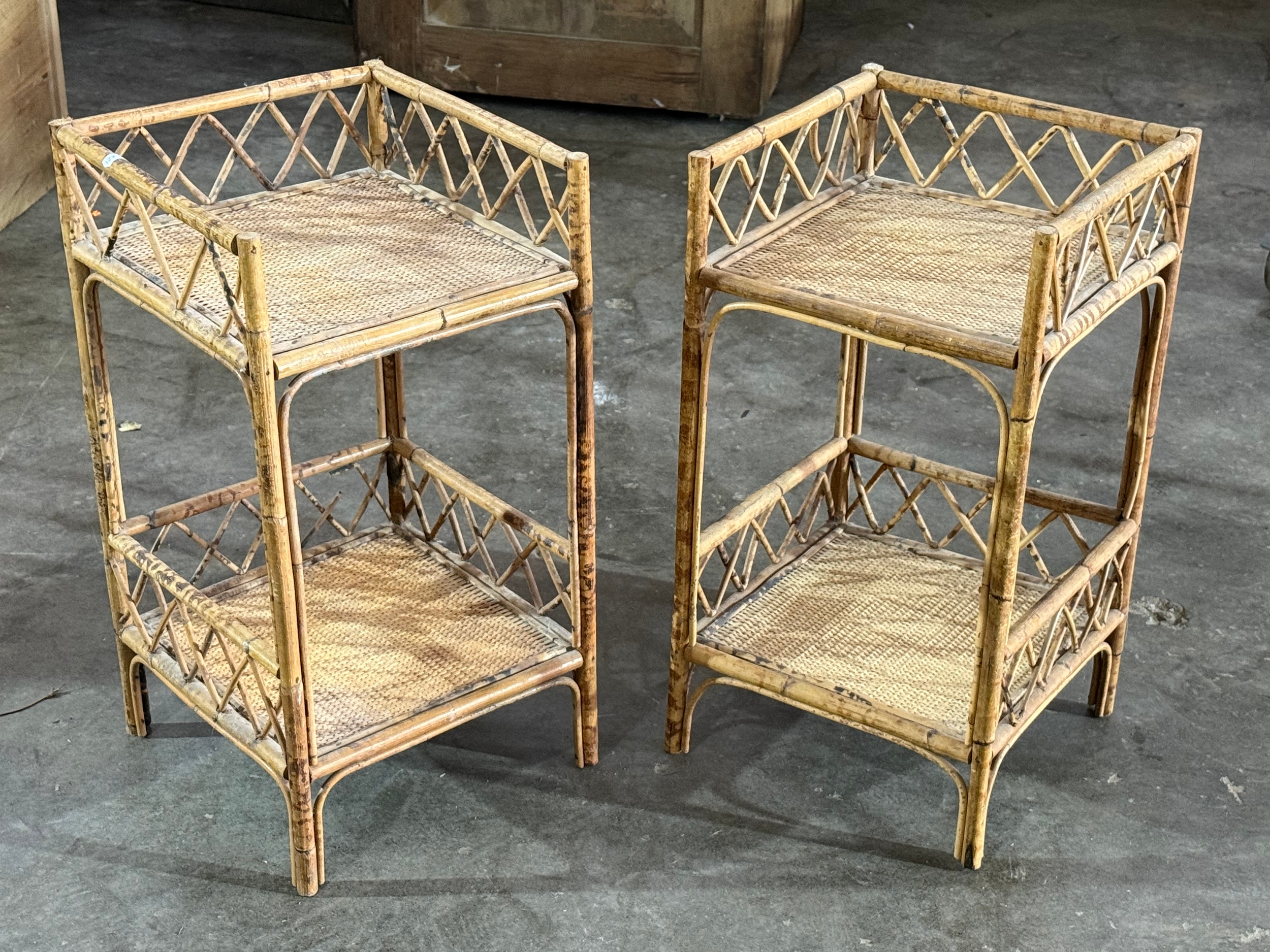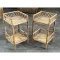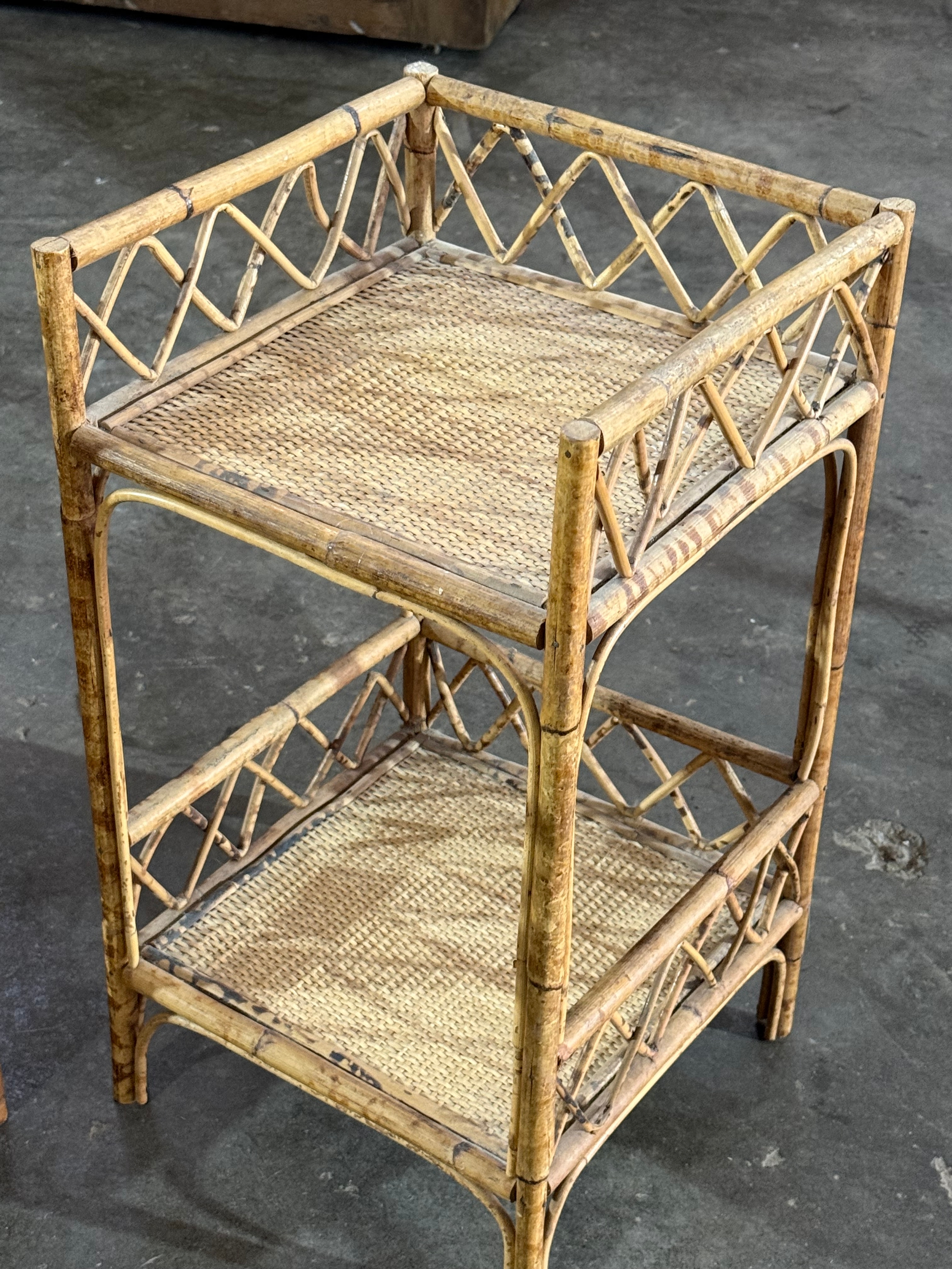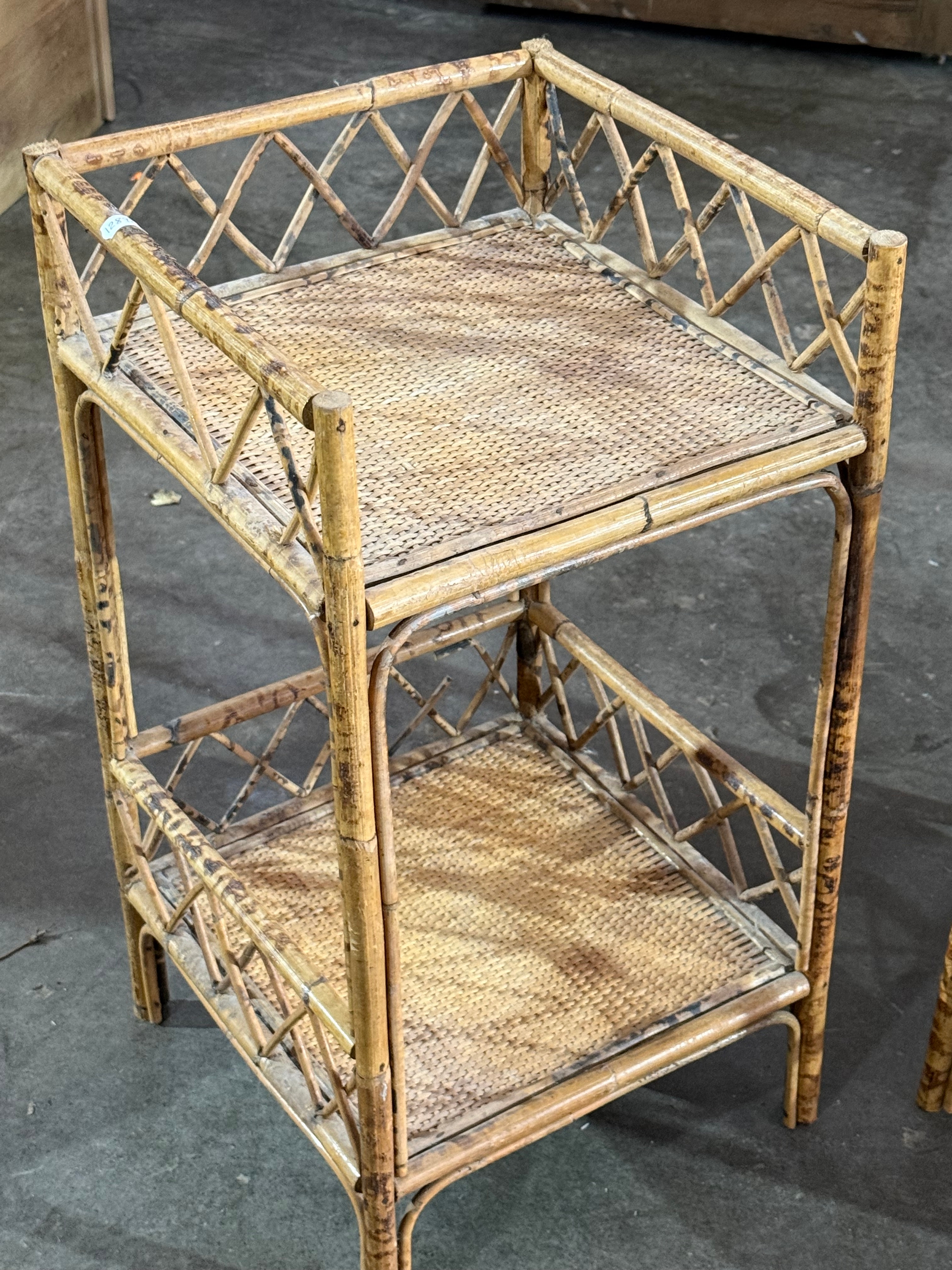 A pair of 1960’s bamboo and rattan end tables. 31x30x56cm.