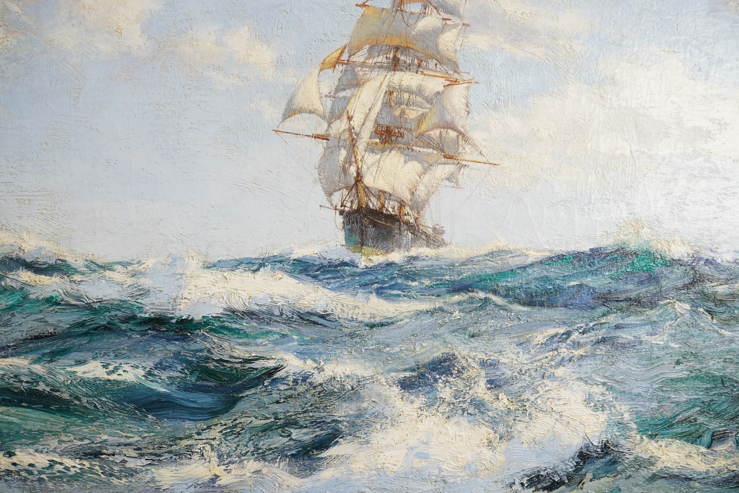 Undoubtedly considered the premier marine painter of the 20th century, Montague Dawson is celebrated for his highly detailed compositions of sailing ships and naval battles at sea. He possessed an uncanny ability to capture the motion of the waves, the fullness of the sails, and the atmosphere of the sea in his maritime paintings, which document the great clippers and warships of the 18th and 19th centuries. Lauded as “the King of the Clipper Ship School,” no artist has been able to match the painstaking level of detail and remarkable sense of realism as this maritime master.