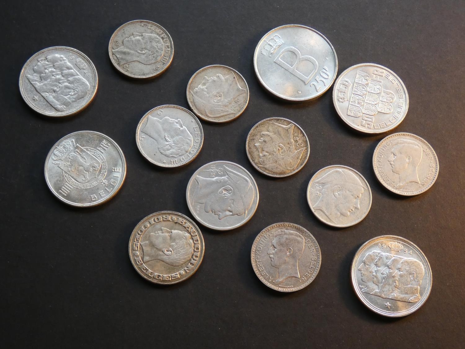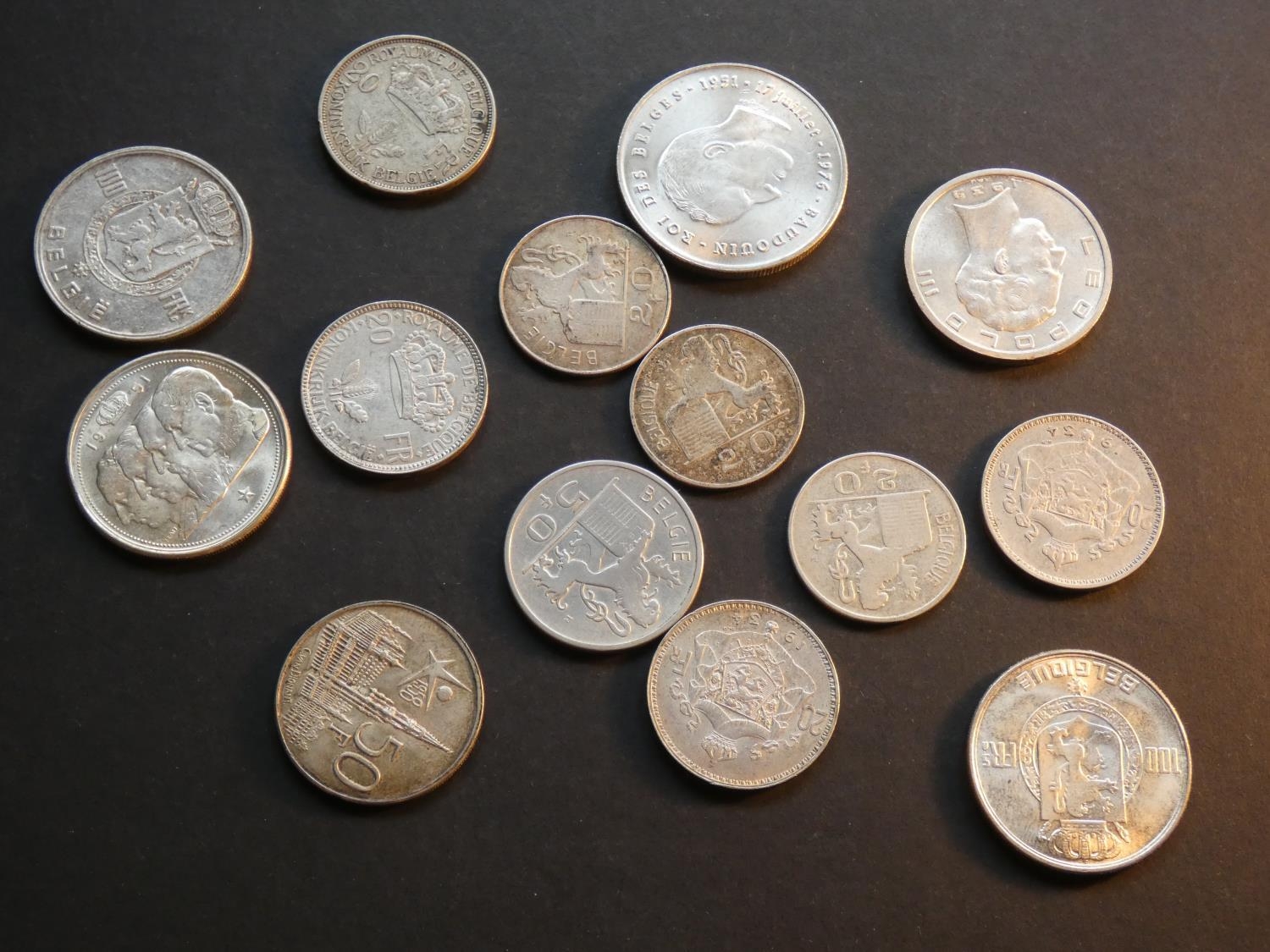 BELGIUM. 20 Francs [1934 (first type, Flemish legends, edge lettering position A), 1934 (1st type, Flemish, edge lettering position B), 1934 bi-lingual, 1935, 1949 French, 1950 French, 1951 Flemish], 50 Francs (1939 French, 1951 Flemish, 1958 French, coin alignment), 100 Francs (1948 Flemish, 1951 Flemish, 1954 French) and 250 Francs (1976 French). Mixed grades and condition, VG to AUNC (14)