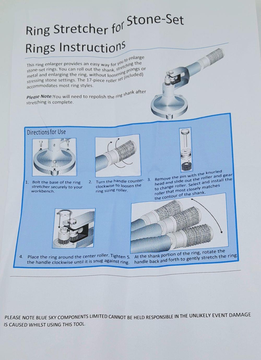 A professional jeweller’s tool: A Ring Stretcher with 17 dies. Perfect for all band and stone set rings. In new/unused