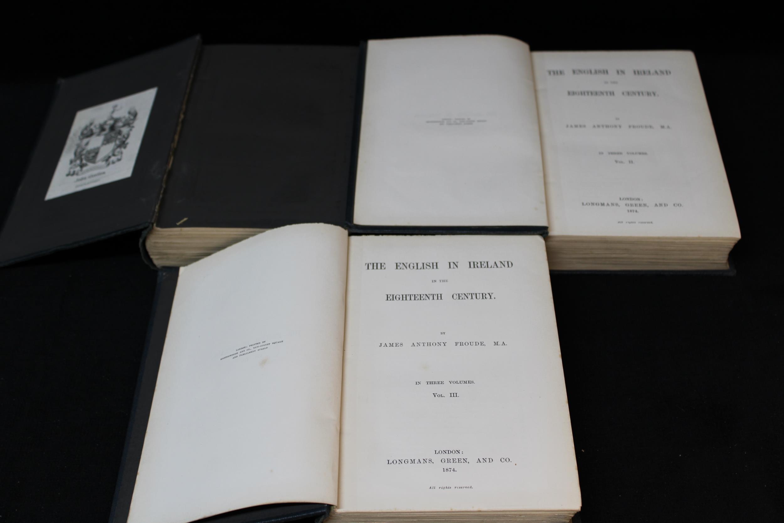The English in Ireland by Froude 1872 in 3 Vols "Complete": with bookplate for John Gretton. Founder of "Bass Brewery" (very good)