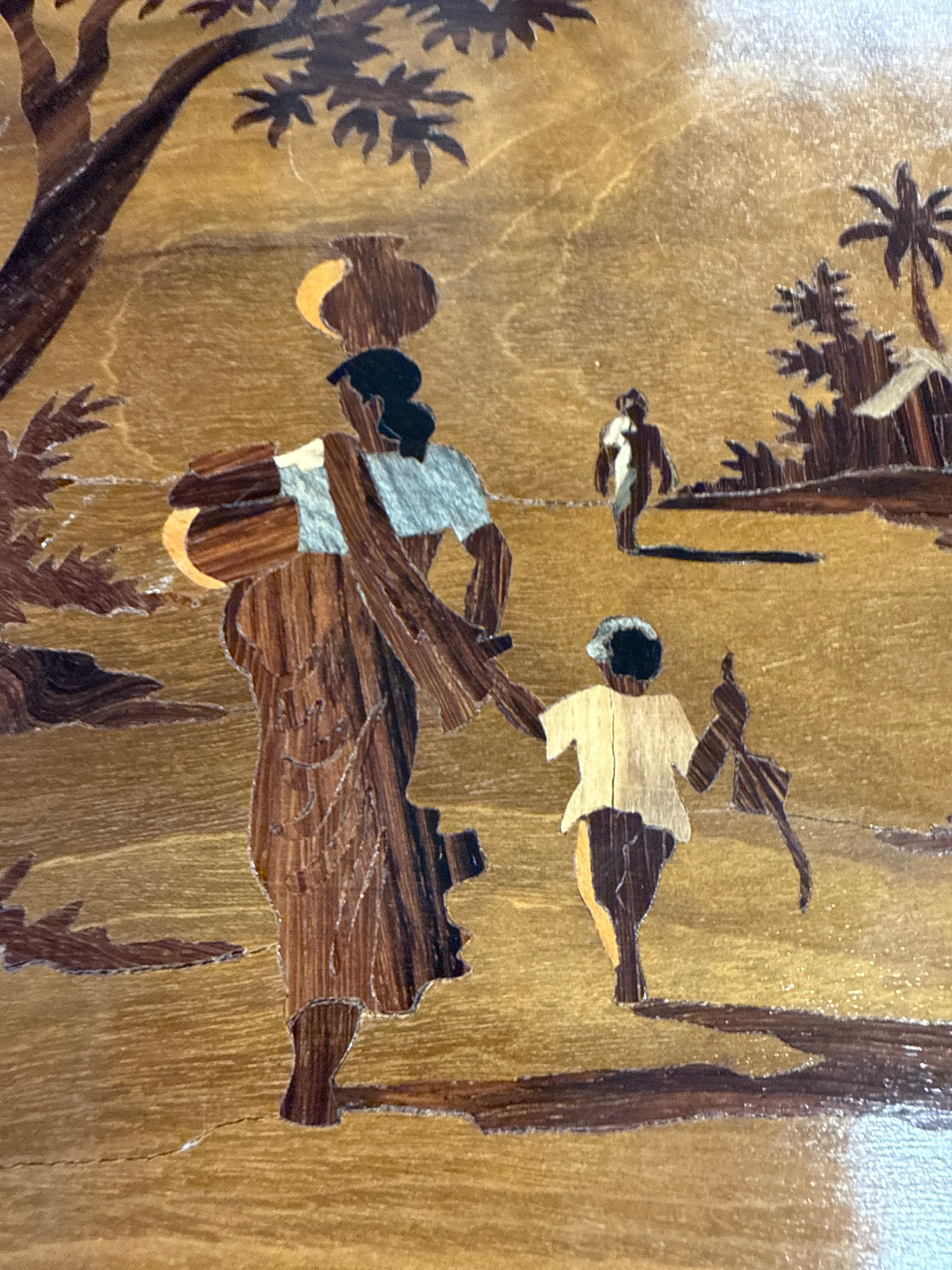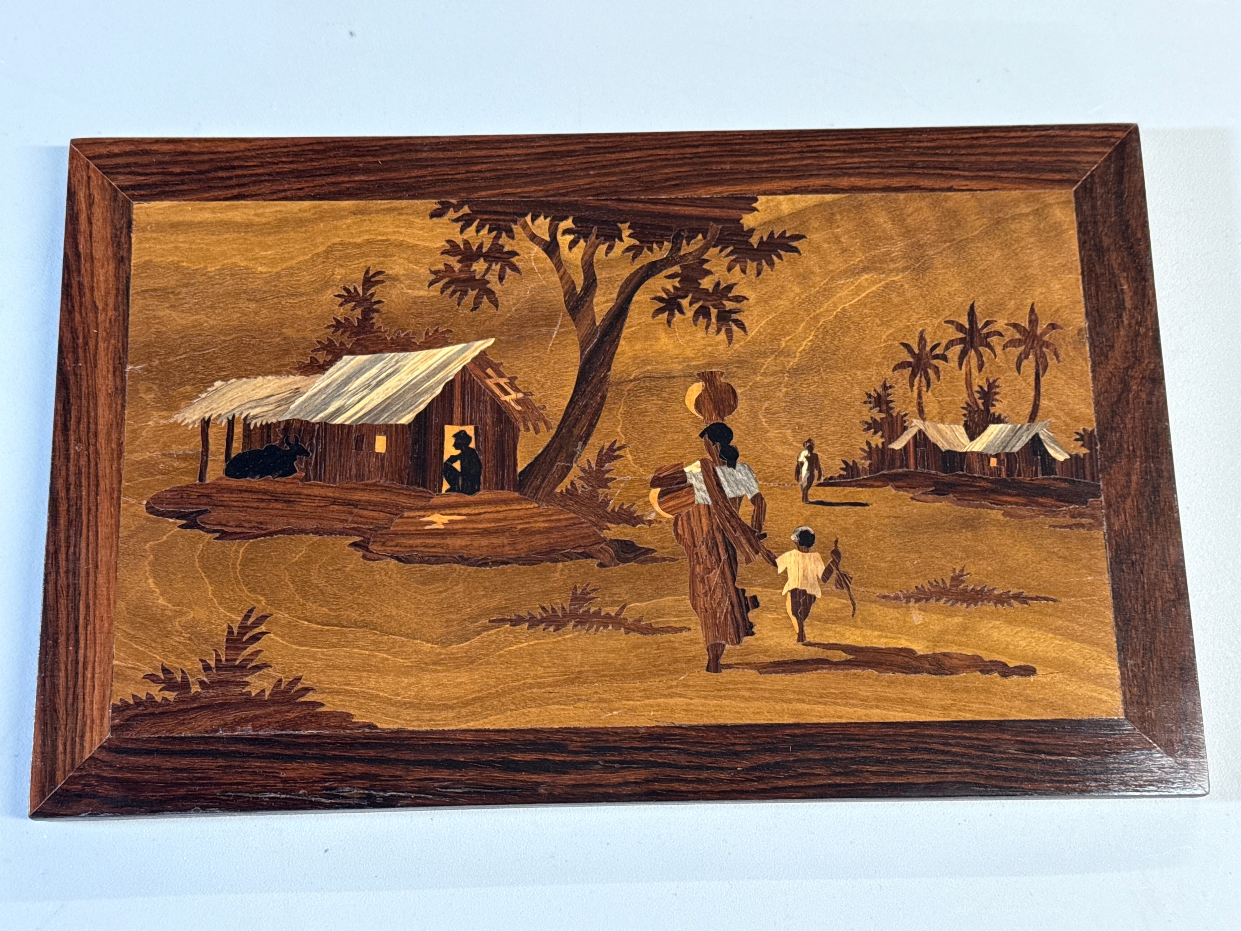 Exotic India Art Village Scene Rosewood Panel with Inlay