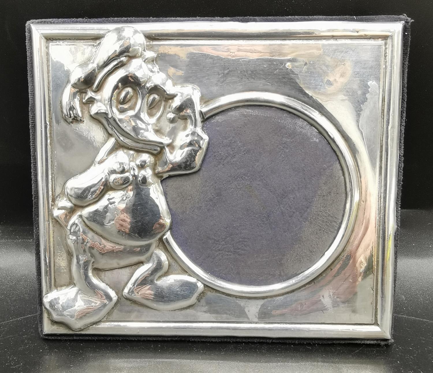 WHITE METAL DISNEY "DONALD DUCK" PHOTO FRAME (Tests As Silver)