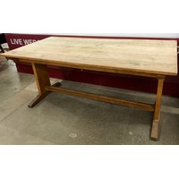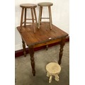 A pine table and three pine stools
