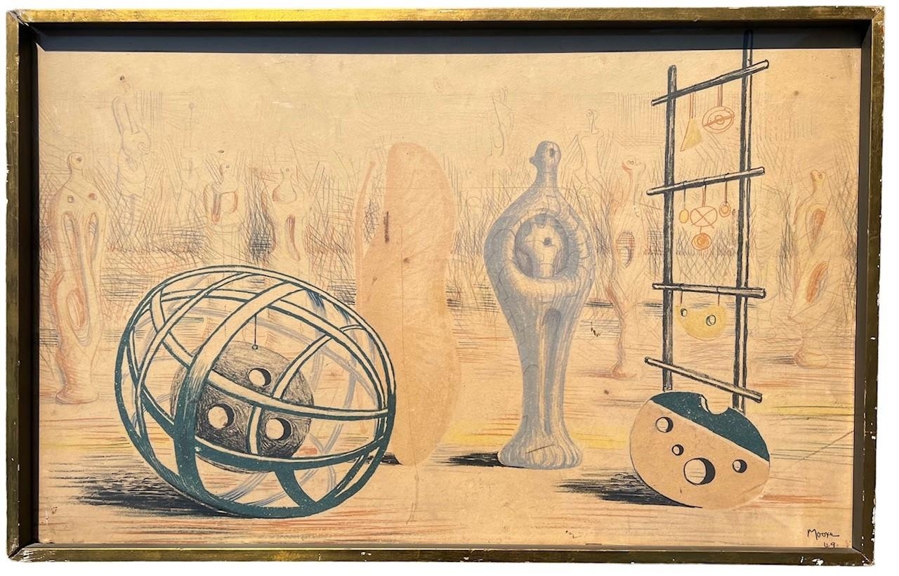 Sculptural objects, bearing label verso James Bourlet & Sons Ltd, signed, dated 49, framed and glazed.