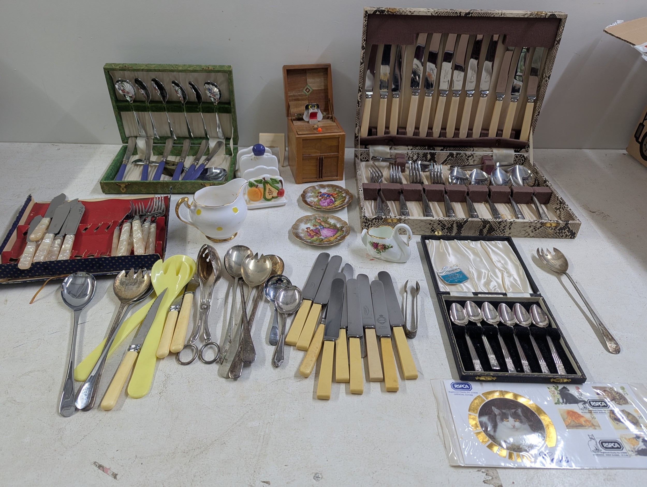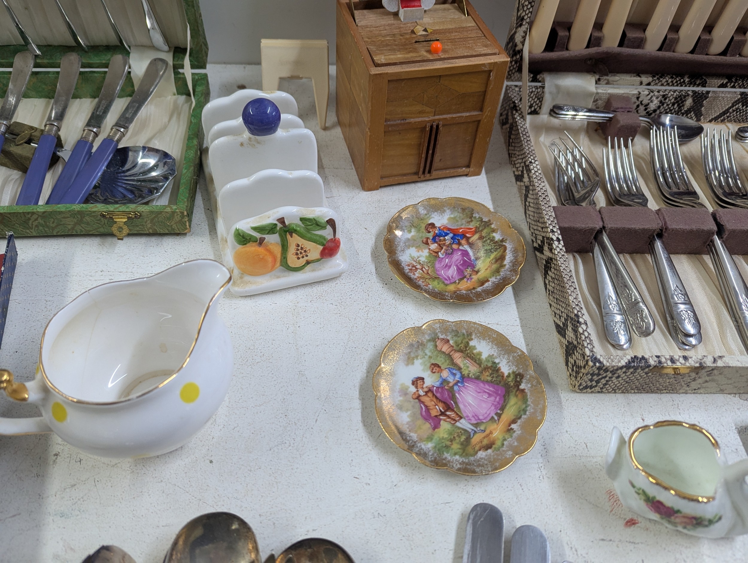 A mixed selection of household items to include a canteen of cutlery, mixed silver plate, a small group of ceramics and other items