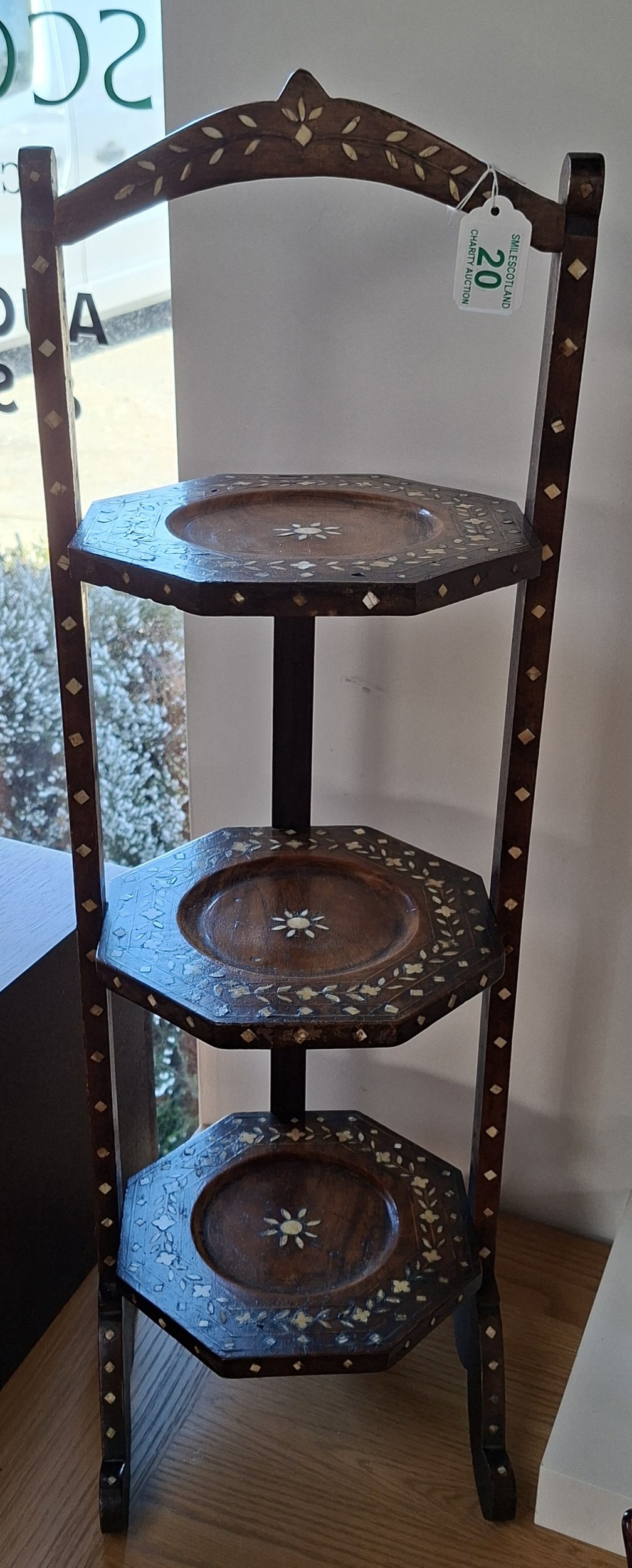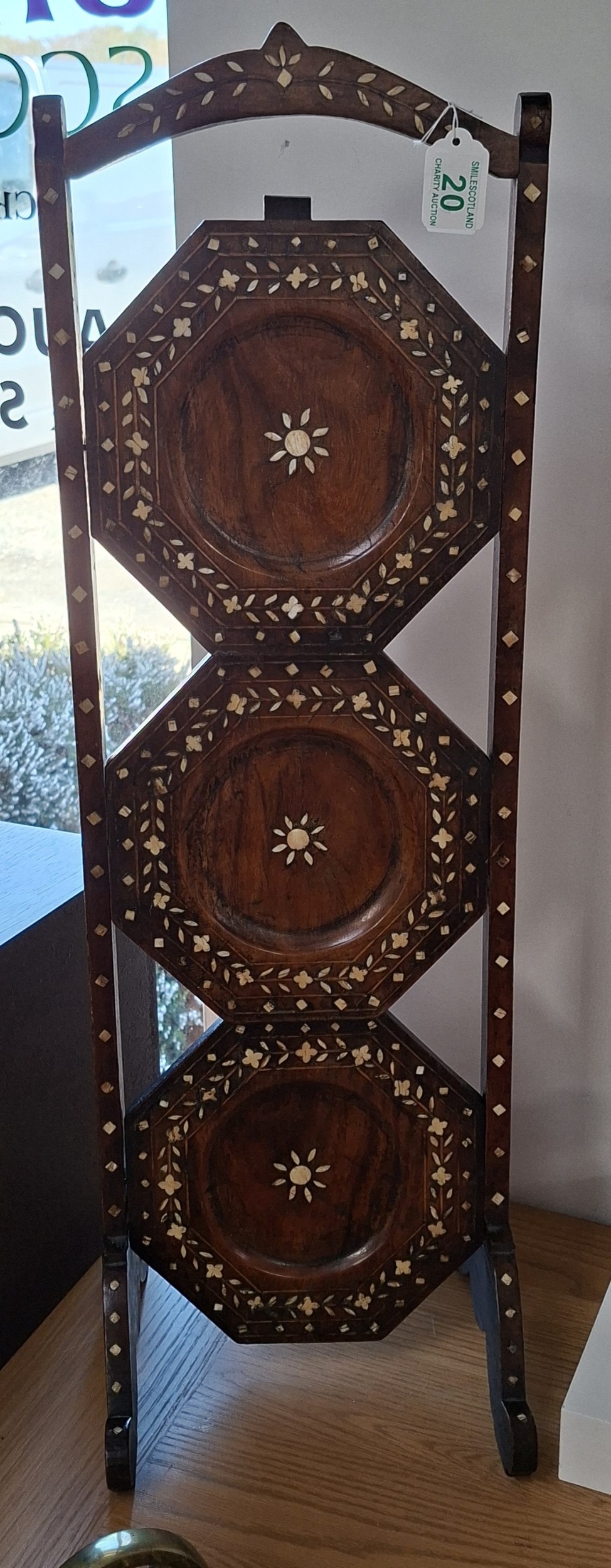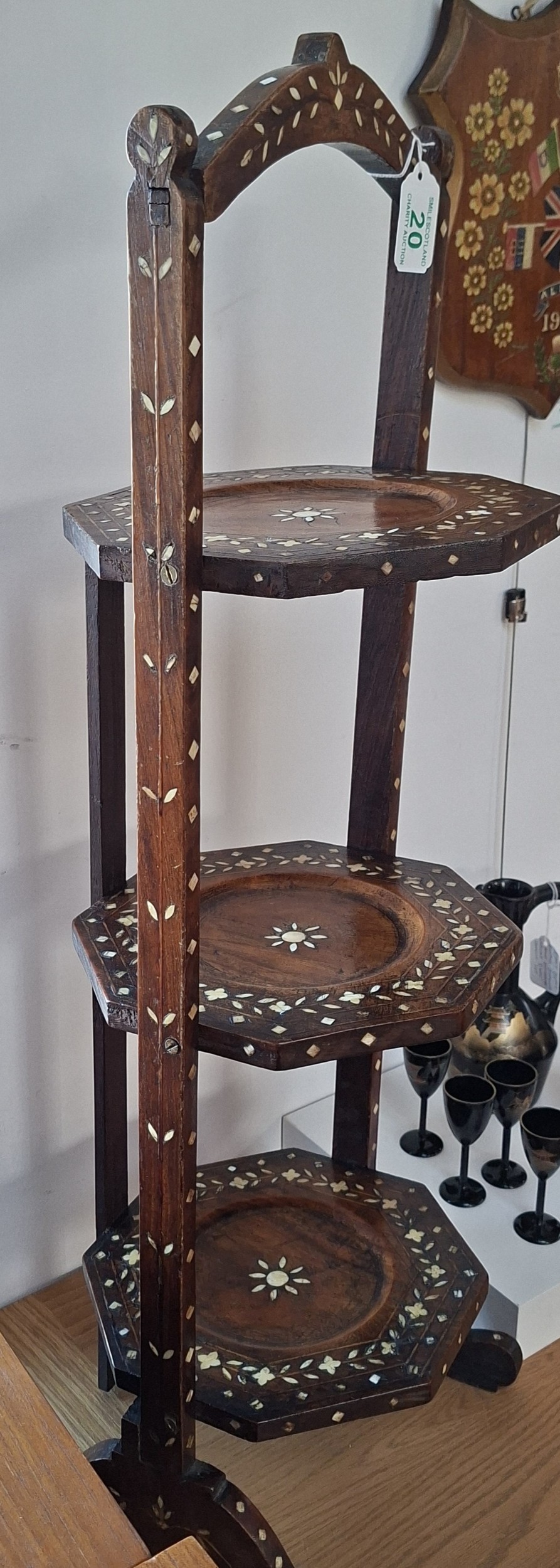 Anglo Indian Hoshiapur bone inlaid 3 tiered cake stand circa 1910