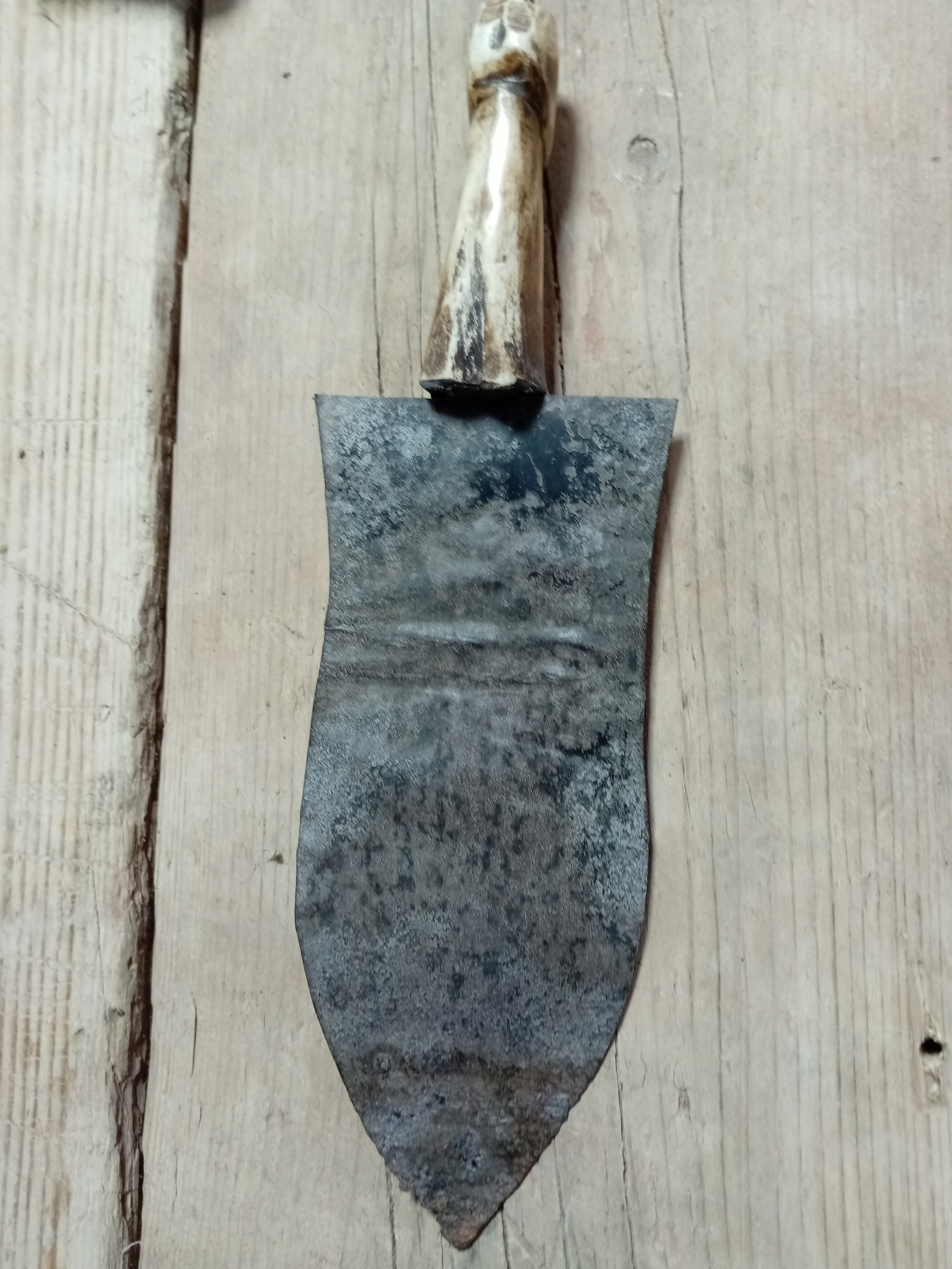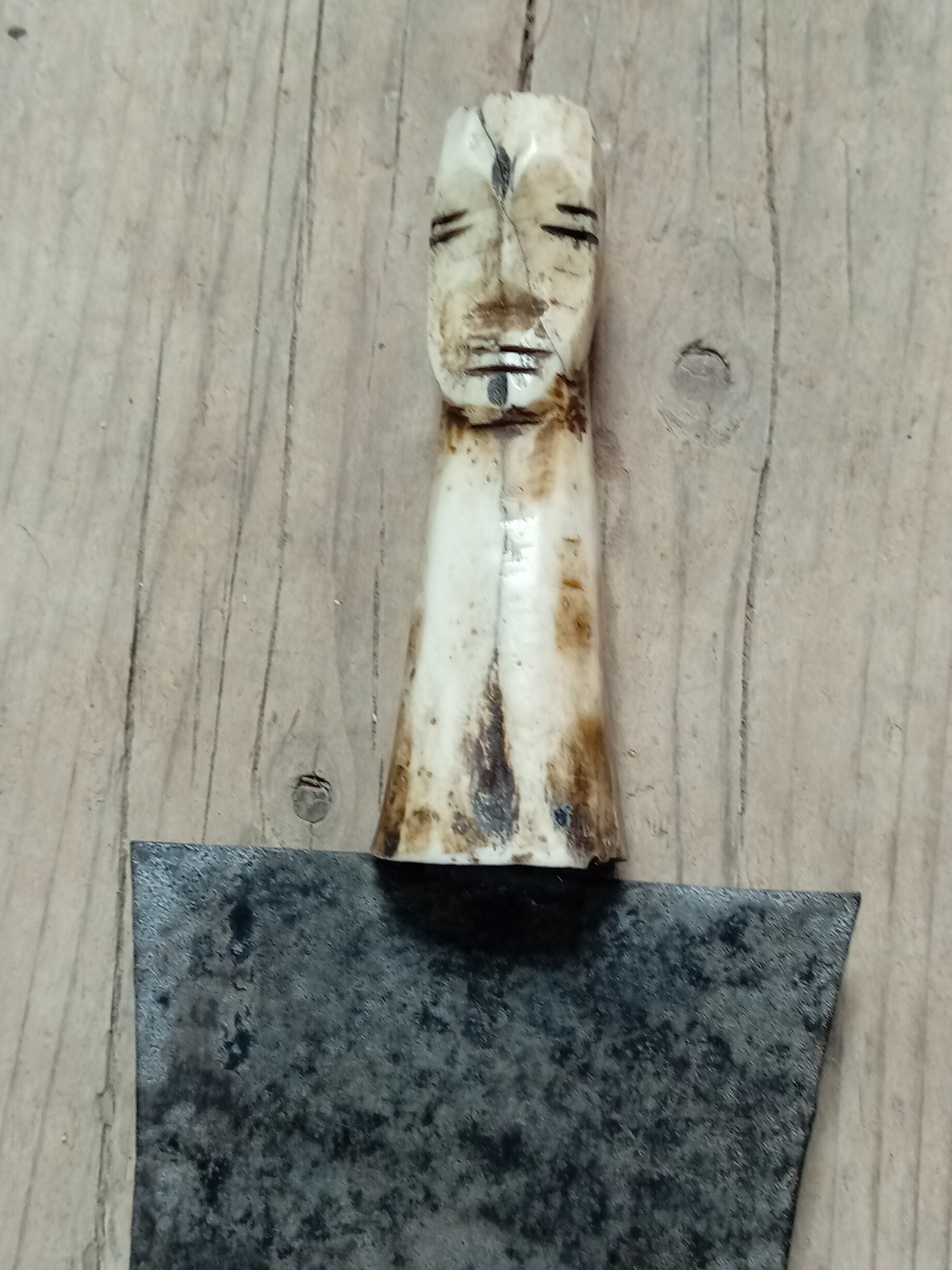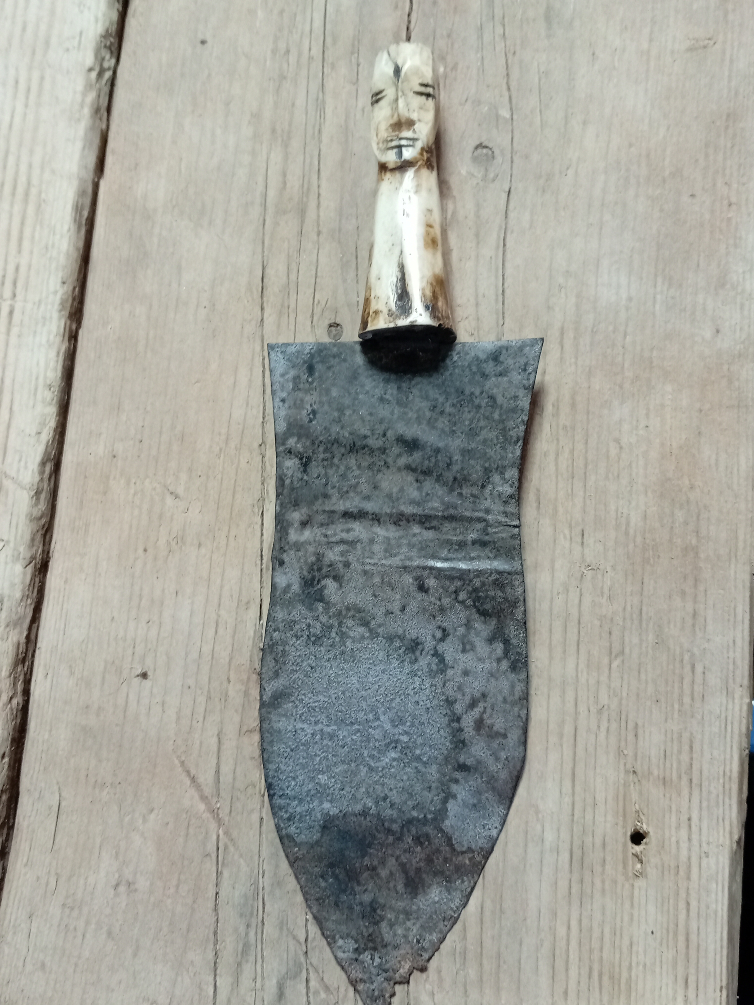An antique carved bone handled nieve trowel. H 28cm.