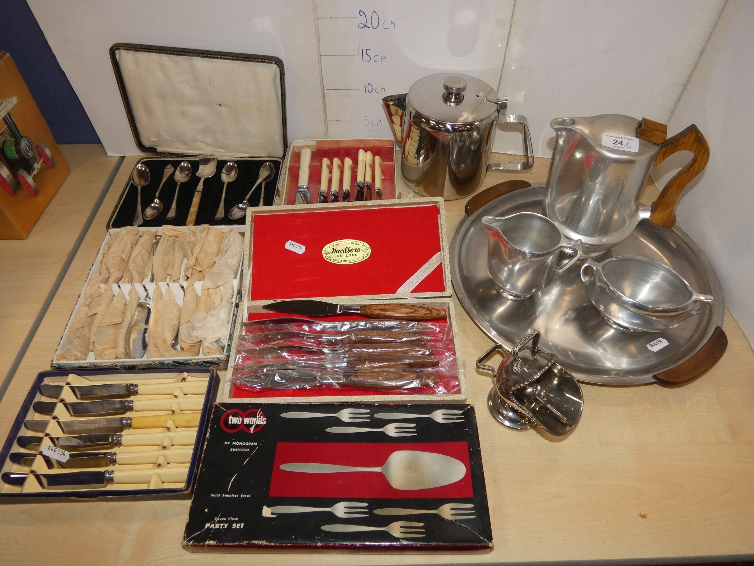 EP to include fish knives and forks, teaspoons, Picquot ware teapot, tray, coffee pot etc.