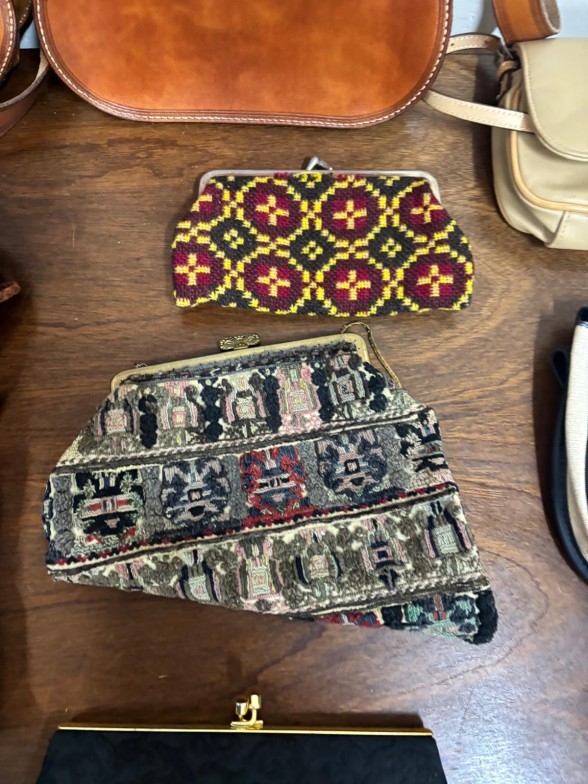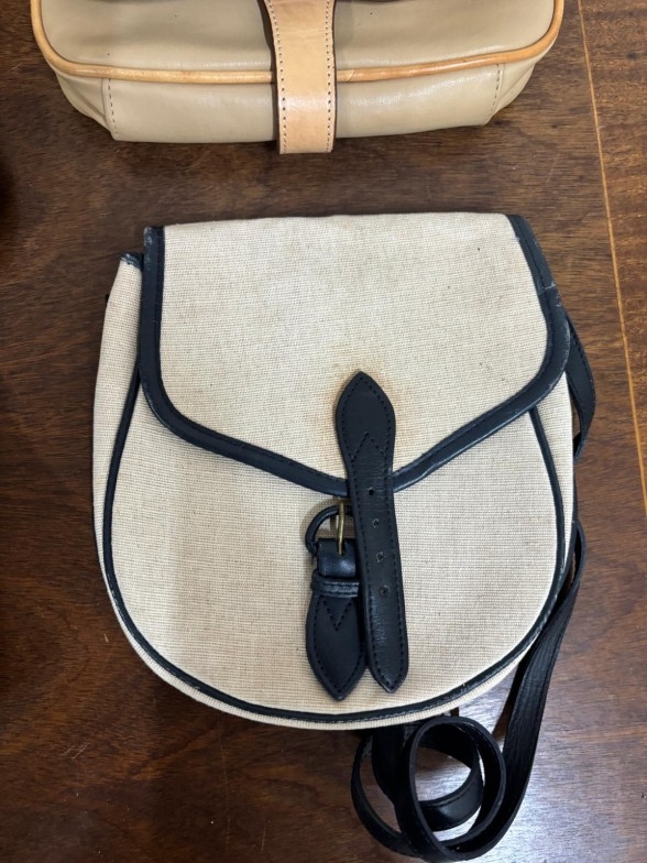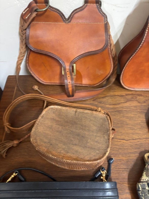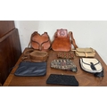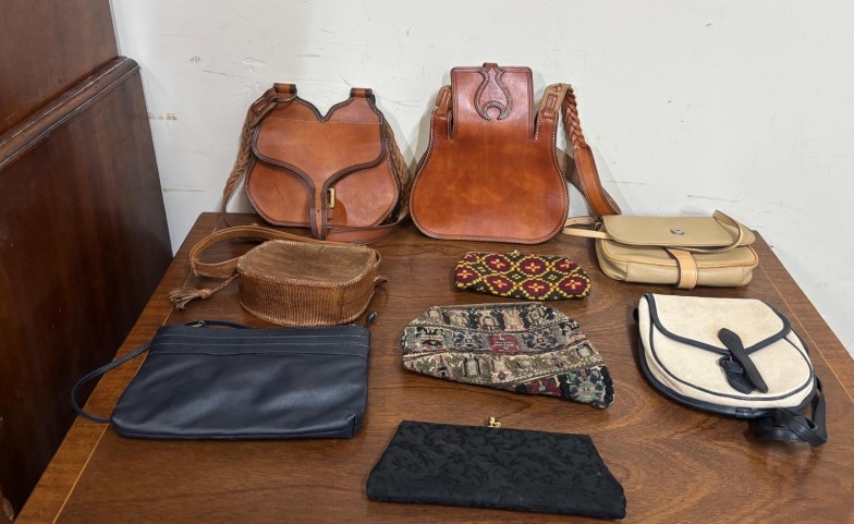 A selection of various different hand bags to include two leather shoulder bags with a classic slightly rugged look