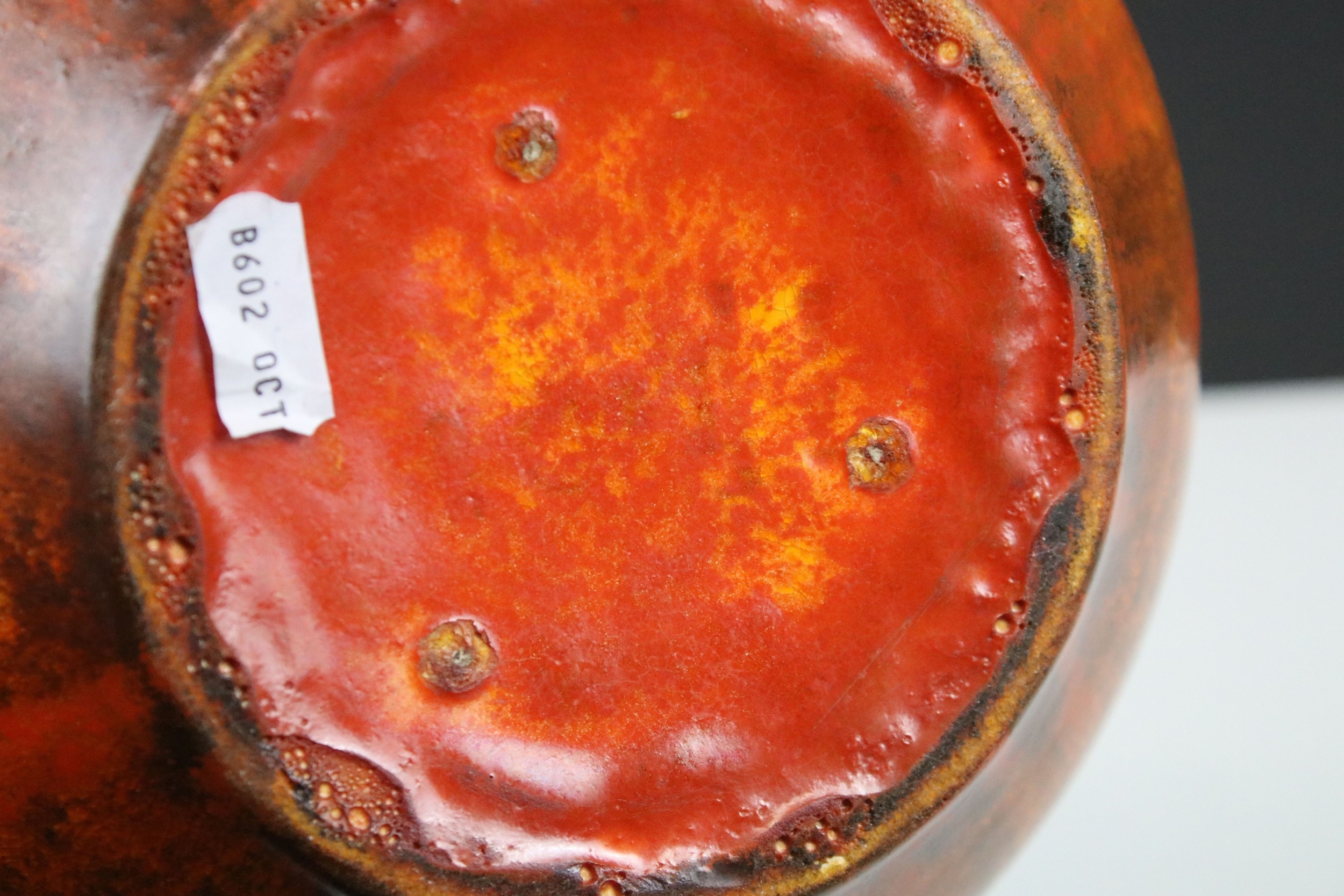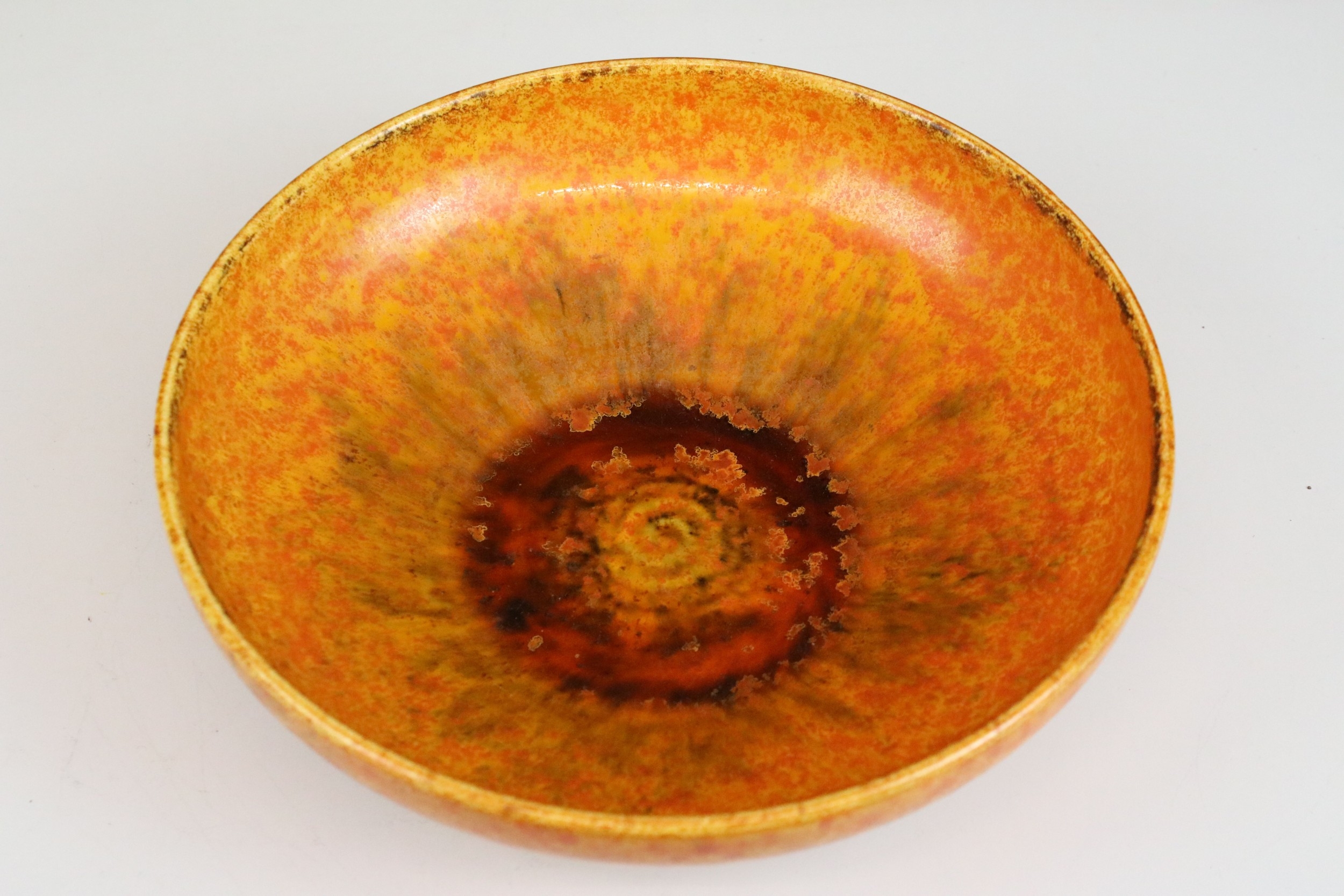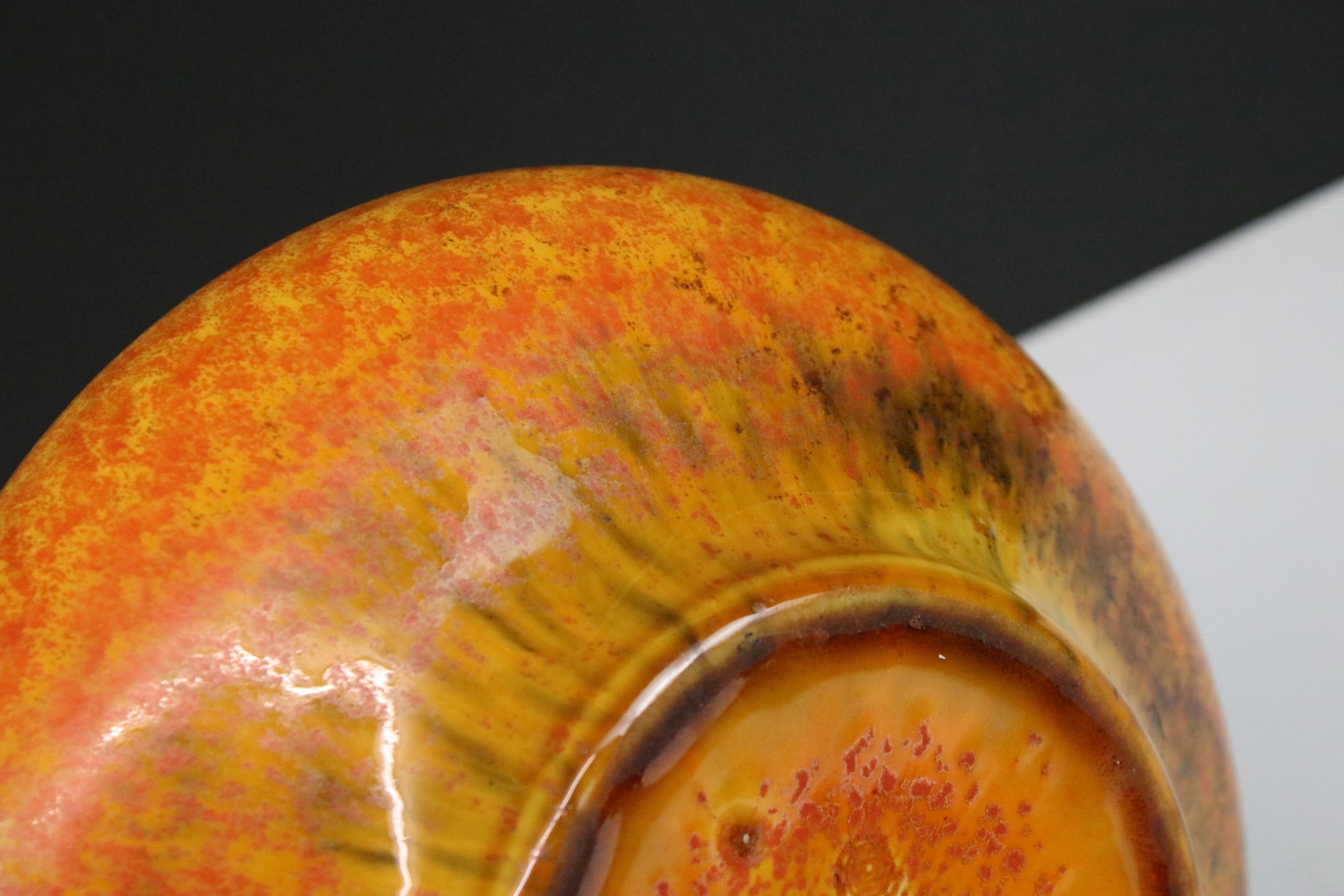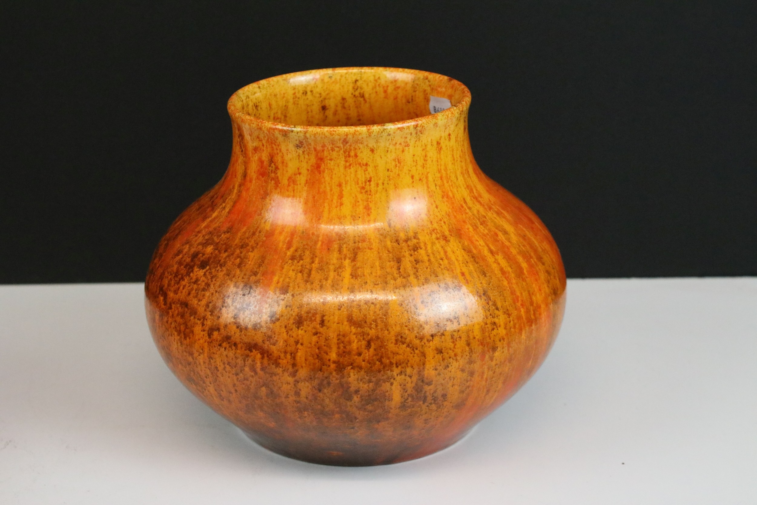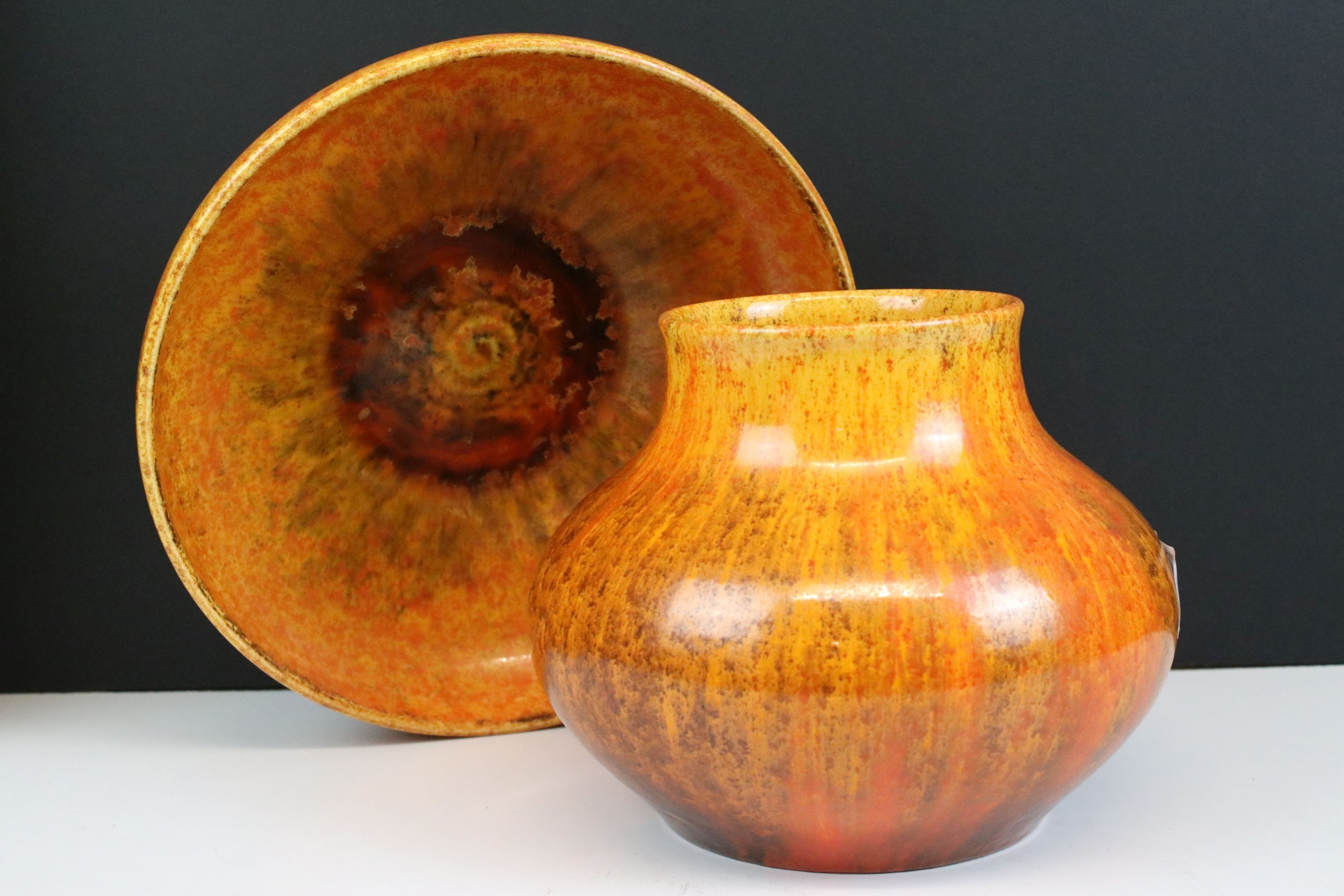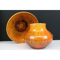 Royal Lancastrian lustrous orange bowl, having somewhat ogee form, D 23cm, together with a similar vase, probably Royal Lancastrian although mark obscured, H 14.5cm (2)