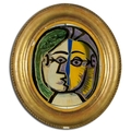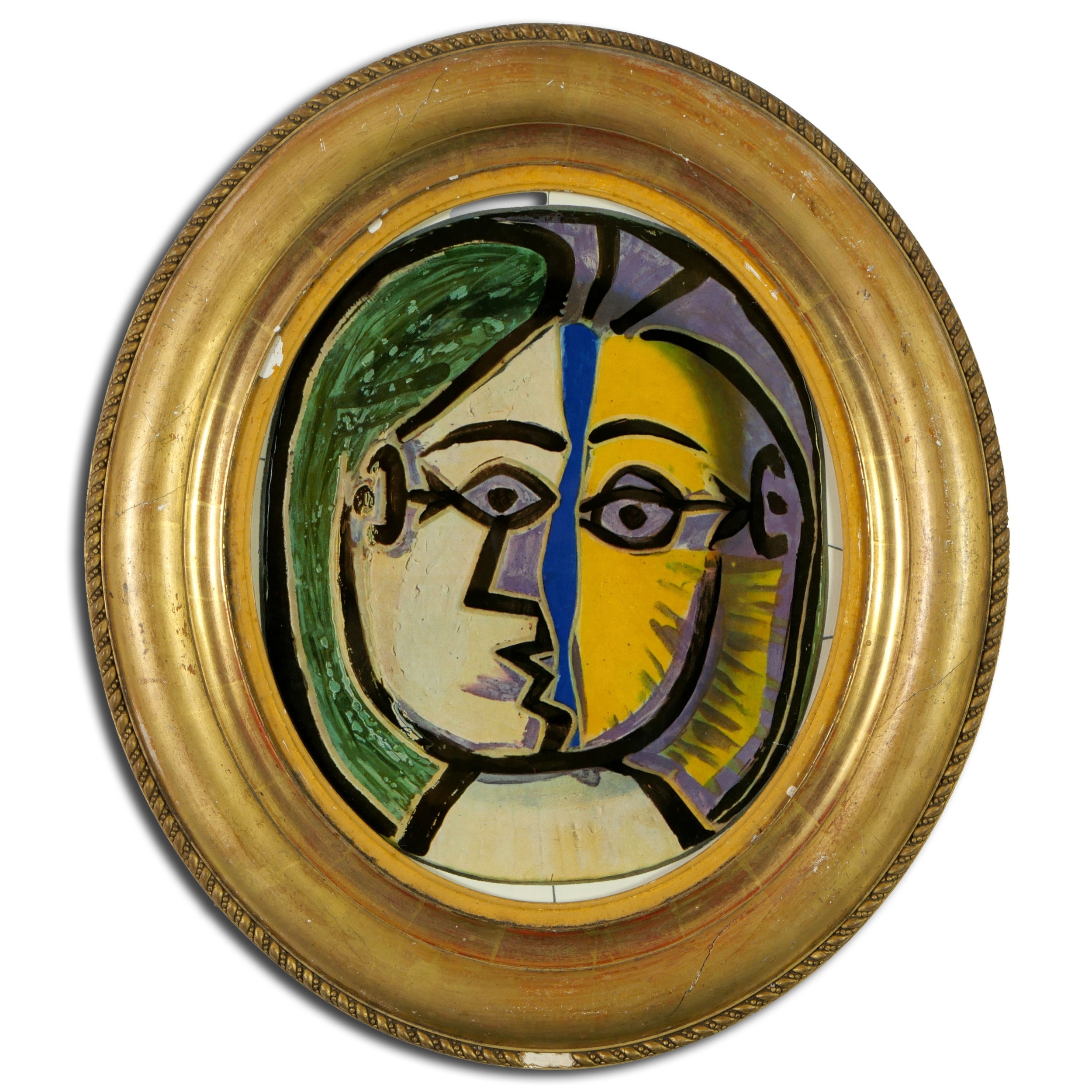 PABLO PICASSO. A QUADRICHROME PRINT. after the ceramic plates by Picasso, suite: Ceramiques, 1959, 37cm x 27cm, French distressed oval frame.