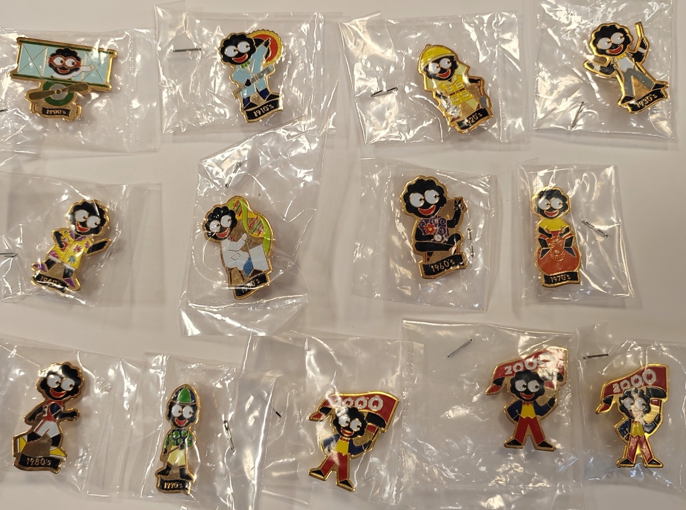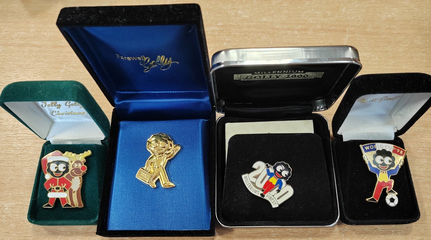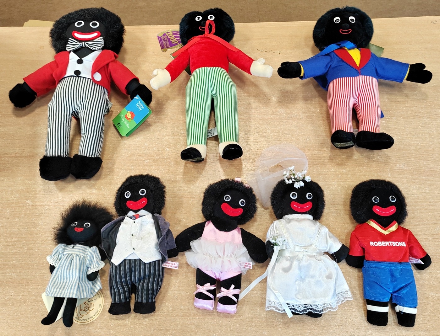 Golly by Robertson's collection generally excellent with original tags, including dolls Merry Thought Millennium (2), The House of Valentina, James Robertson Bride & Groom, James Robertson beanie, James Robertson Football beanie, Robin Rive limited edition 947/1000 hand made wee Golly girl, badges for each decade 1900 - 2000 (13) and range in presentation boxes with Jolly Golly Christmas, Farewell Golly, Golly it's Good and Millennium Golly 2000. Qty 25 (B)