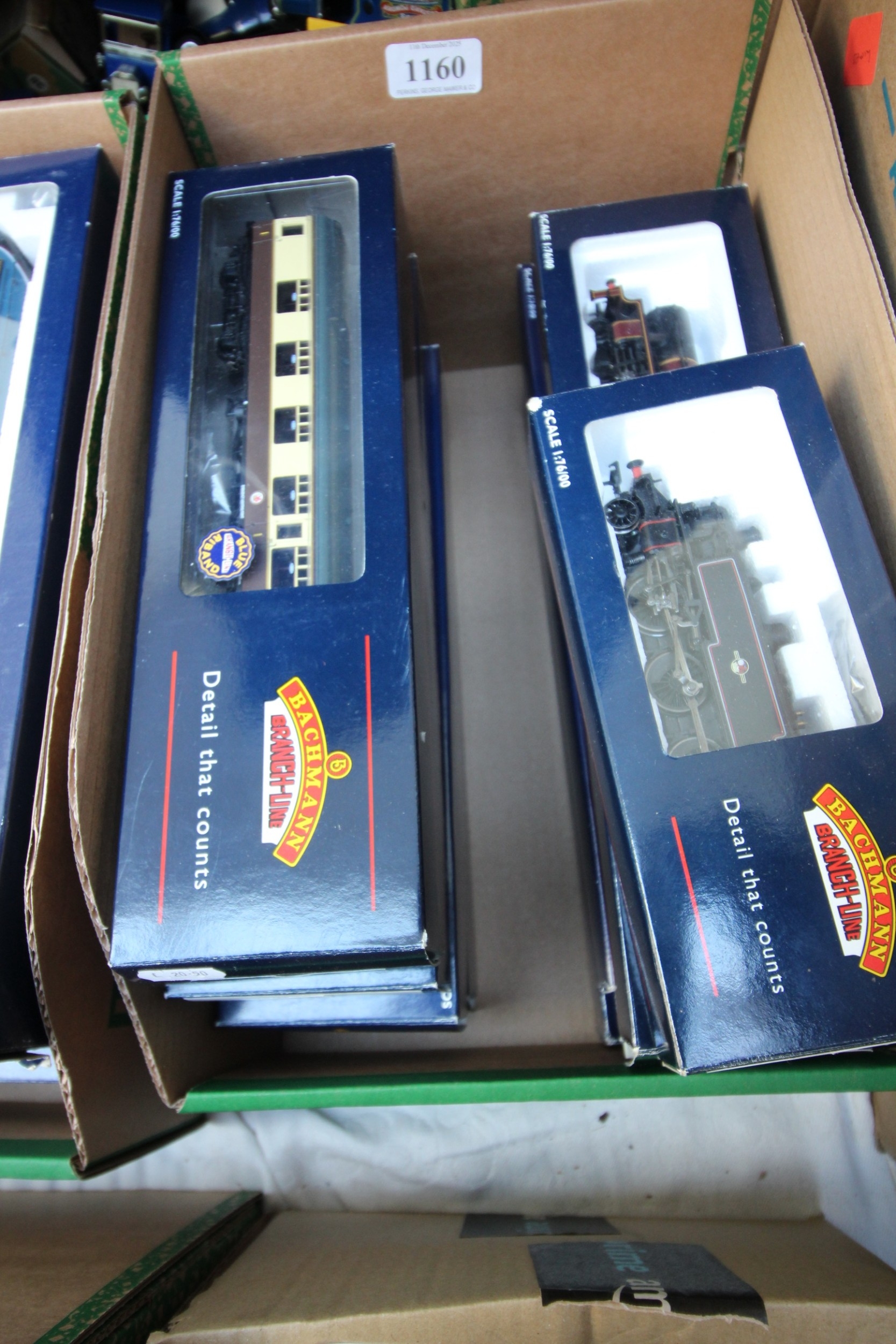 Originally boxed 00 gauge Bachmann railway engines and carriages, 4 engines being Standard Class 5MT73069 plain black, Jubilee 5684 Jutland Crimson LMS, Ivatt Class 2-6-046520 BR Green and a Ivatt Tank 41324 push/pull BR, carriages being 4 BR Mark I corridor first, brake-corridor x2 and a Mark I Composite CKWR