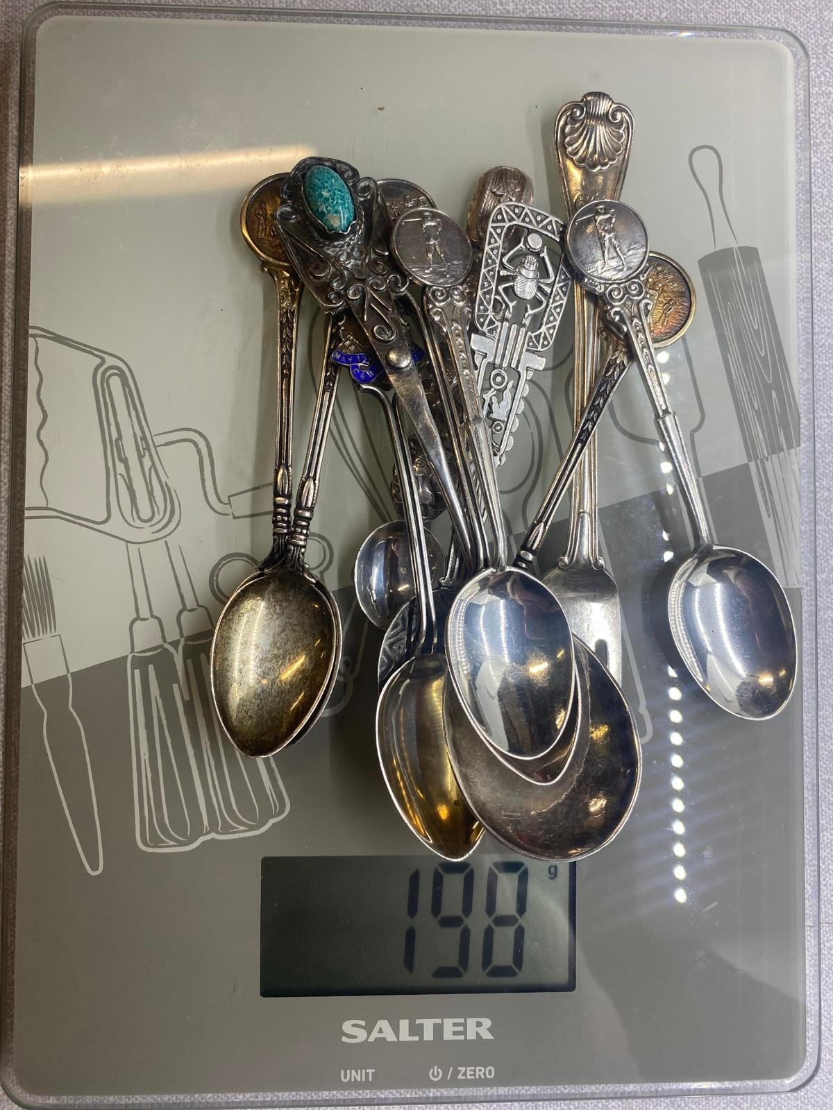 Collection of 11 silver spoons. 198g