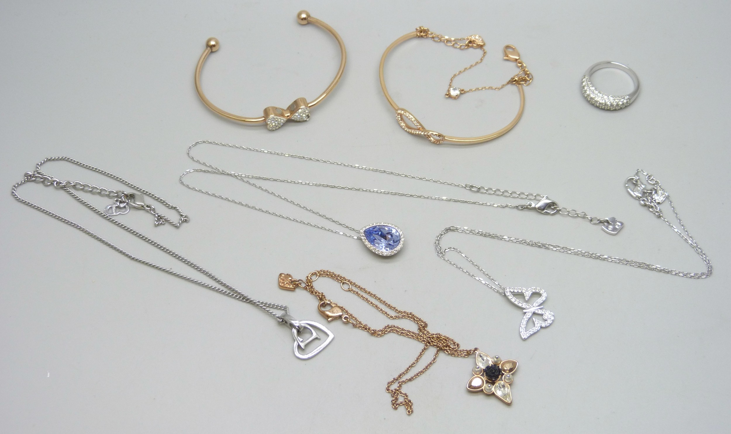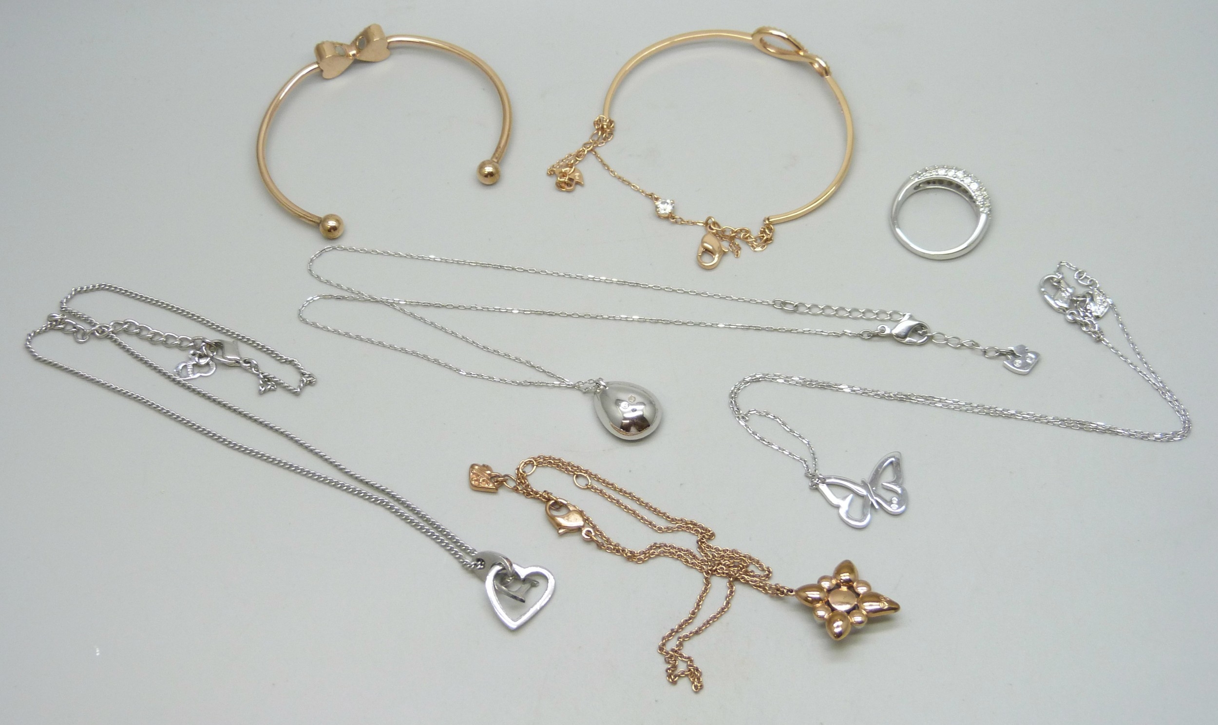 A Christian Dior heart design necklace, and Swarovski jewellery, together with an unmarked torque bangle