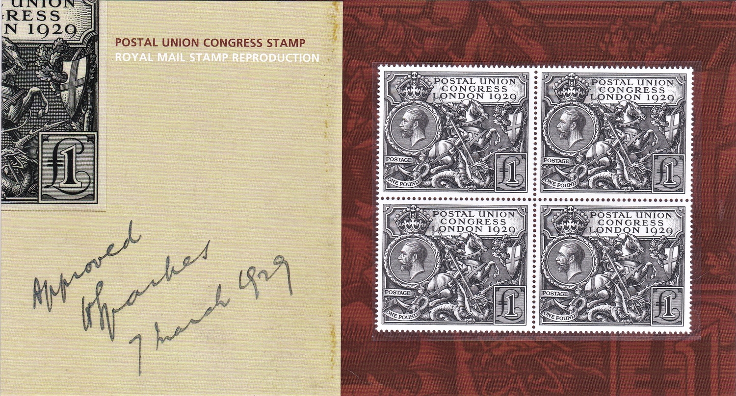 Great Britain 2000 - Royal Mail Postal Union Congress, £1 - block of four, reproduction presentation pack, pristine condition