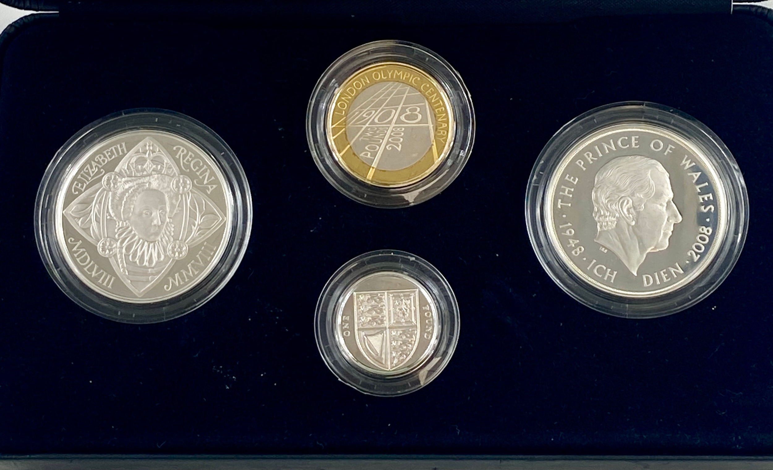 The 2008 UK Silver proof Piedfort Four coin collection in original Royal Mint case with COA.