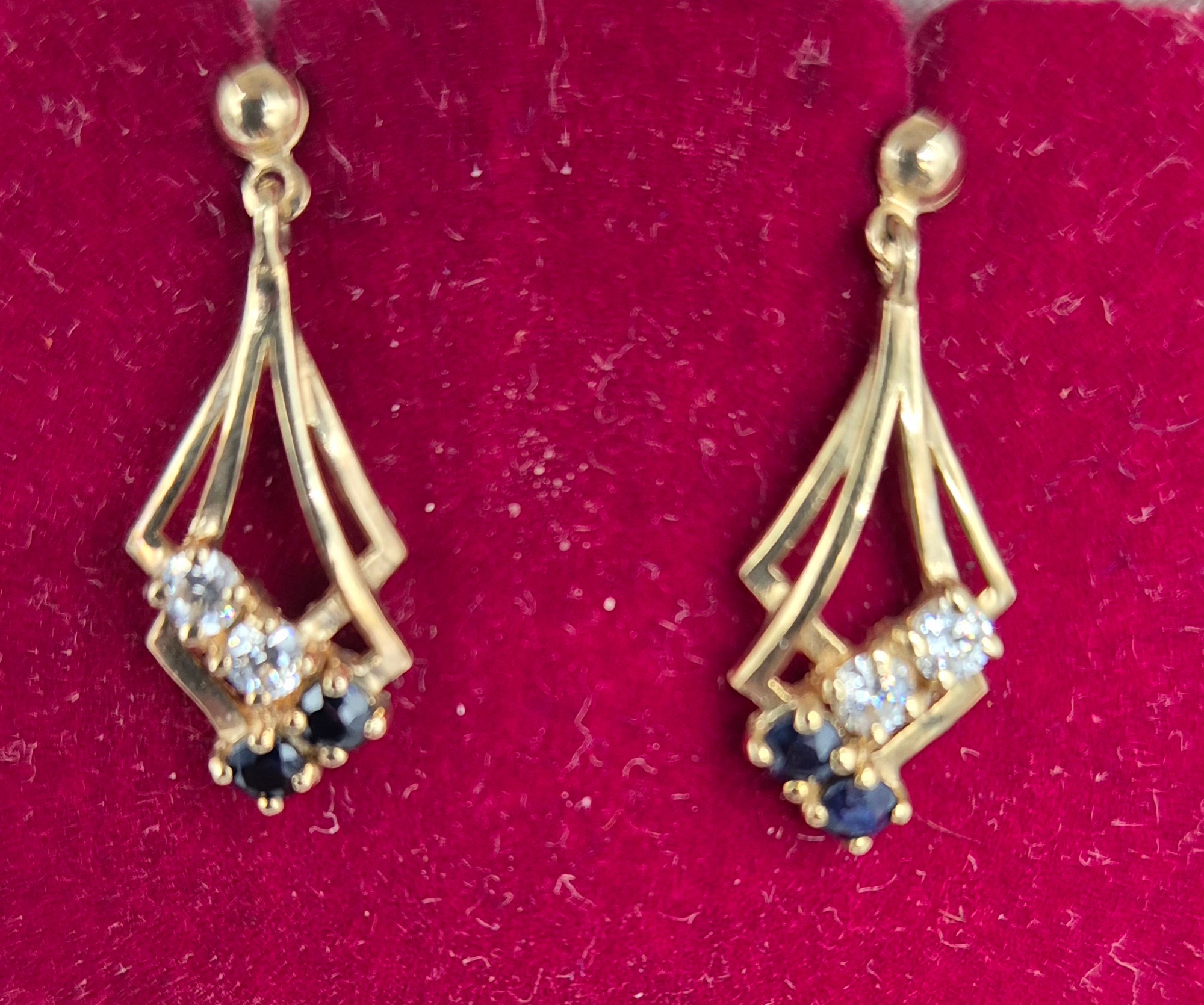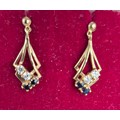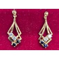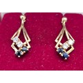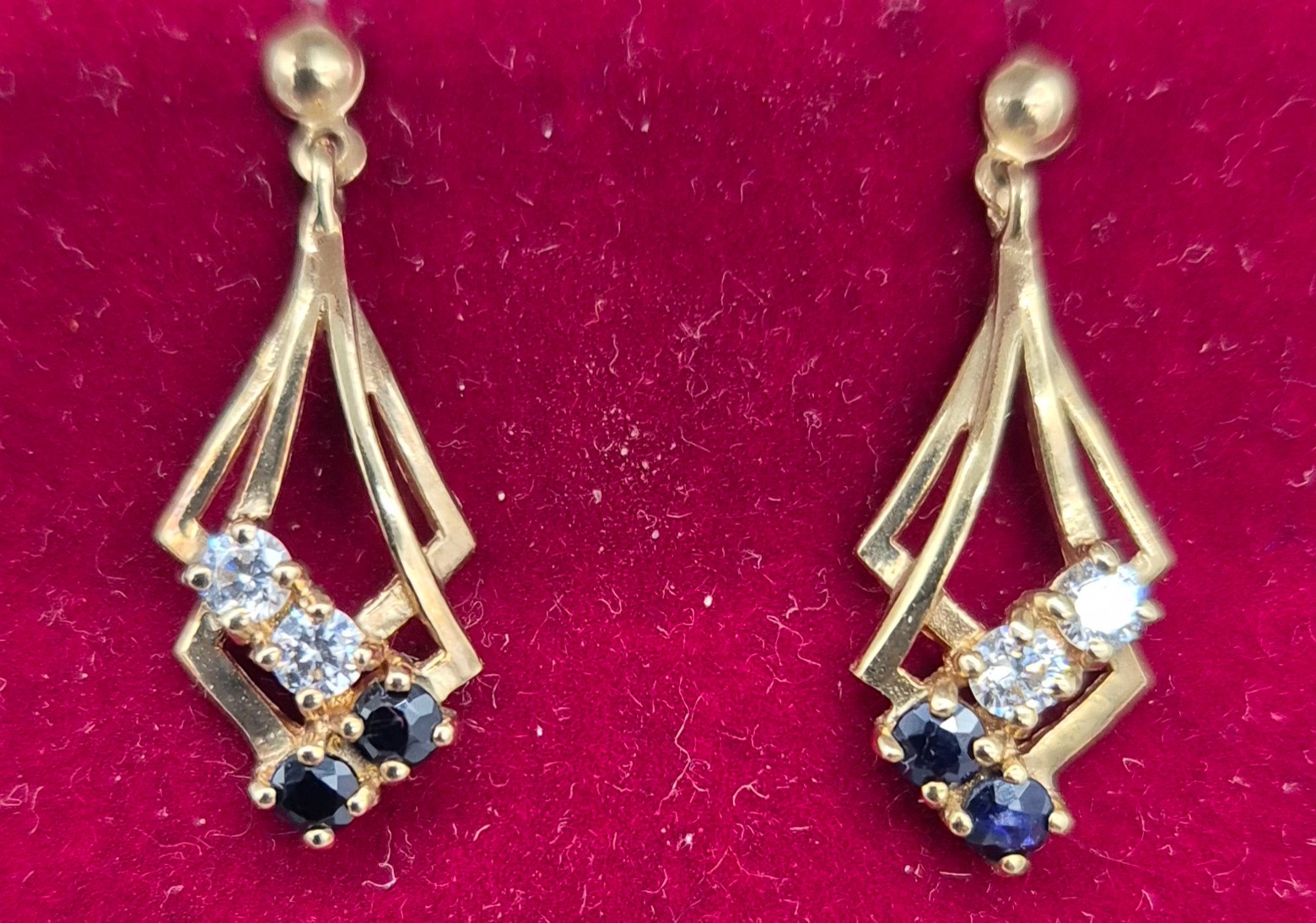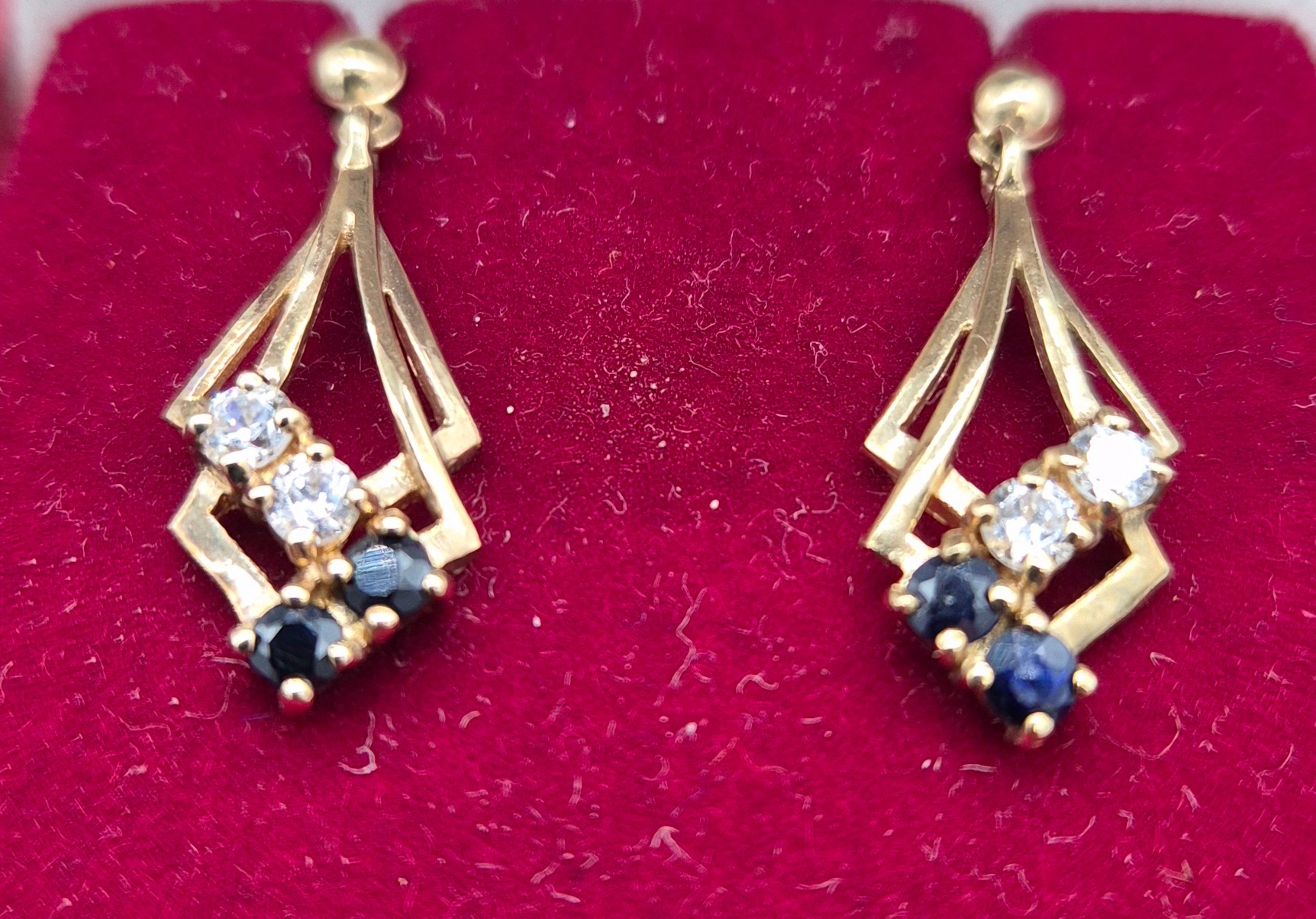 Pair of 9ct yellow gold, CZ and Blue Sapphire gem stone earrings. [1.70Grams]
