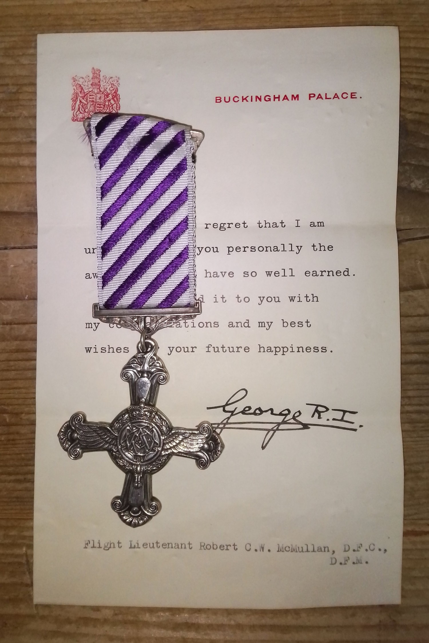 A WWI 1918 Distinguished Flying Cross DFC unnamed as issued, comes with non matching letter to Flight Lieutenant Robert C.W. McMullan, D.F.C., D.F.M.