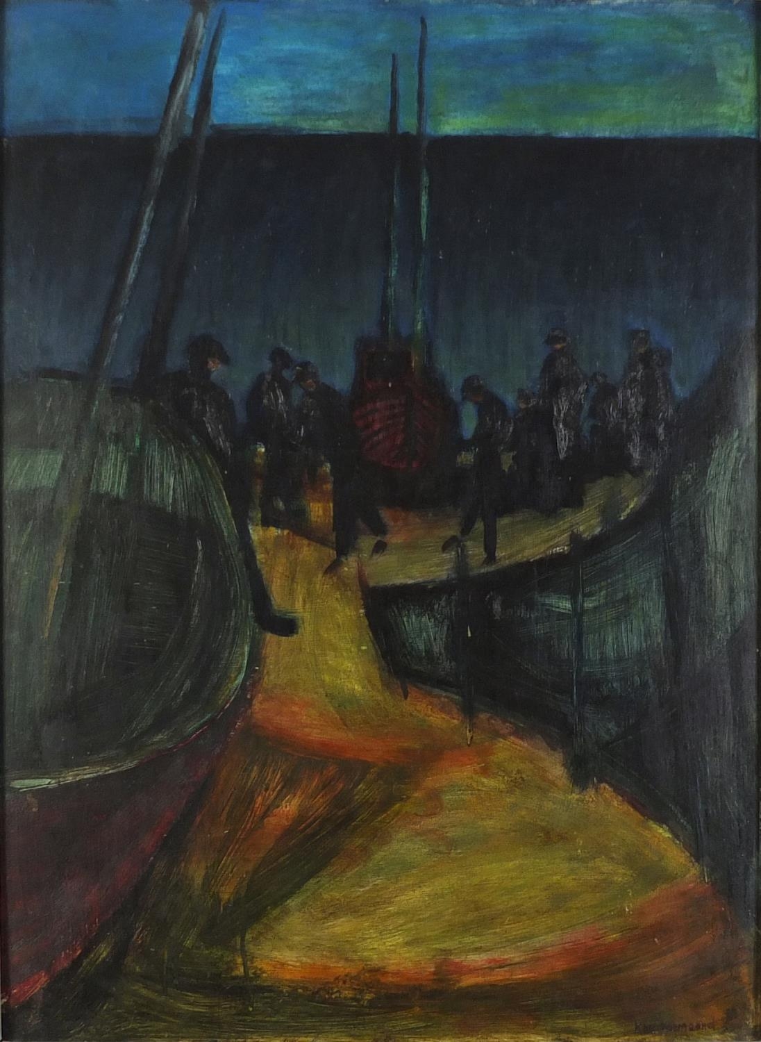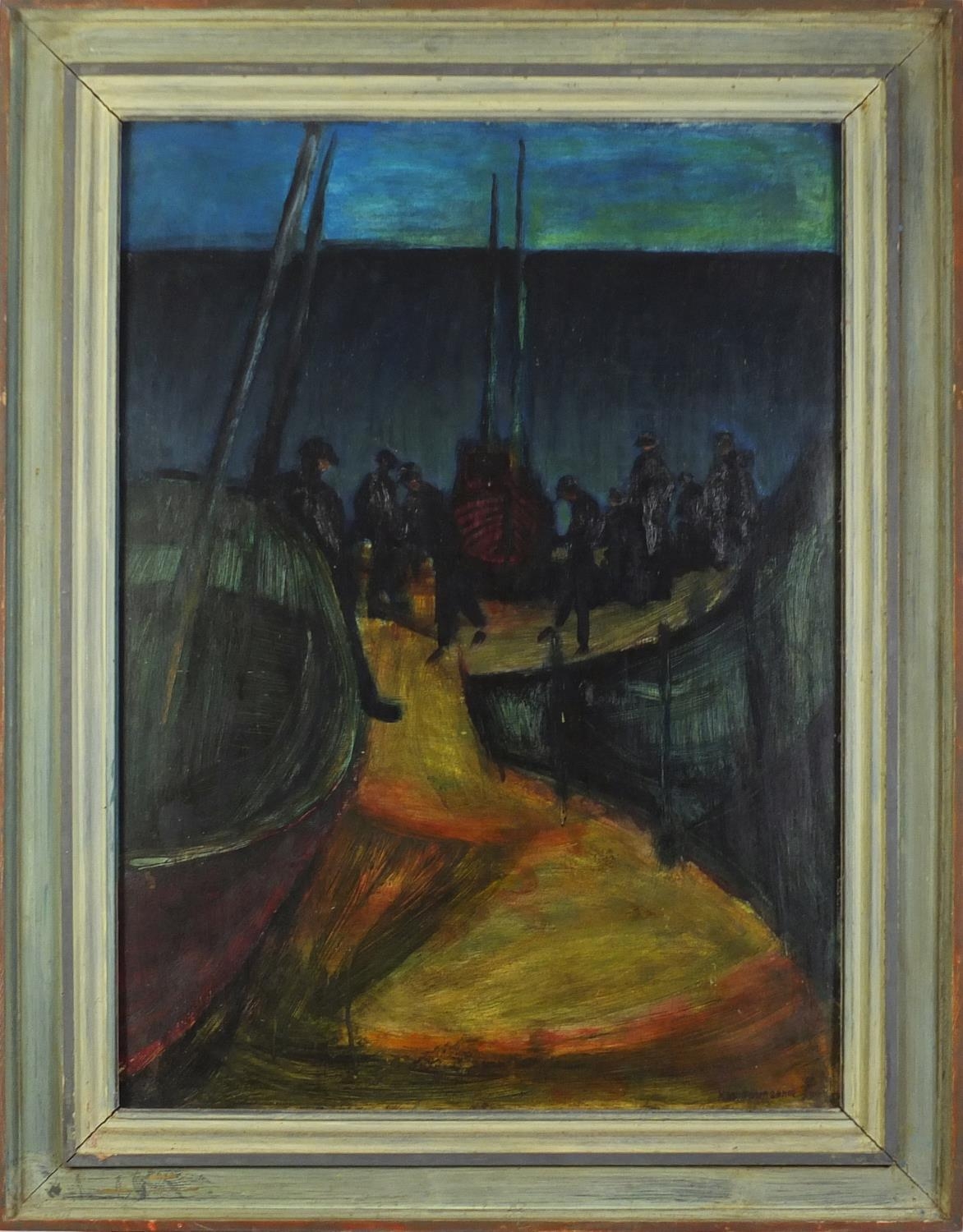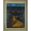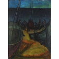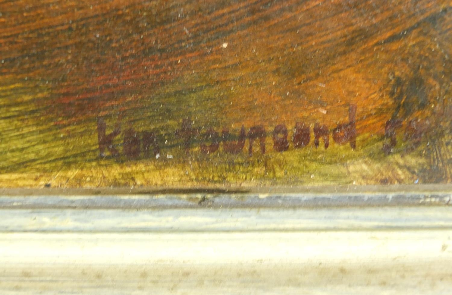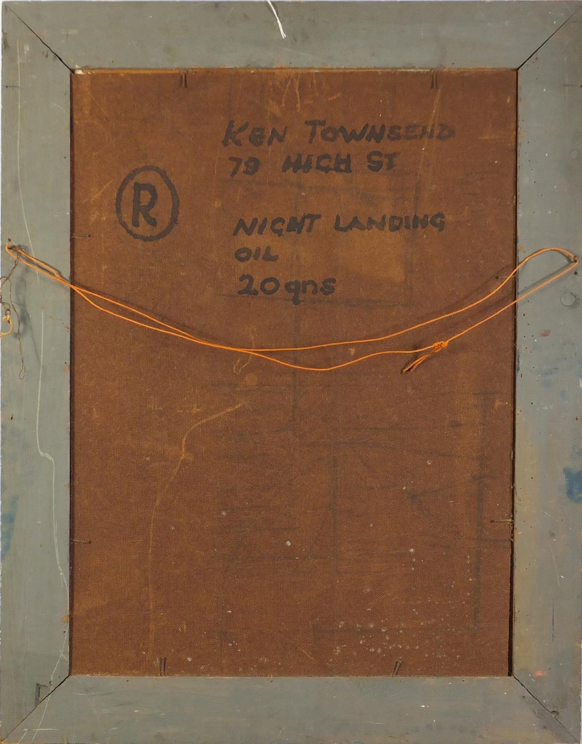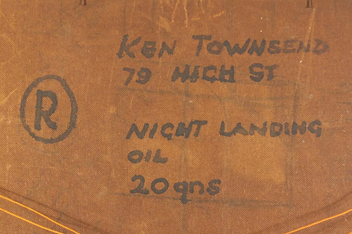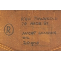Ken Townsend - Night landing, oil on board, inscribed verso, mounted and framed, 76cm x 55.5cm excluding the mount and frame