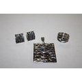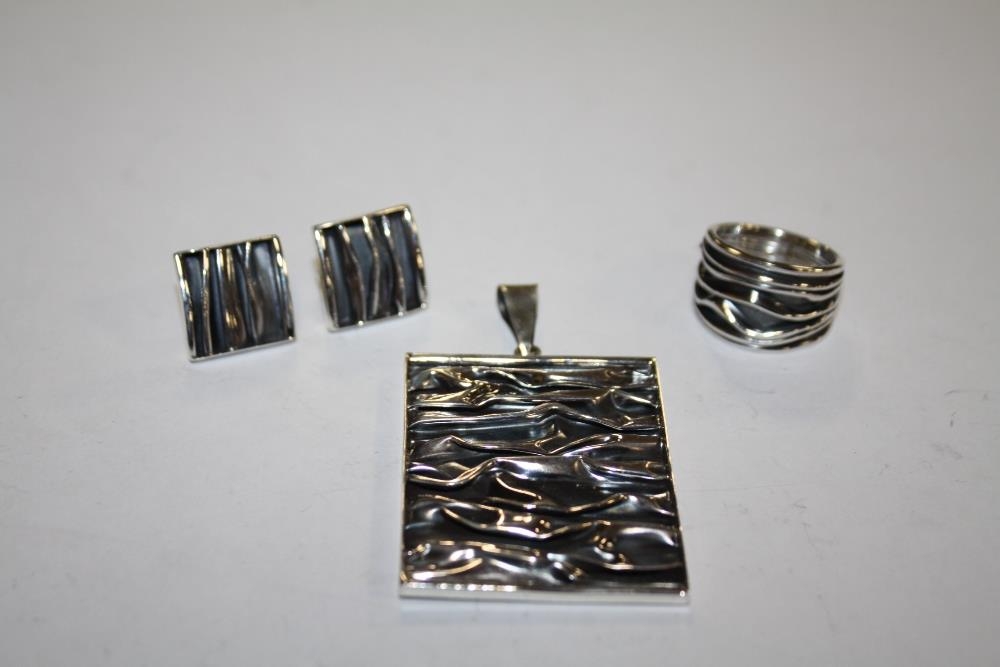 A MODERN SILVER RING, PENDANT AND EARRING SET, APPROX WEIGHT 21 G