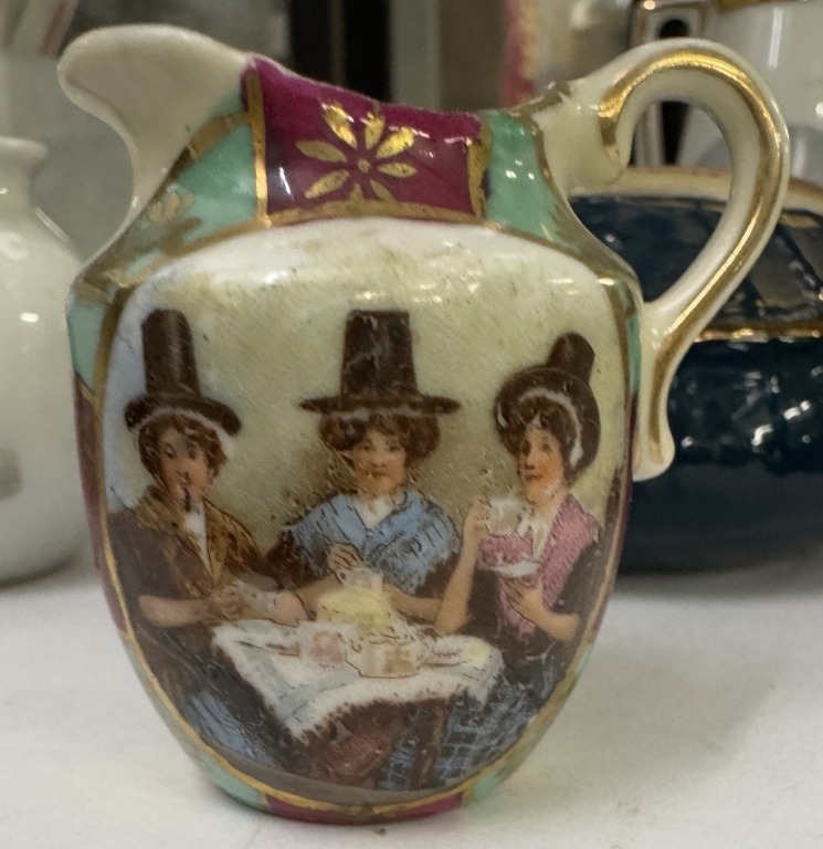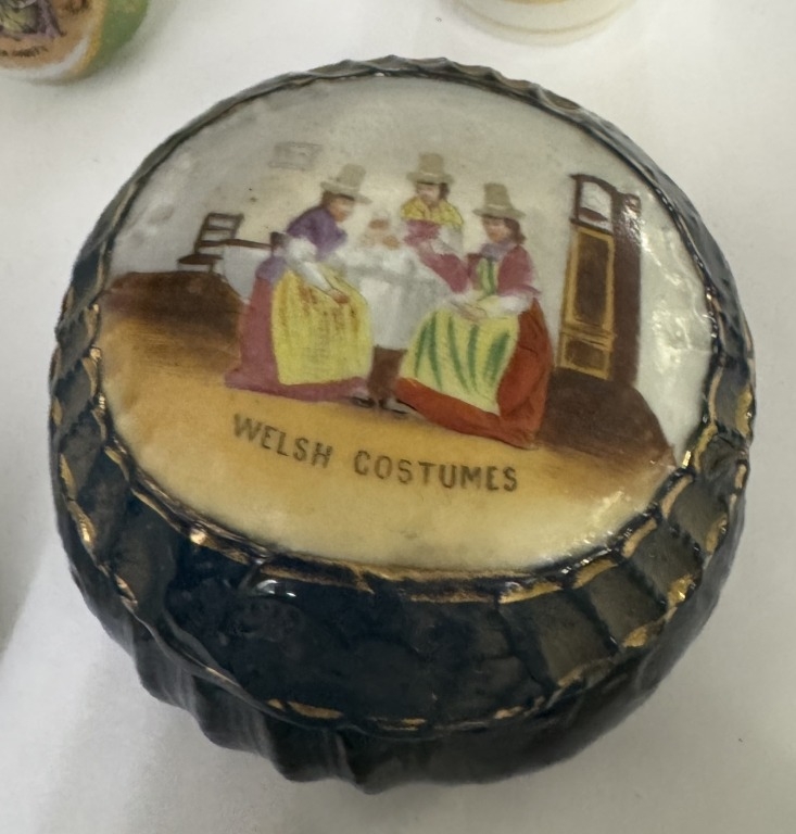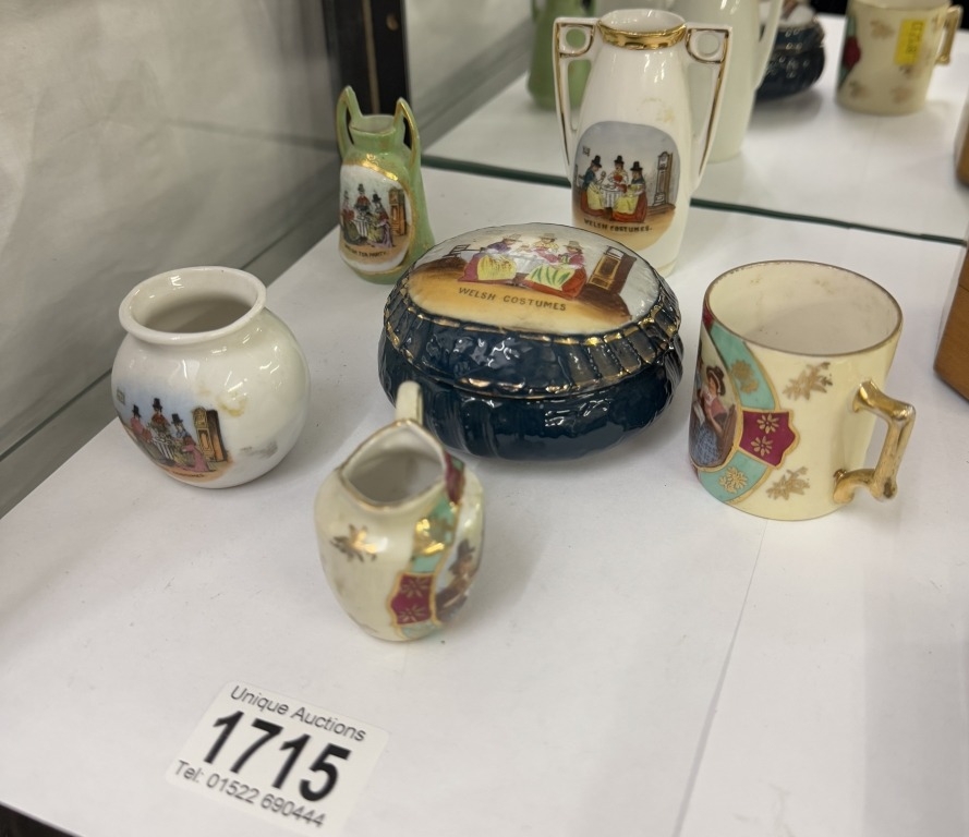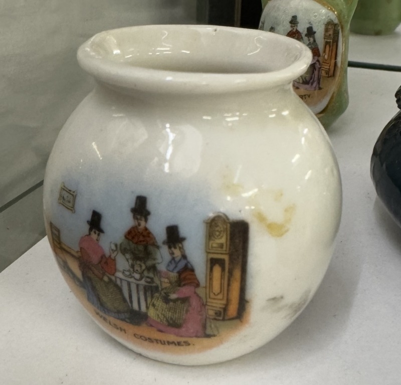 6 vintage ceramic miniatures with Welsh costumes decorations
