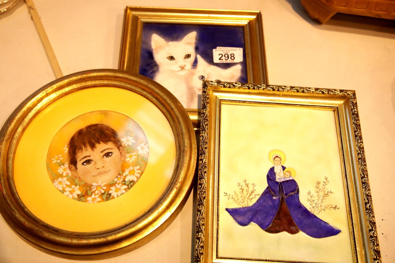 Three ceramic pictures by Avis Ballard (Spain), largest 20 x 25 cm. This lot is not available for in-house P&P.