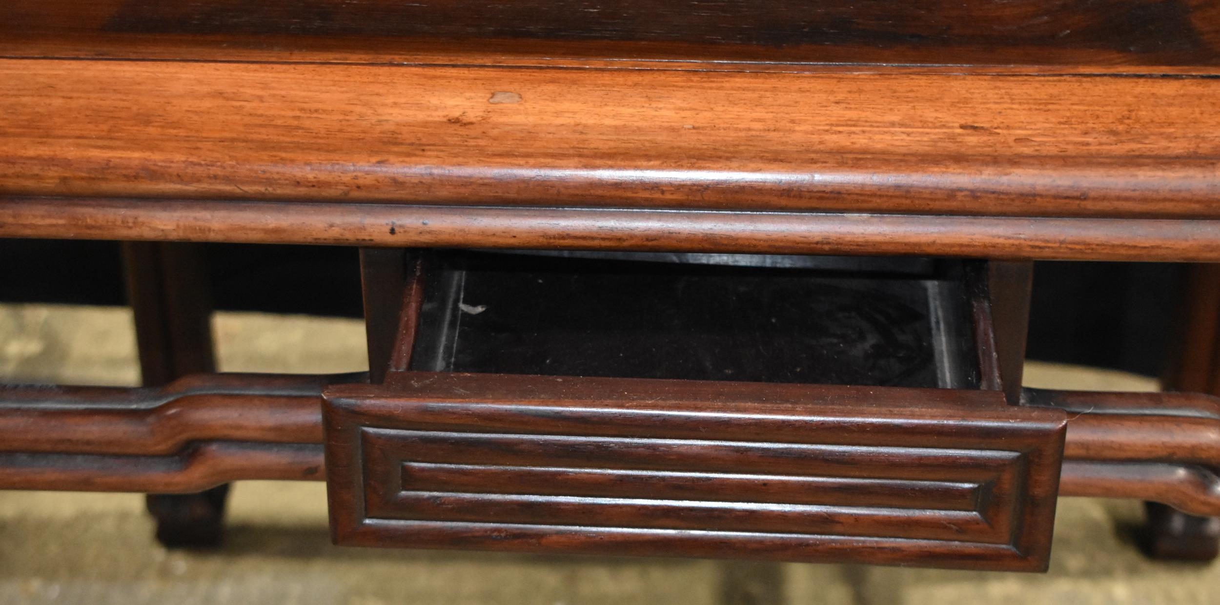 A Chinese Huali scholars table with four drawers 82 x 94 x 94 cm