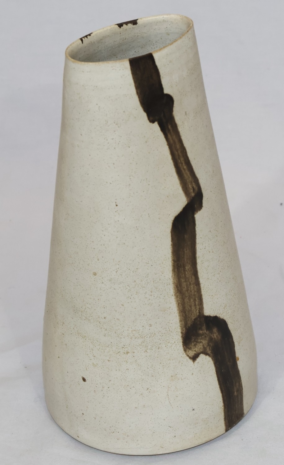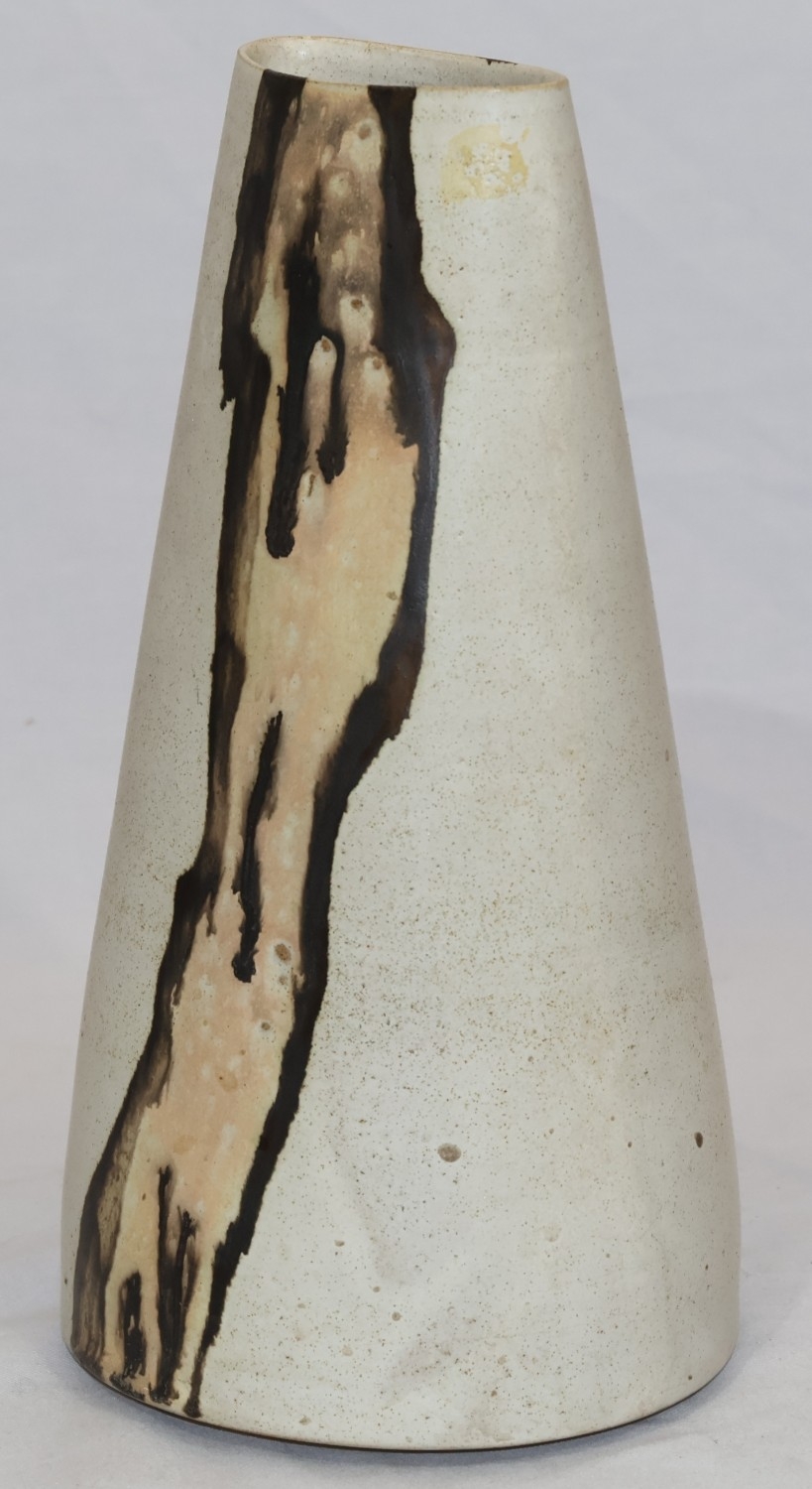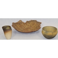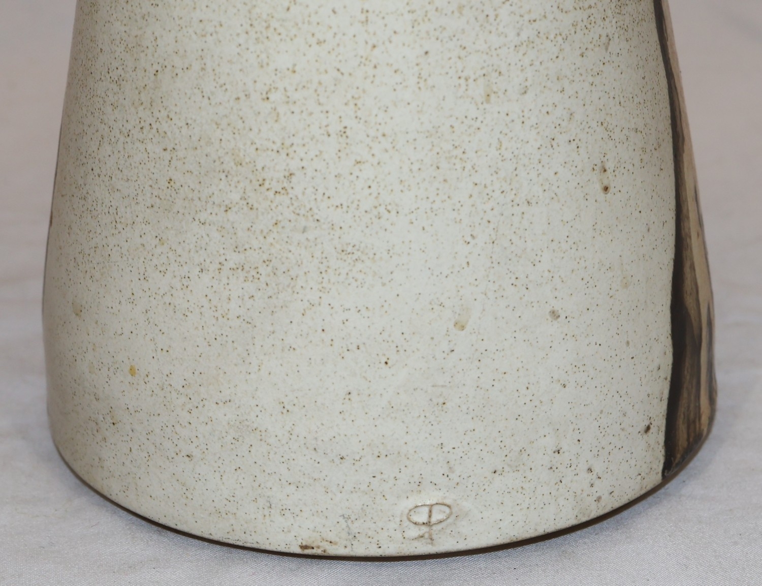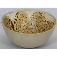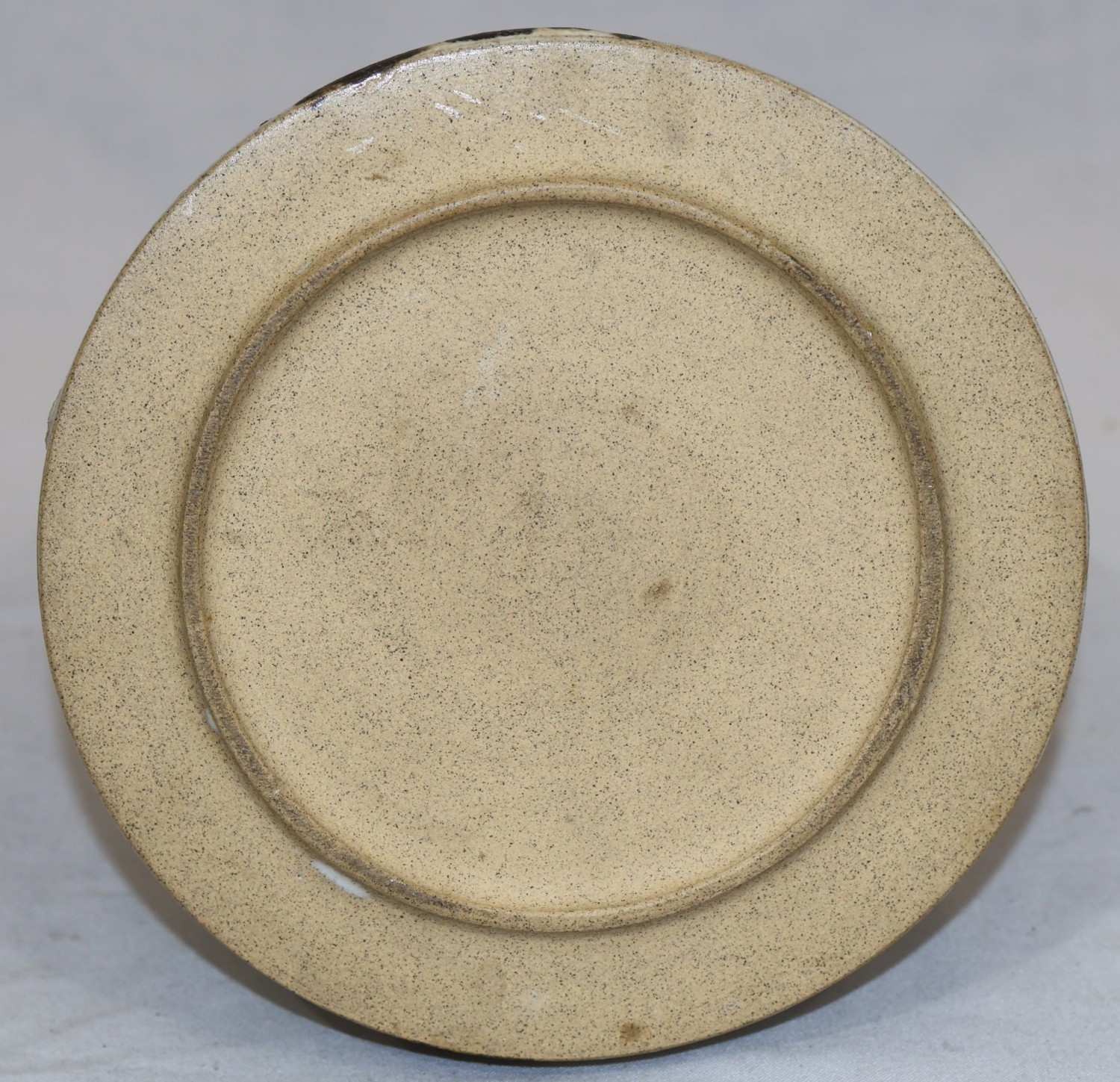 Sarah Perry (B.1945) Studio Pottery round fruit bowl on cream and brown ground, with seal mark, 30cm diameter, 14cm high
