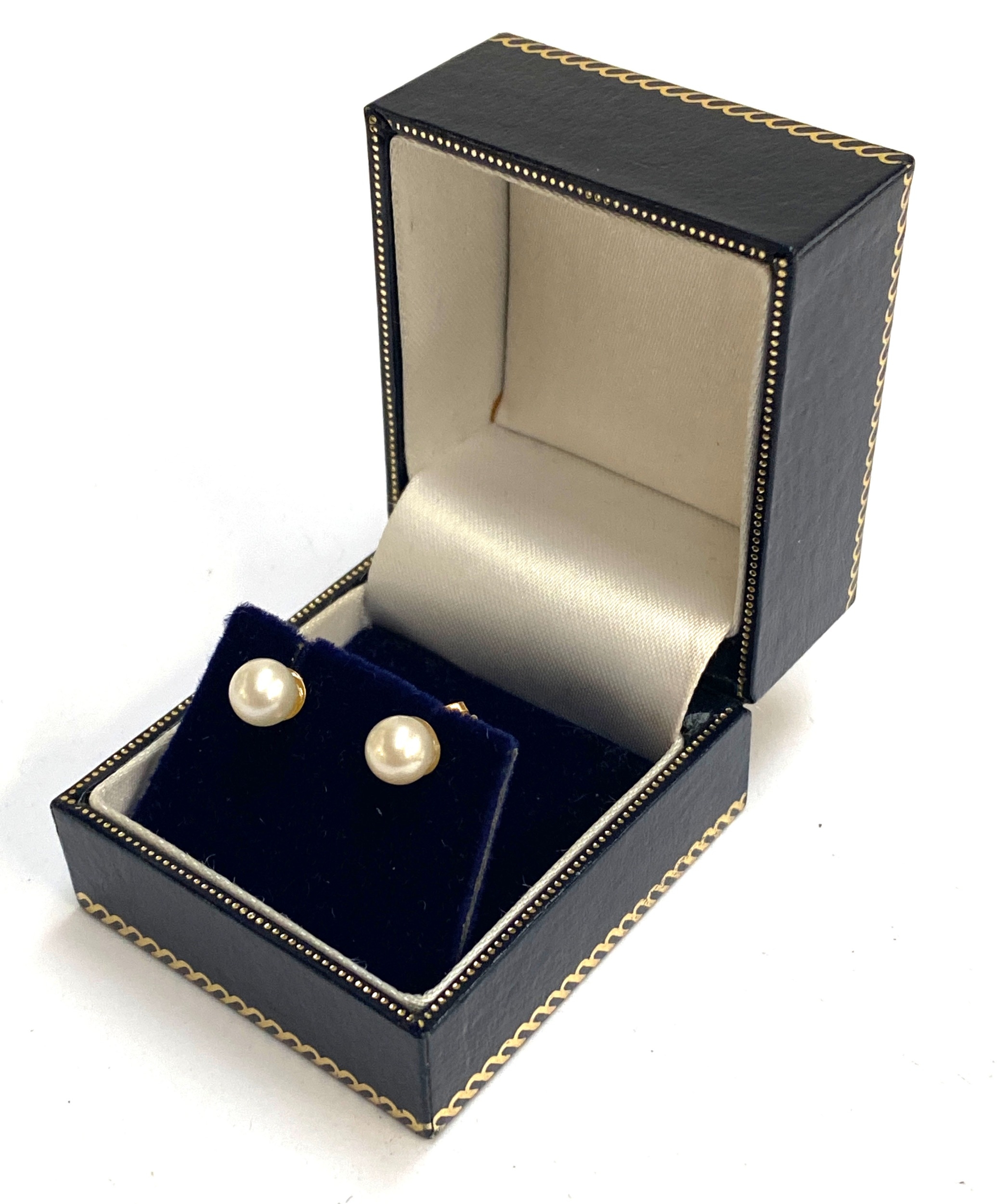 A pair of 9ct gold and pearl stud earrings, the pearls 6mmD, gross weight 1.1g