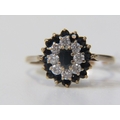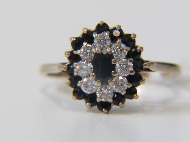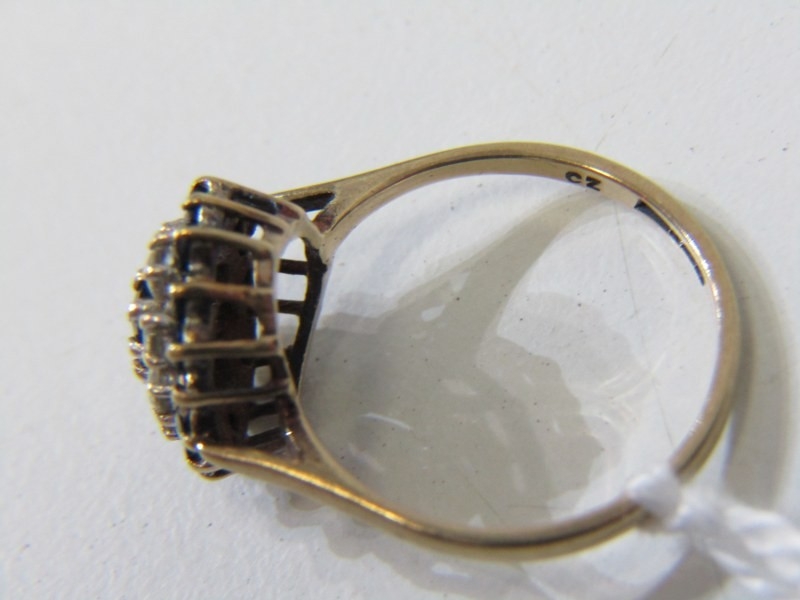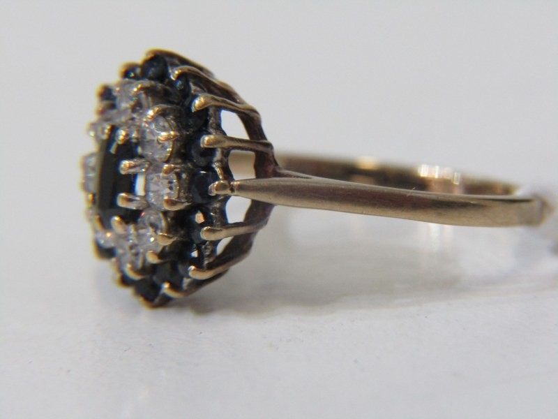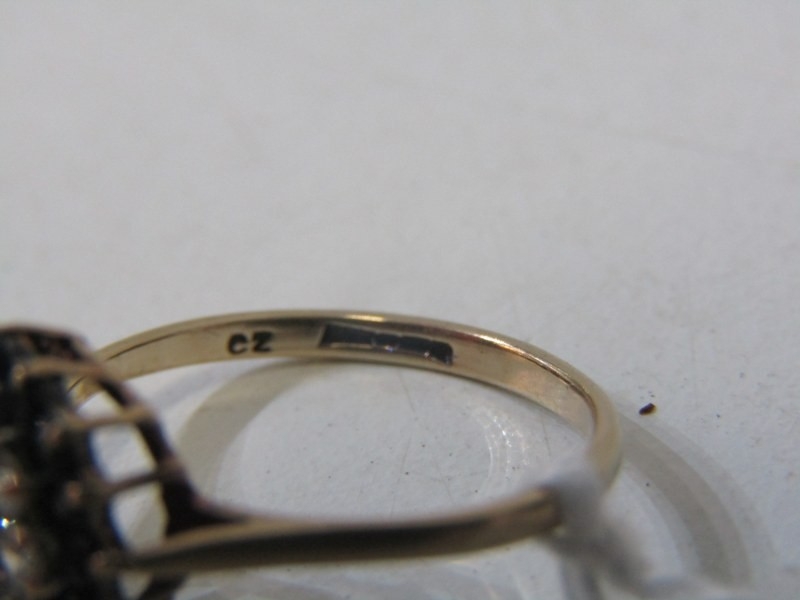 SAPPHIRE CLUSTER RING, 9ct yellow gold ring, set a cluster of sapphires and CZs, size O