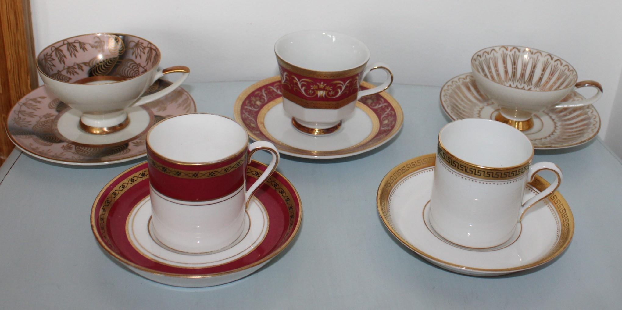 Five Collectable Decorative Mini Cups & Saucers