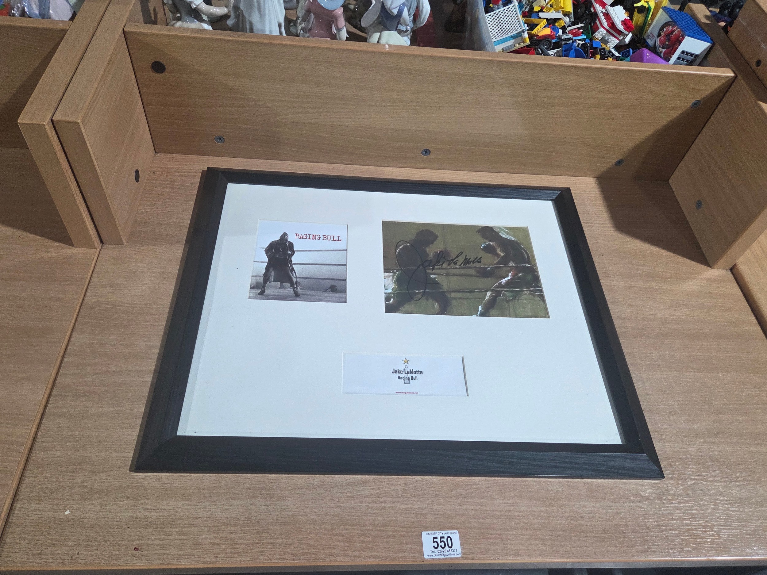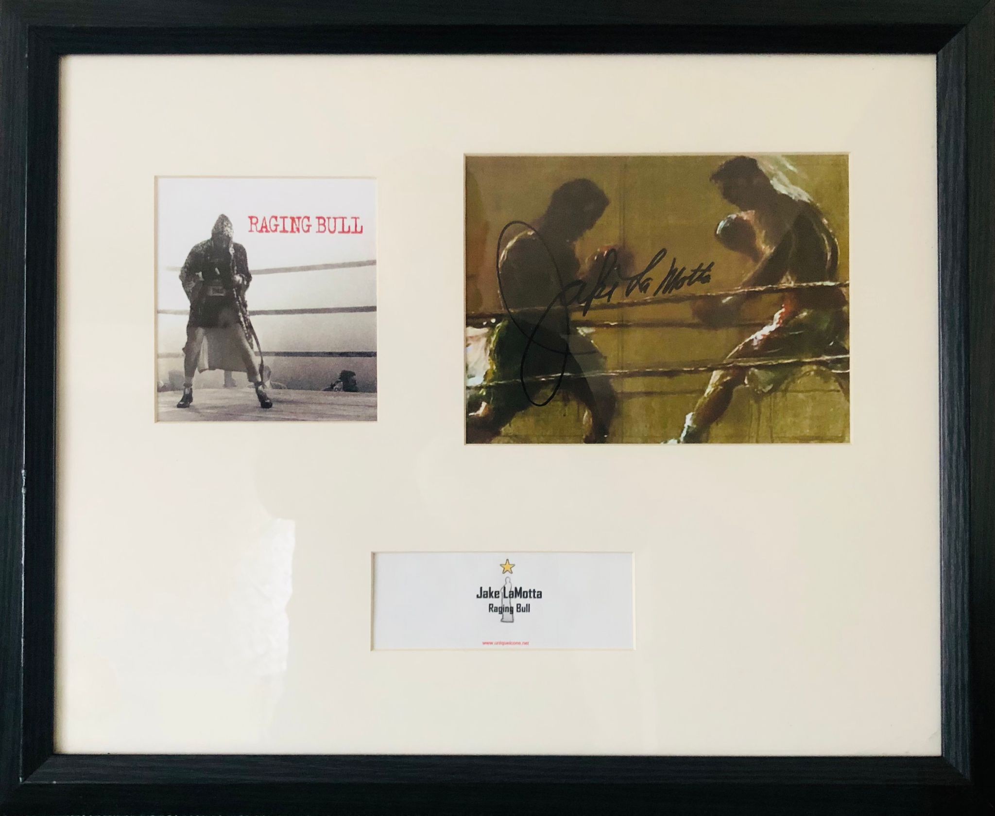 A framed signed photograph - the movie "Raging Bull" - signed by Jake Lamotta with certificate of authenticity
