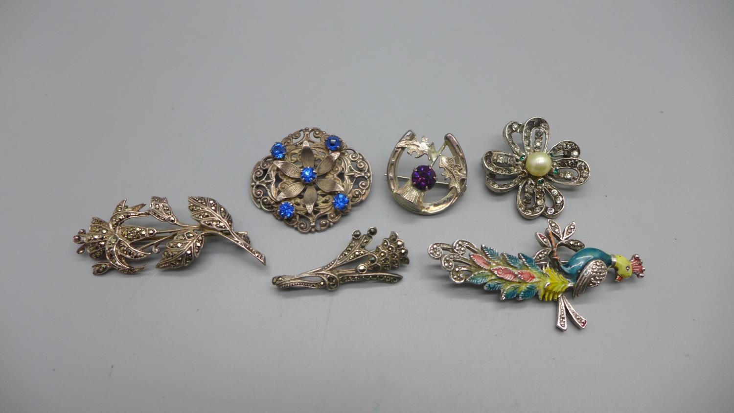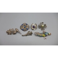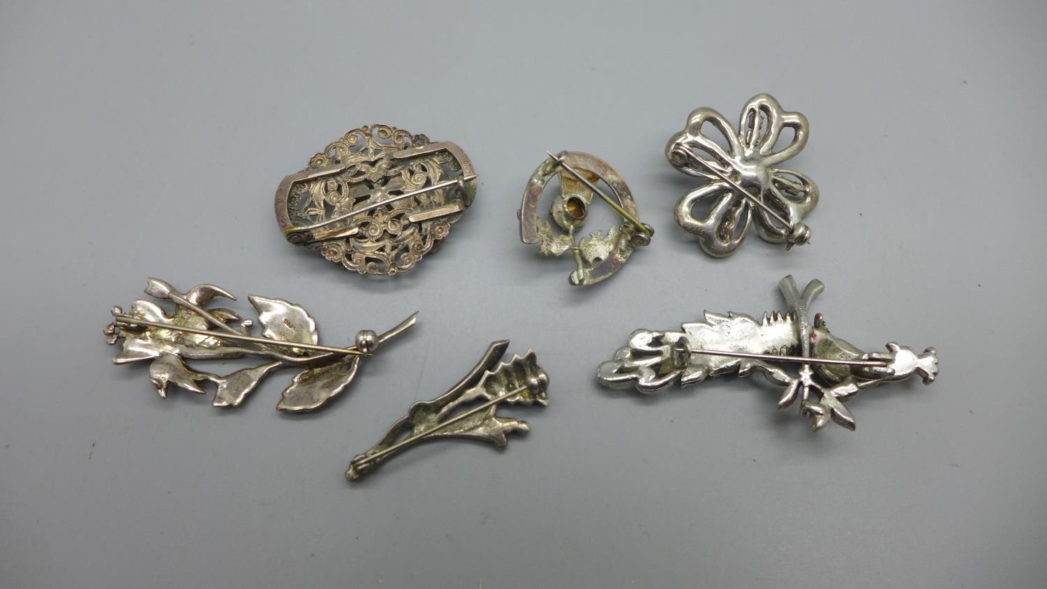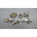 Four silver brooches and two other brooches