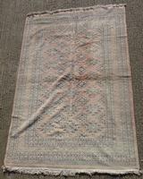 Oriental Style Rug with rose & grey decoration, stars, simulated flower heads & bands of beige, red & maroon