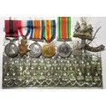 Distinguished Conduct Medal GV (12337 Sjt C B Green 19/Manch R) and 1915 Star Trio (12337 Pte C B Green Manch R) and Defence Medal. DCM L/G 4/6/1917 'For conspicuous gallantry and devotion to duty. Although Wounded and having been Buried by a Shell, he remained at duty for two days during a very critical period he has set a fine example throughout'. WiA 20th Oct 1916 GSW L/Hand. Born Hunstanton, Norfolk. An original 4th Pals Bn Manchester Regt man. With folder of research.