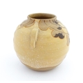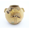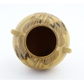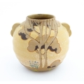 An Art Deco vase of globular form with twin handles decorated with trees in a landscape. Marked England under. Approx. 6 1/2" high