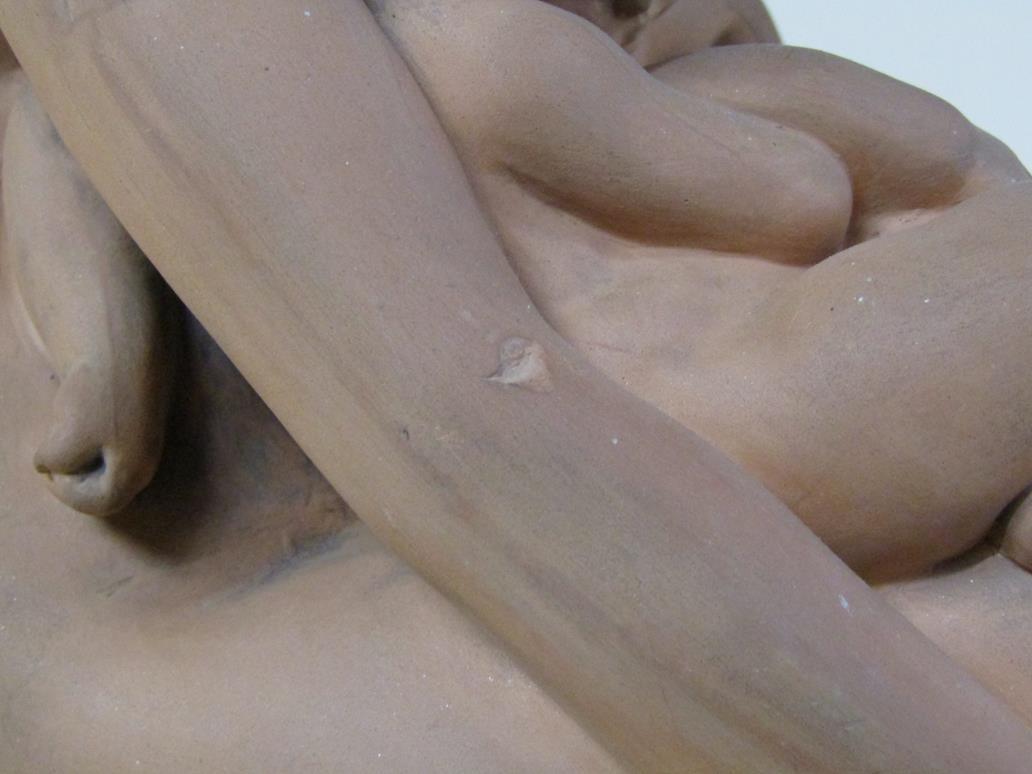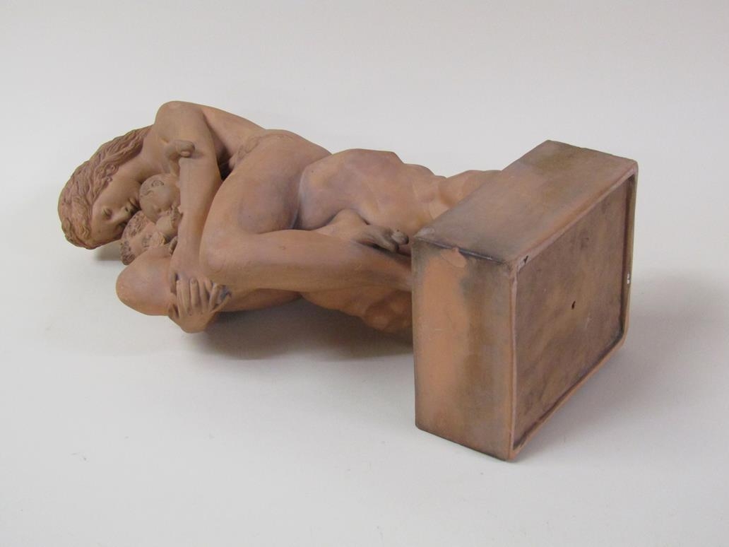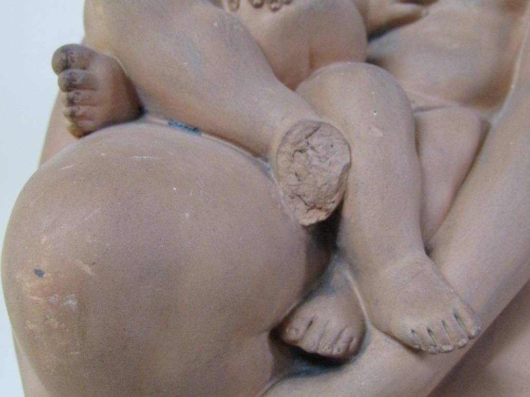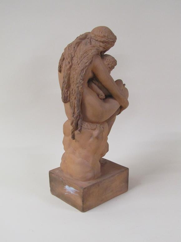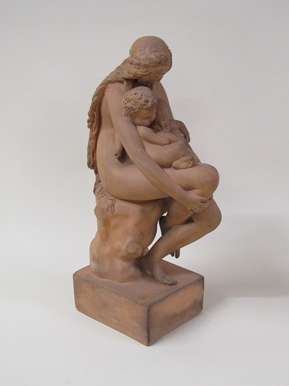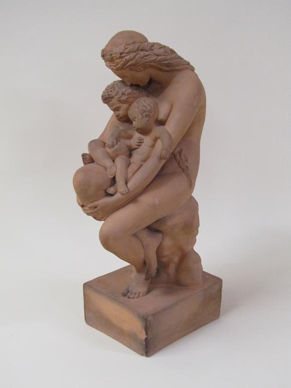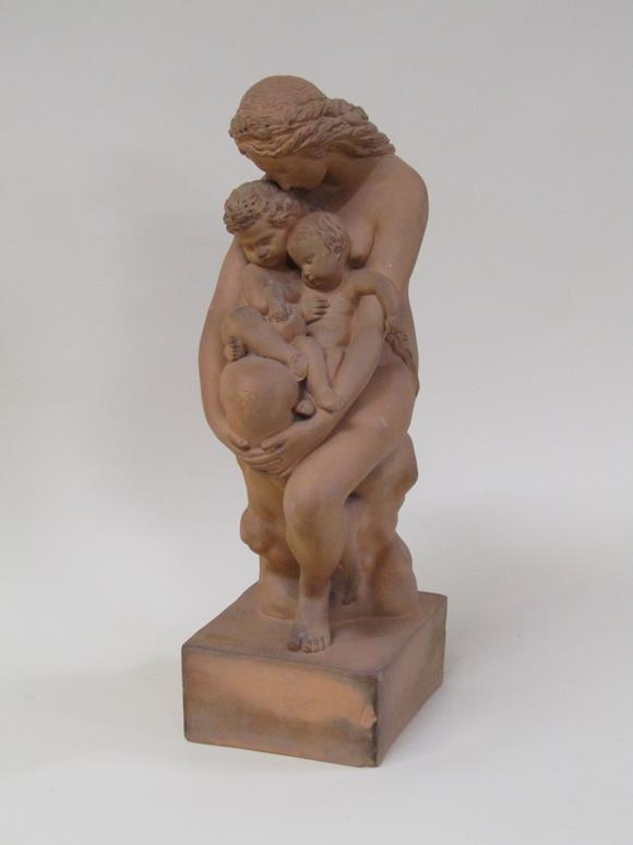 A terracotta figure group of a mother and two children, a/f, 44cm h.