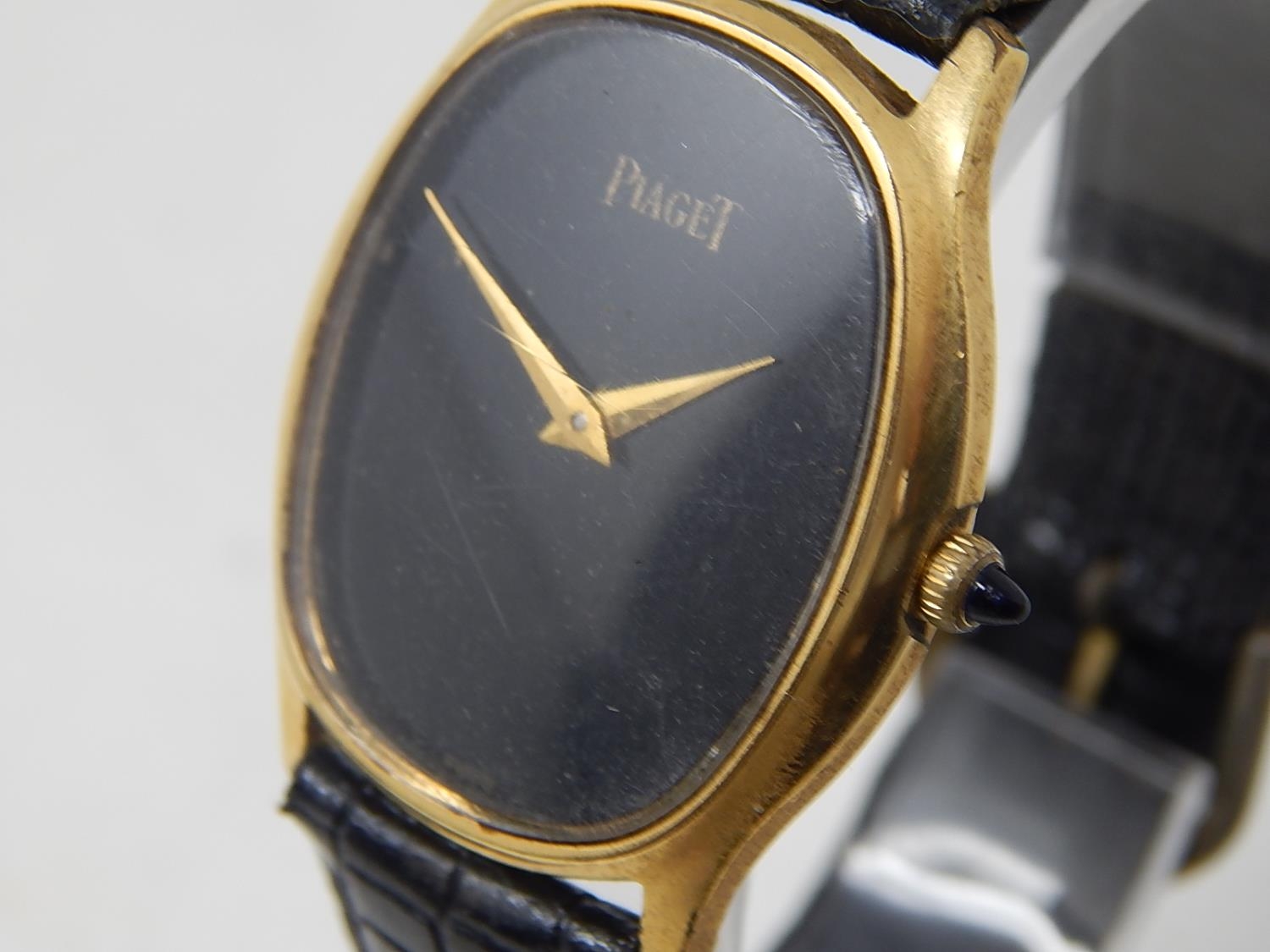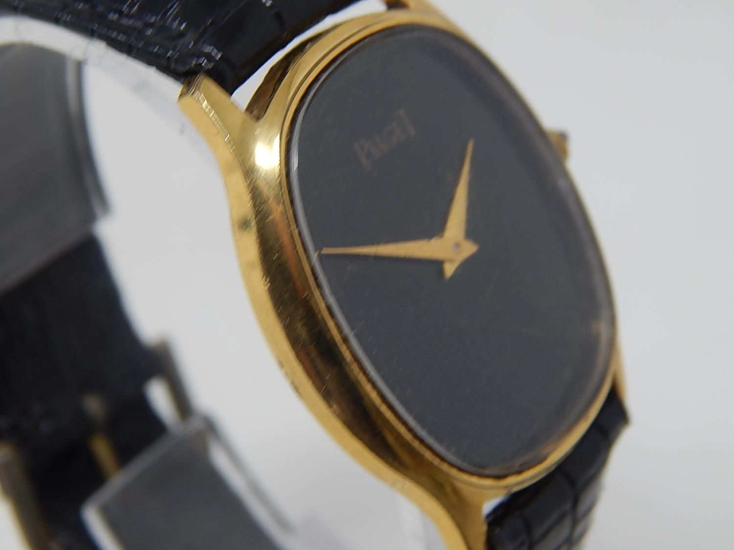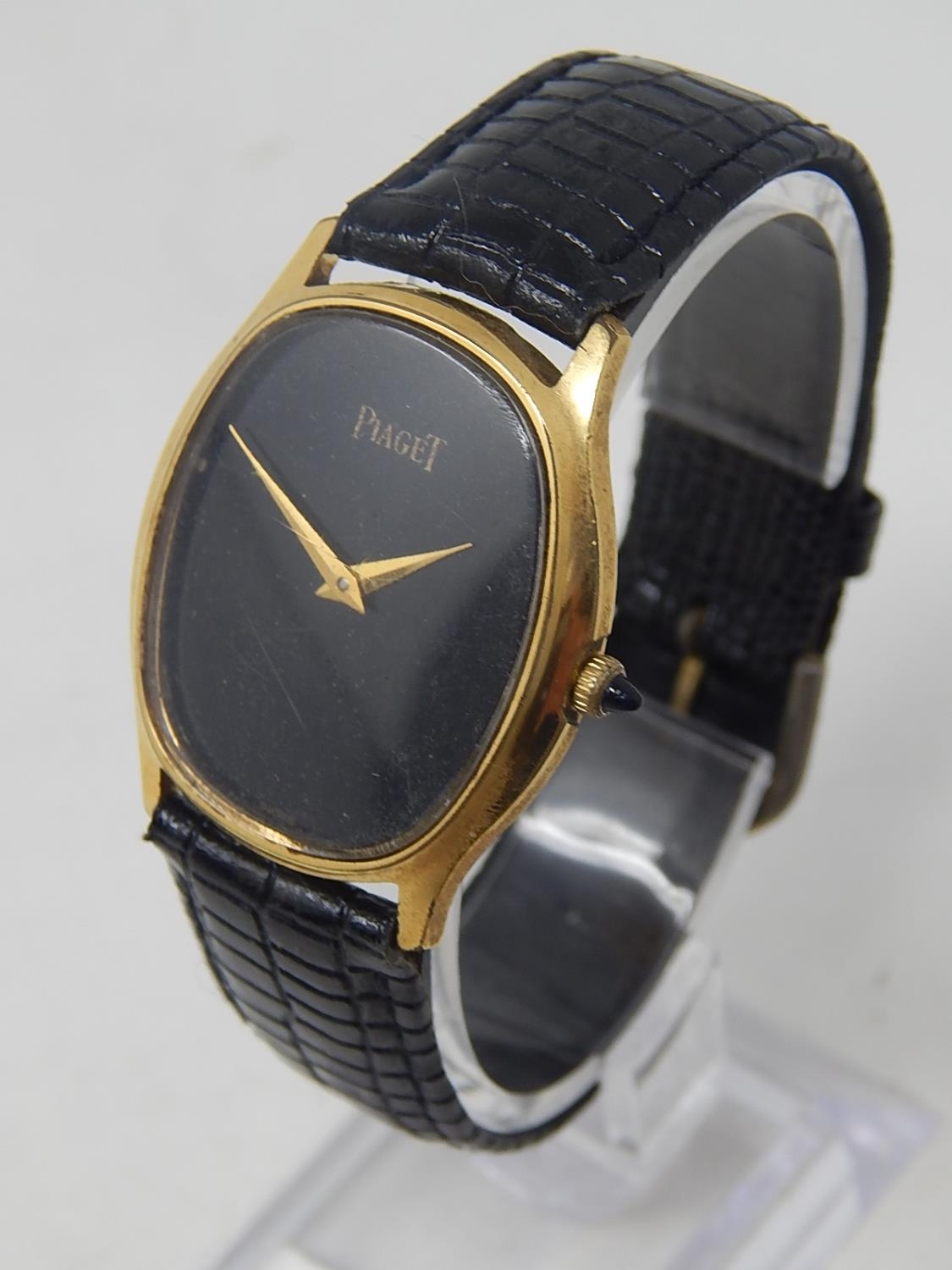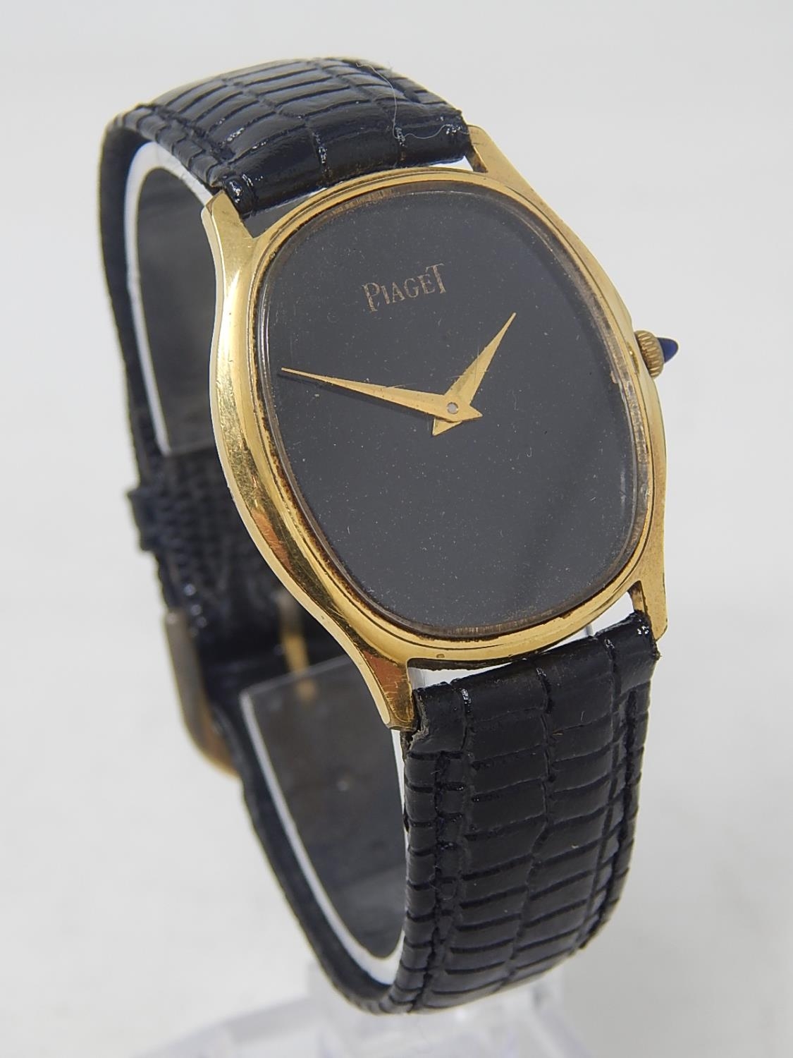 Piaget: Gentleman's Wristwatch on Leather Strap. 18ct Gold E/P.