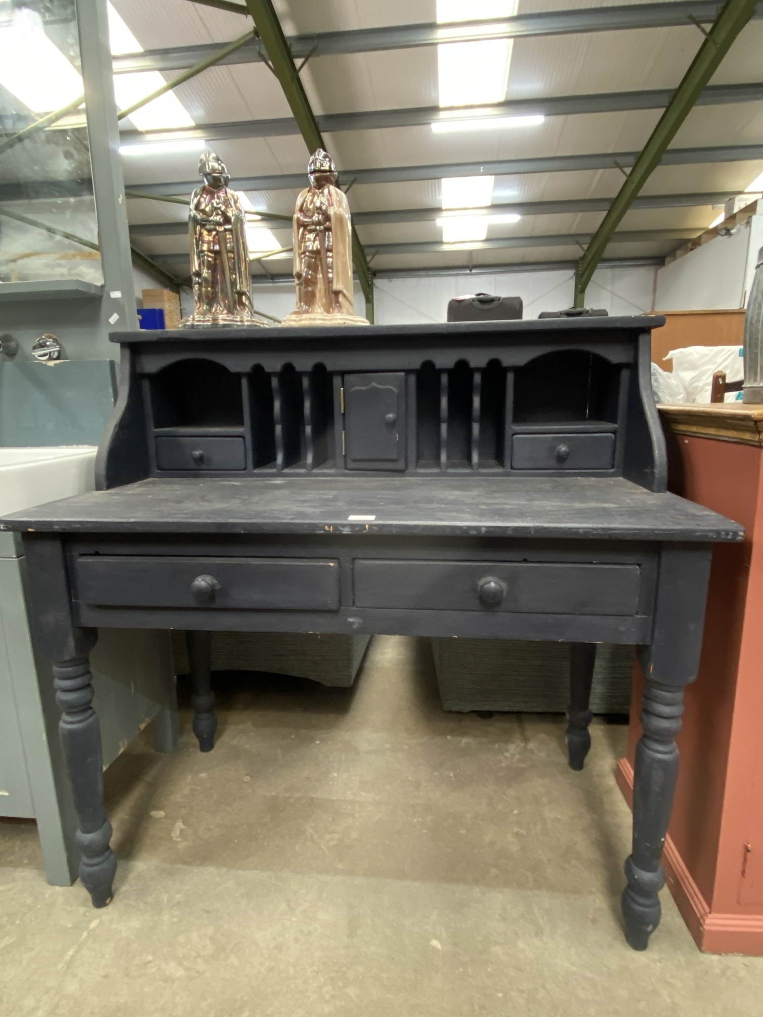 Painted pine kneehole desk 108H 110W 60D & 2 Knight companion sets