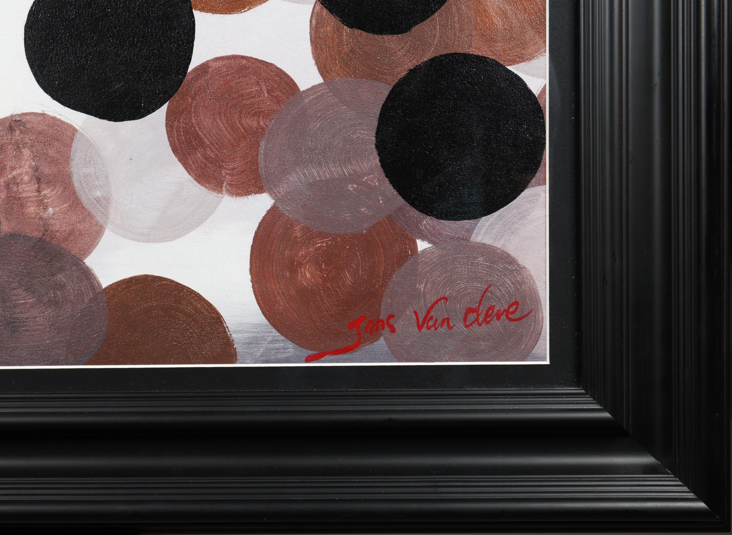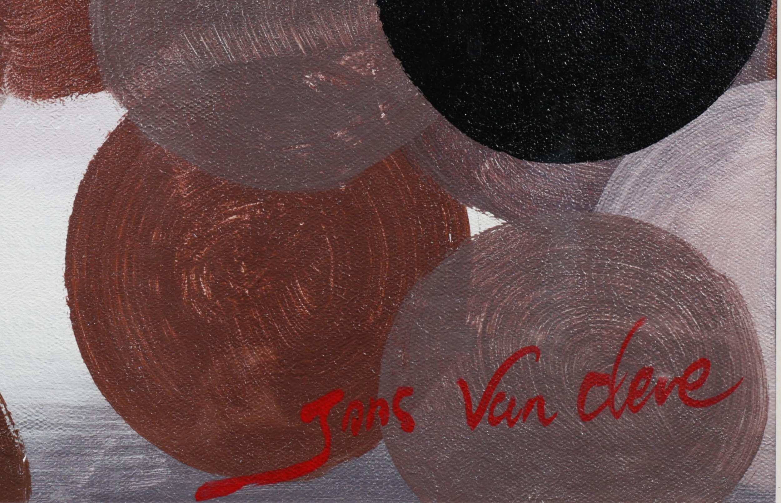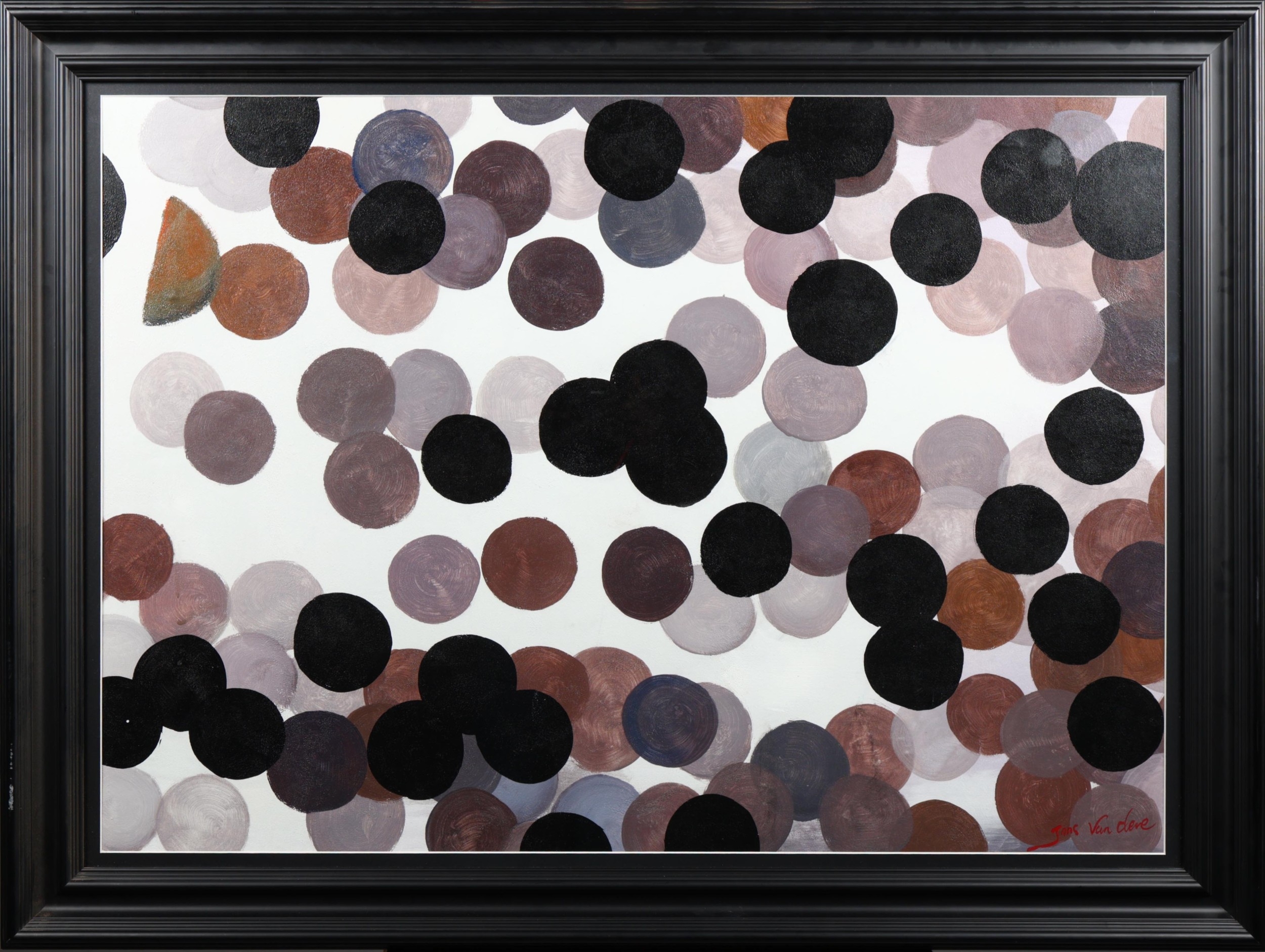 JANS VAN CLEVE (20TH CENTURY). CIRCLES. oil on canvas, 92.5 x 122.5cm, framed.