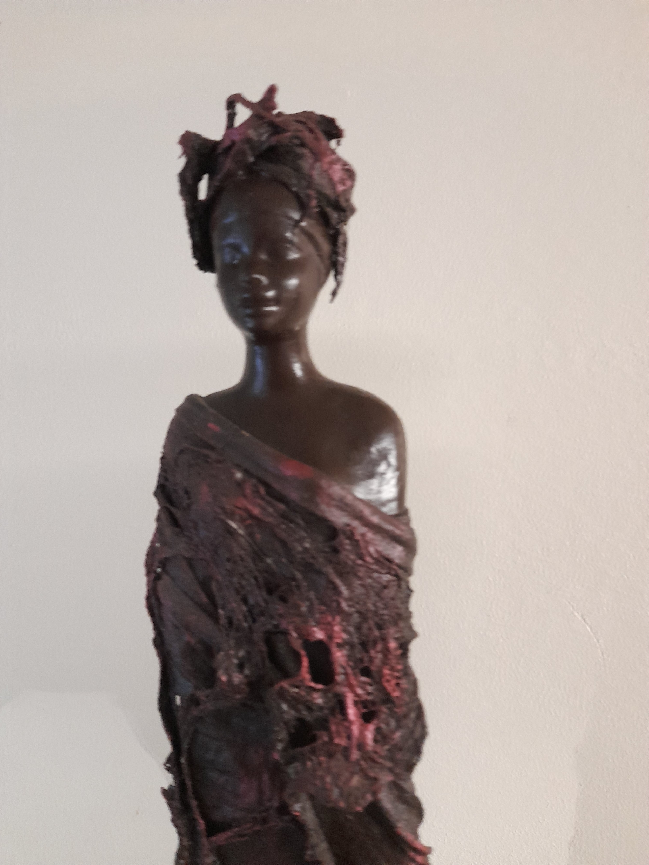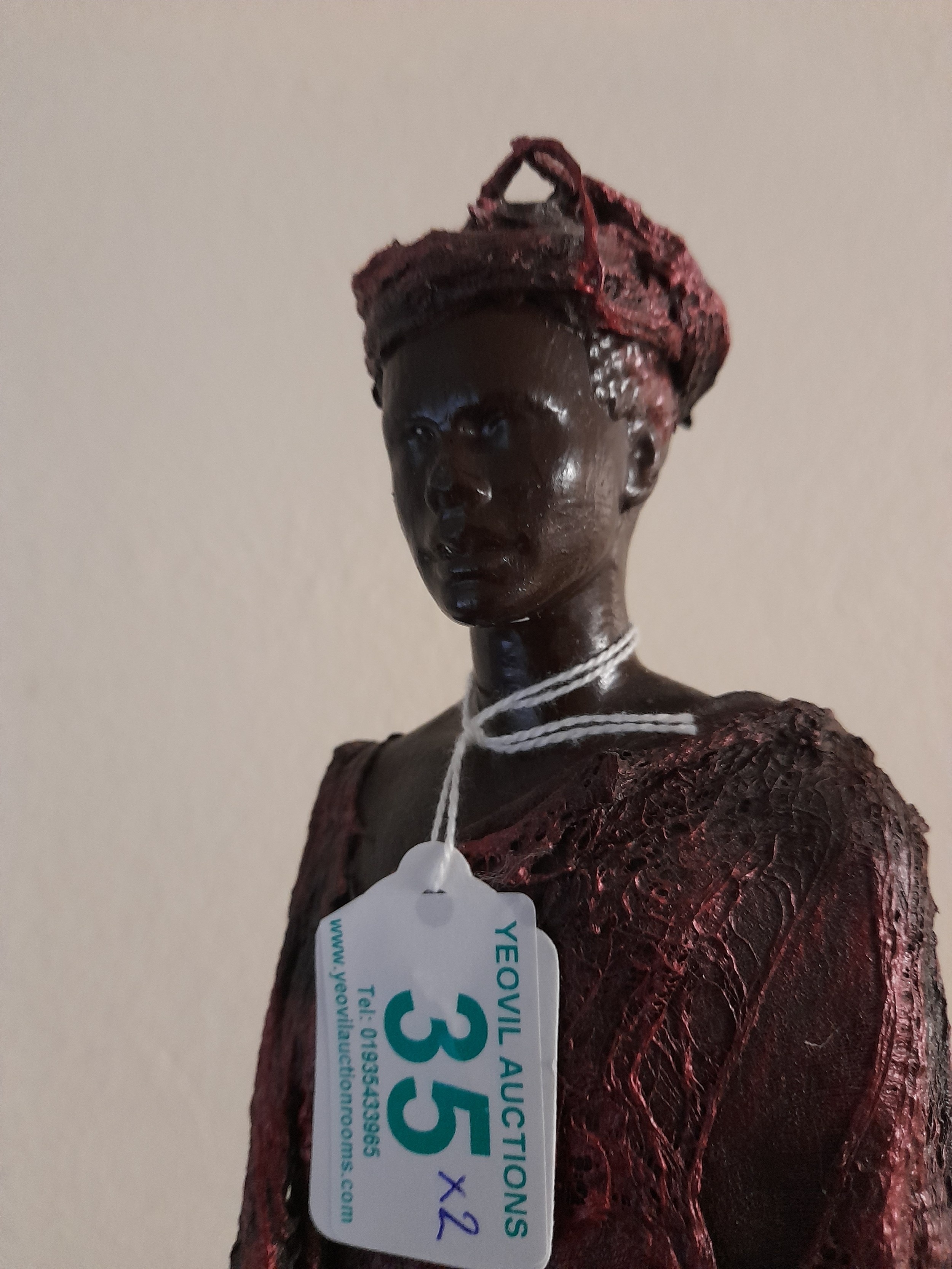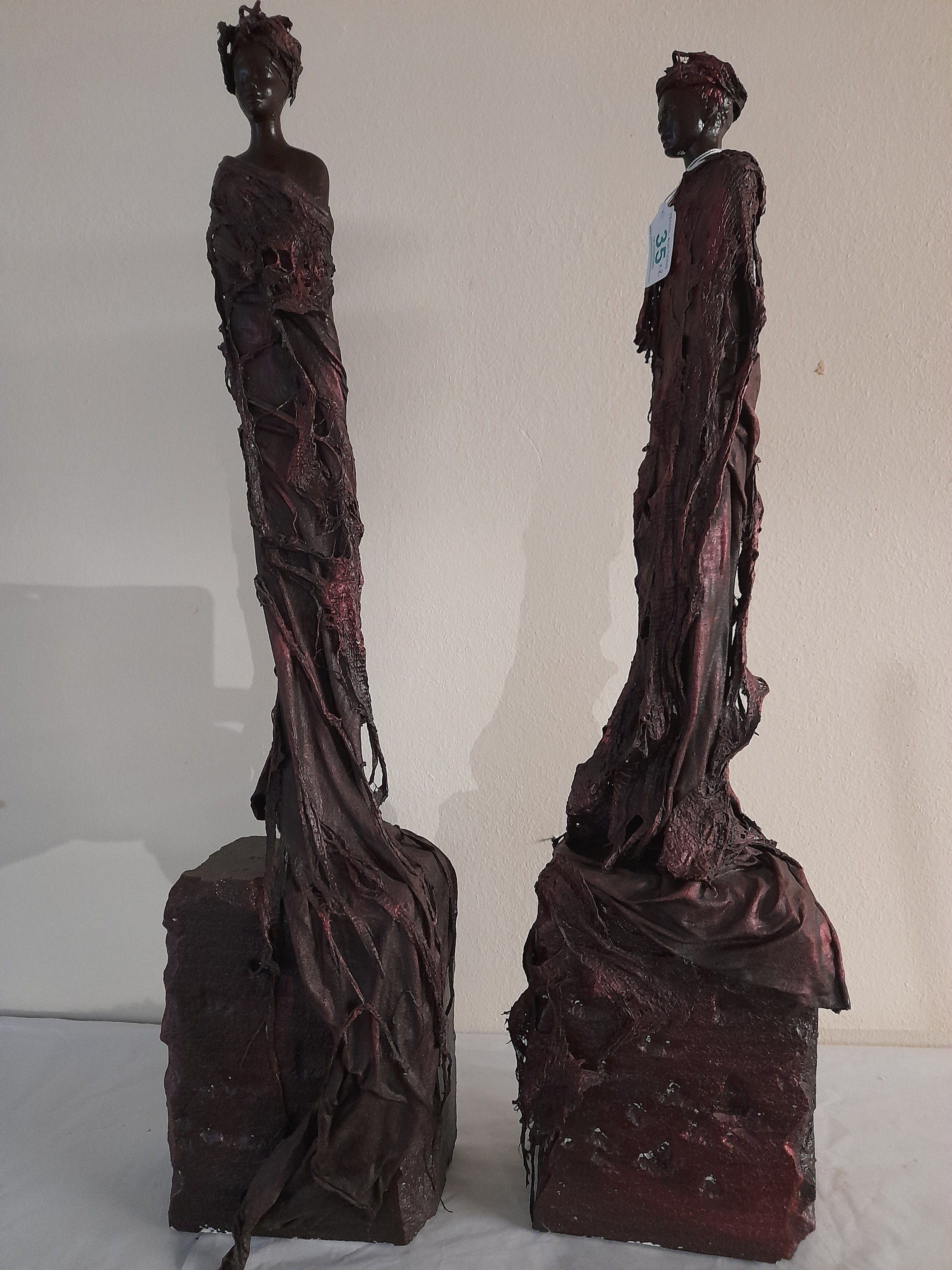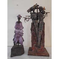 2 Large Mixed material figures of a man and woman, largest standing 67cm high
