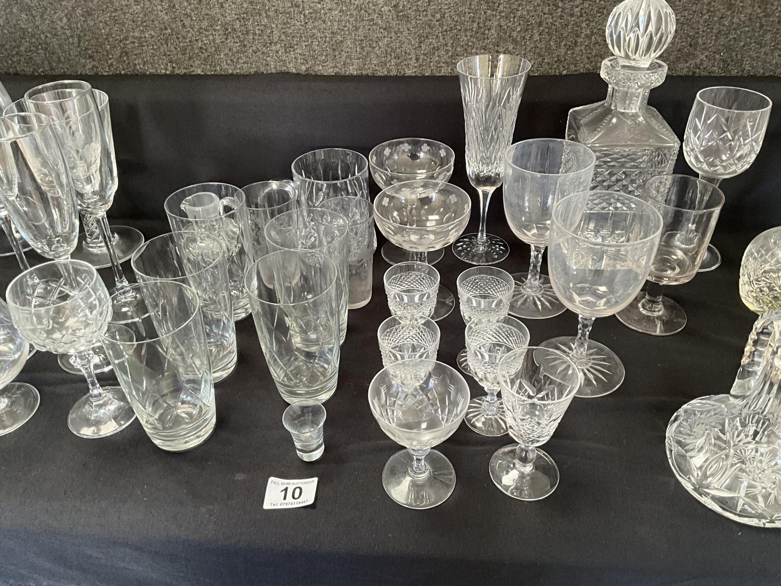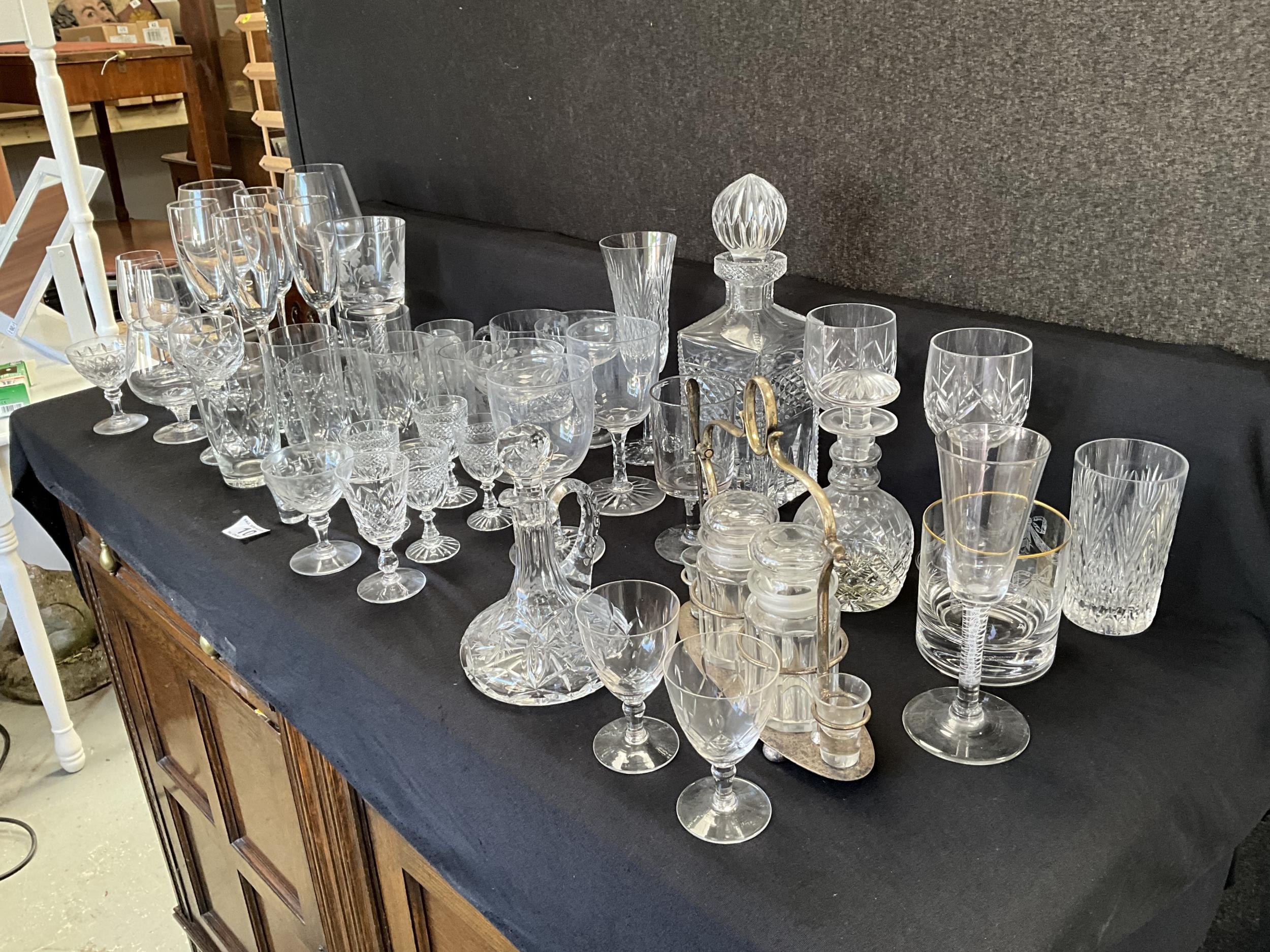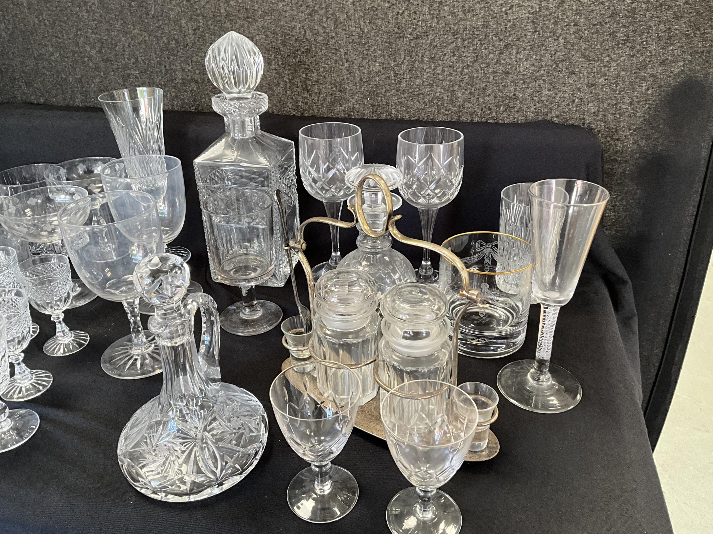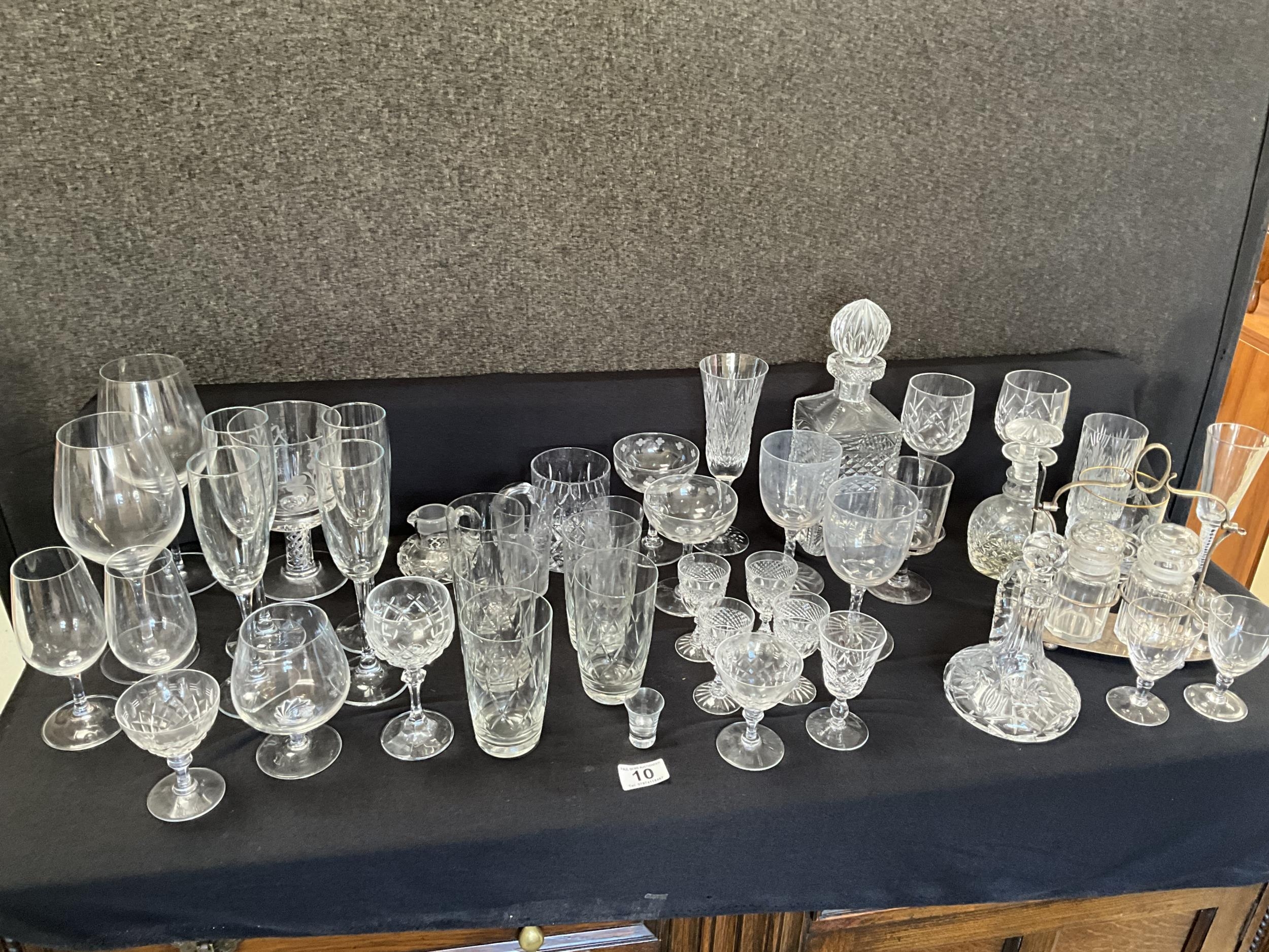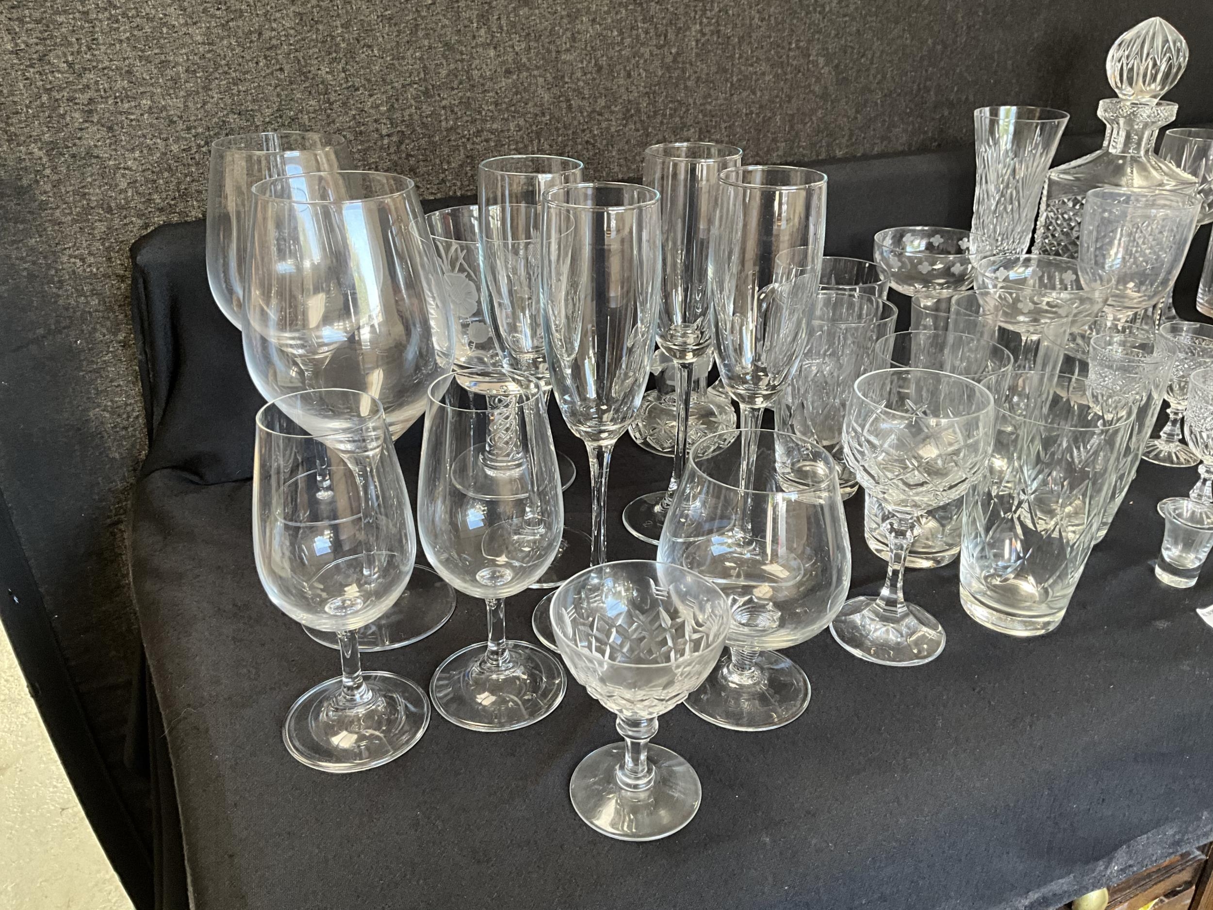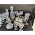BOX OF GLASSWARE TO INCLUDE DECANTERS, GLASSES ETC