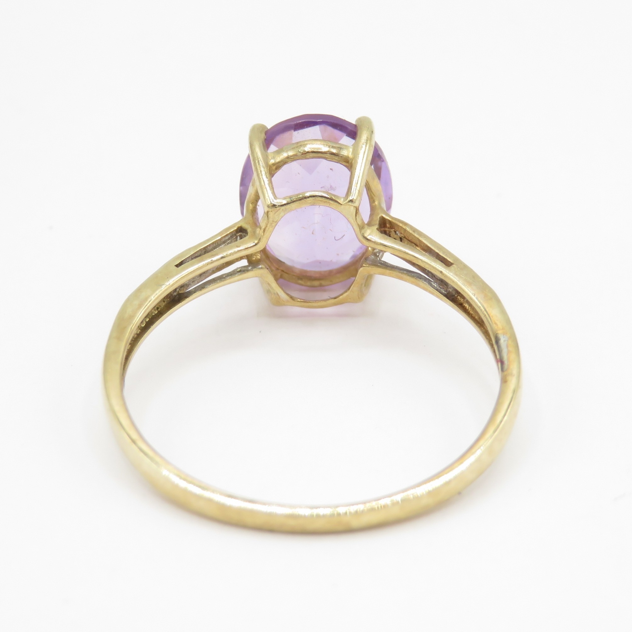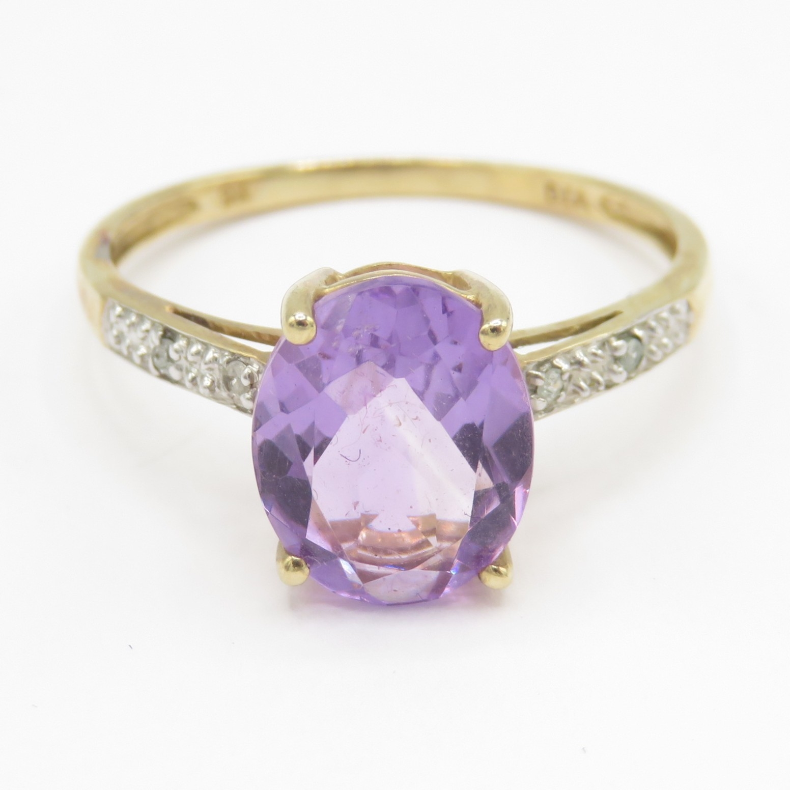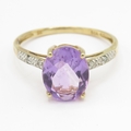 9ct gold amethyst and diamond ring (1.8g) Size P