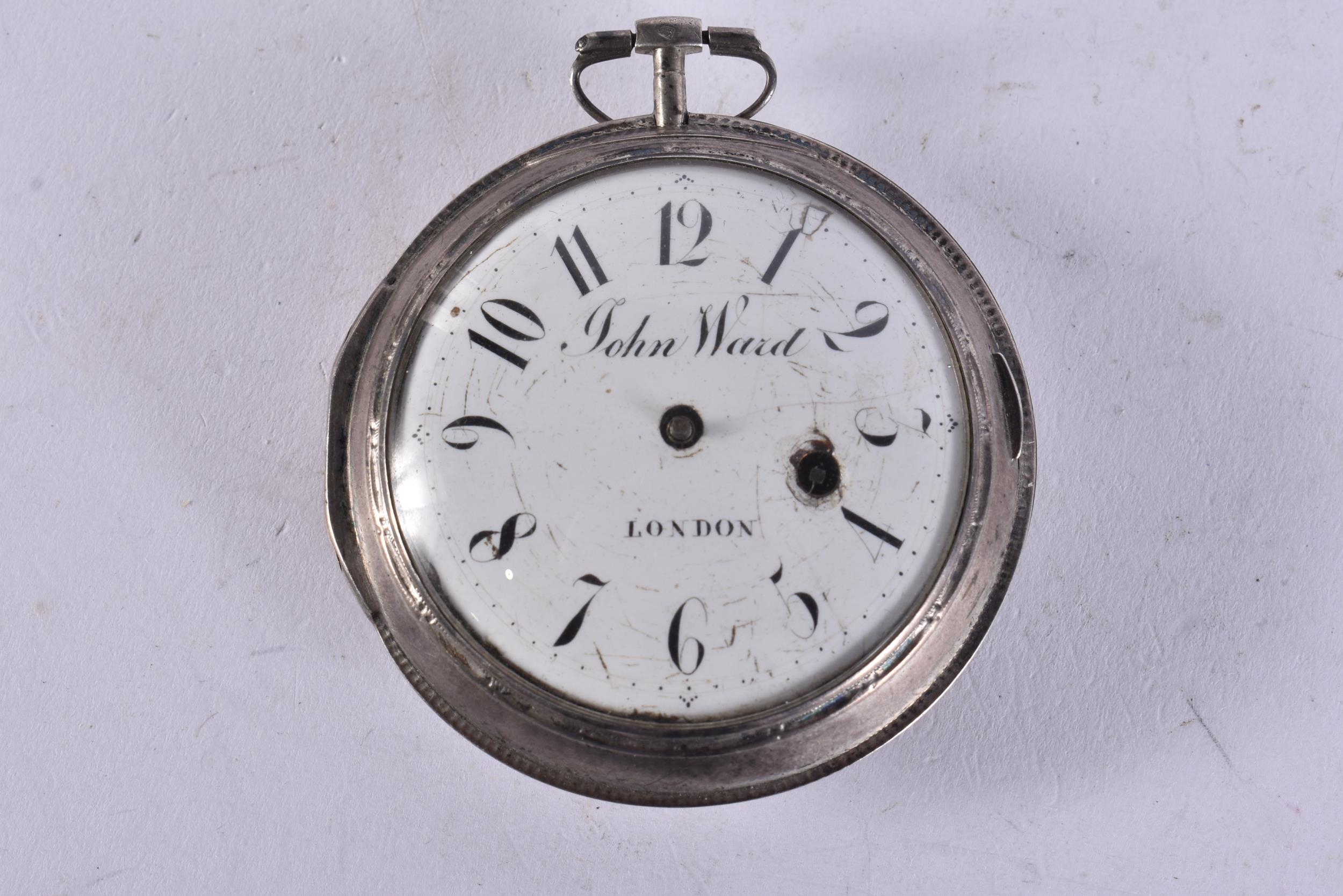 A GEORGE III JOHN WARD SILVER POCKET WATCH. Not running. 123 grams. 6.75 cm wide.