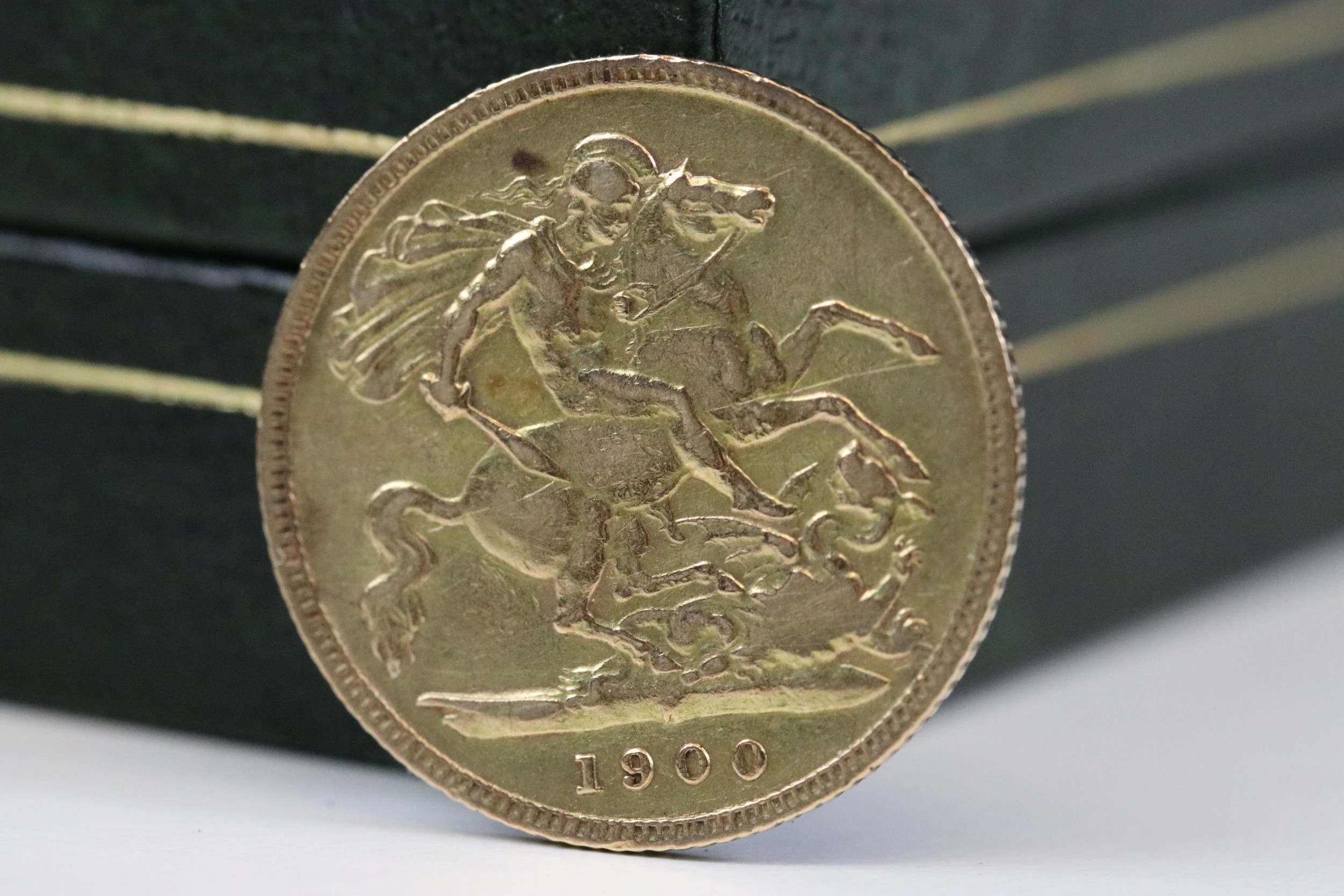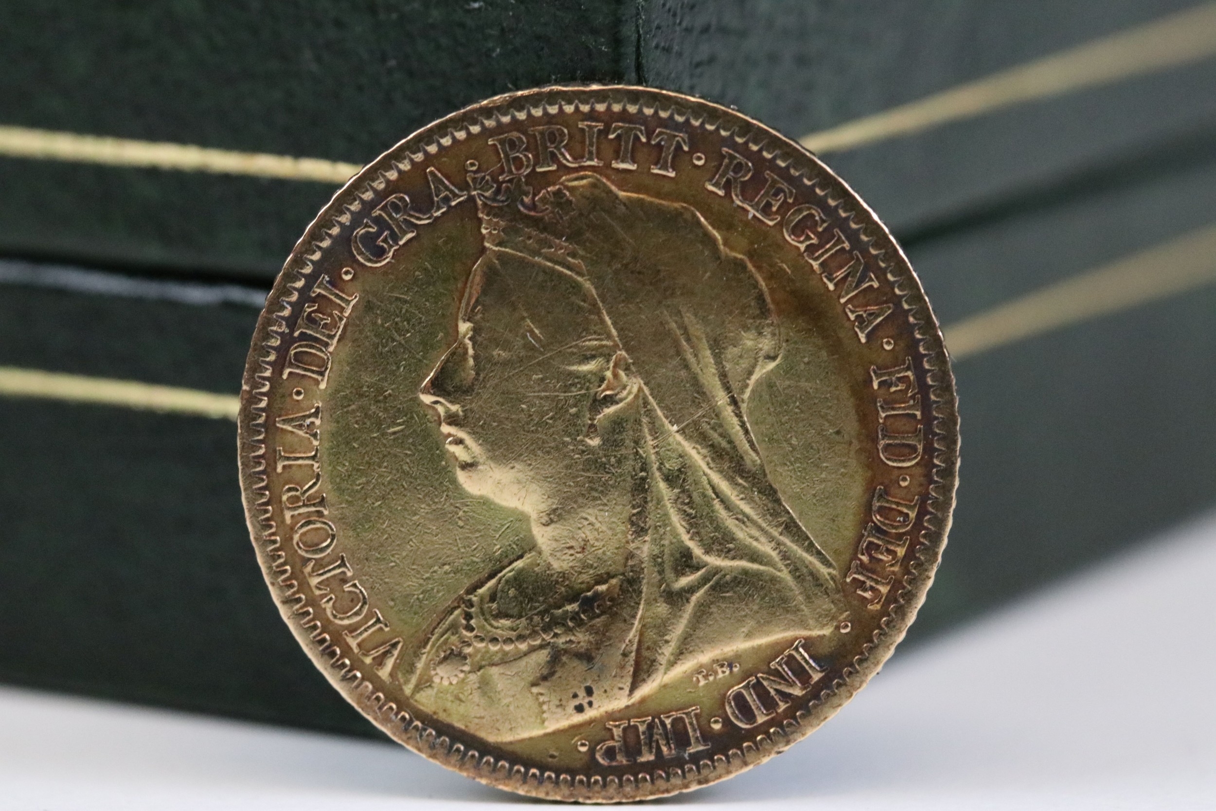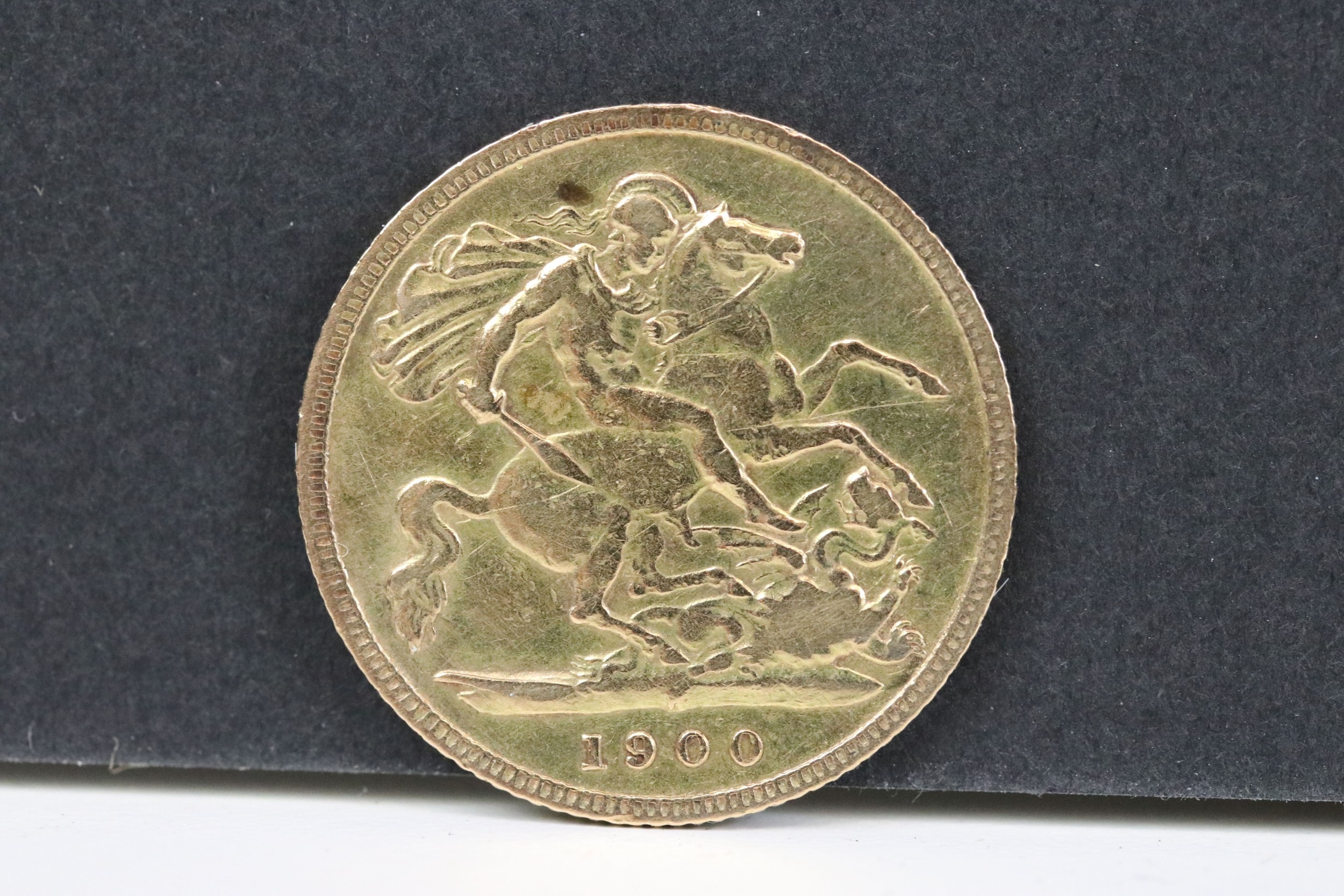 A United Kingdom Queen Victoria 1900 gold half sovereign coin.