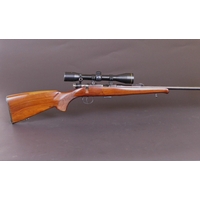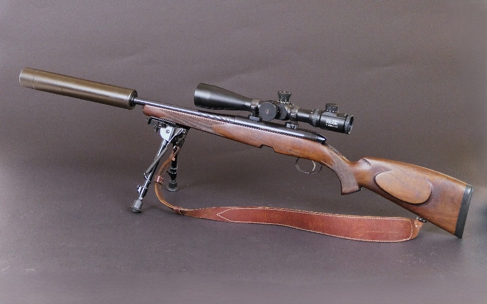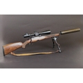 A Classic Mannlicher 6.5 x 55 bolt action rifle, with twist barrel fitted with a T8 sound moderator Harris bipod, leather sling and a Richter Optik 4-16 x 50E-SF scope (telescopic sight) sound moderator Serial No. 0606, rifle Serial No. 1036086. FIREARMS CERTIFICATE REQUIRED x 2.