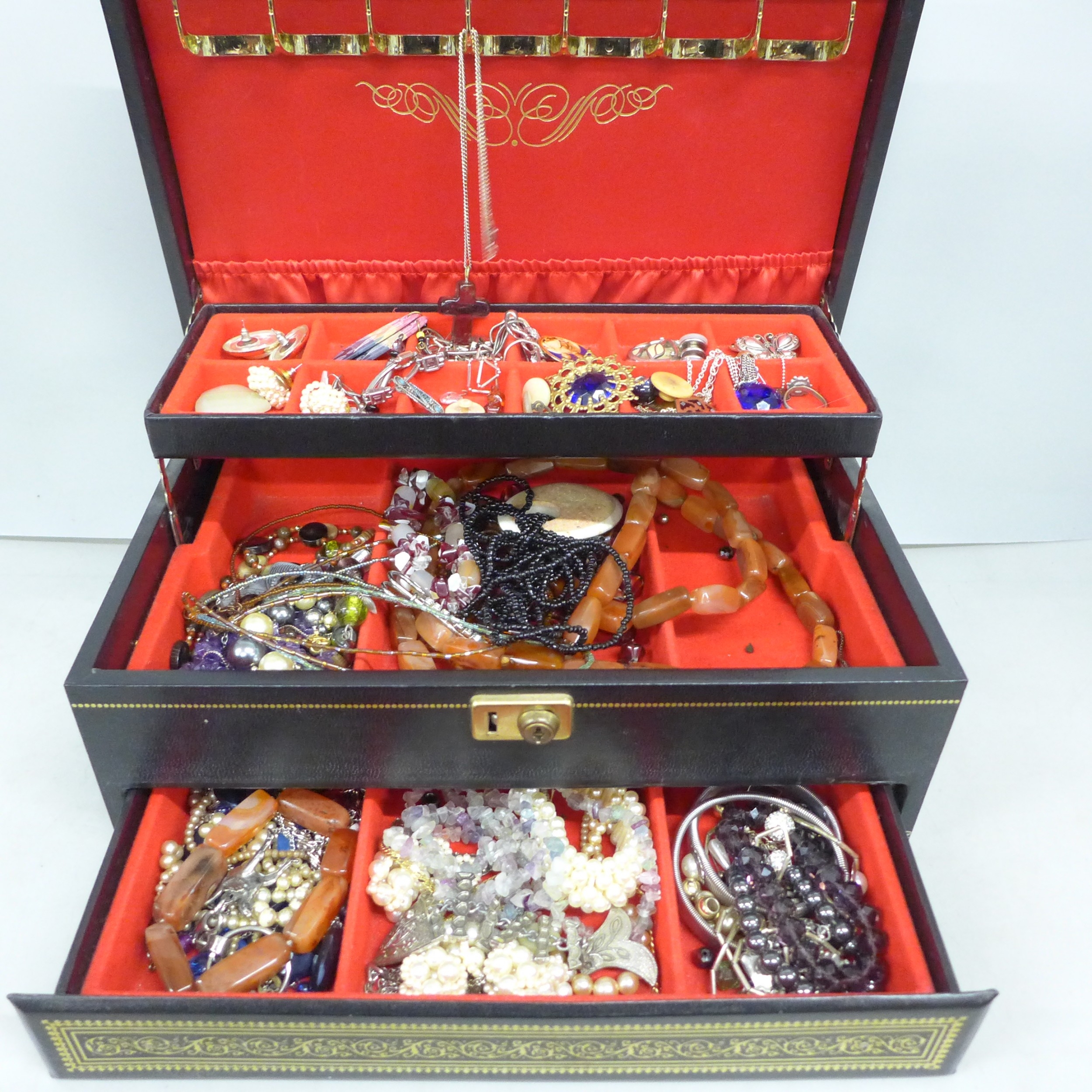 A jewellery case of costume jewellery