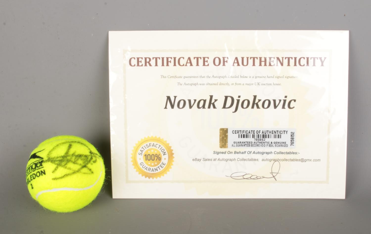 A Novak Djokovic signed Slazenger Wimbledon 2 tennis ball; With certificate of authenticity.